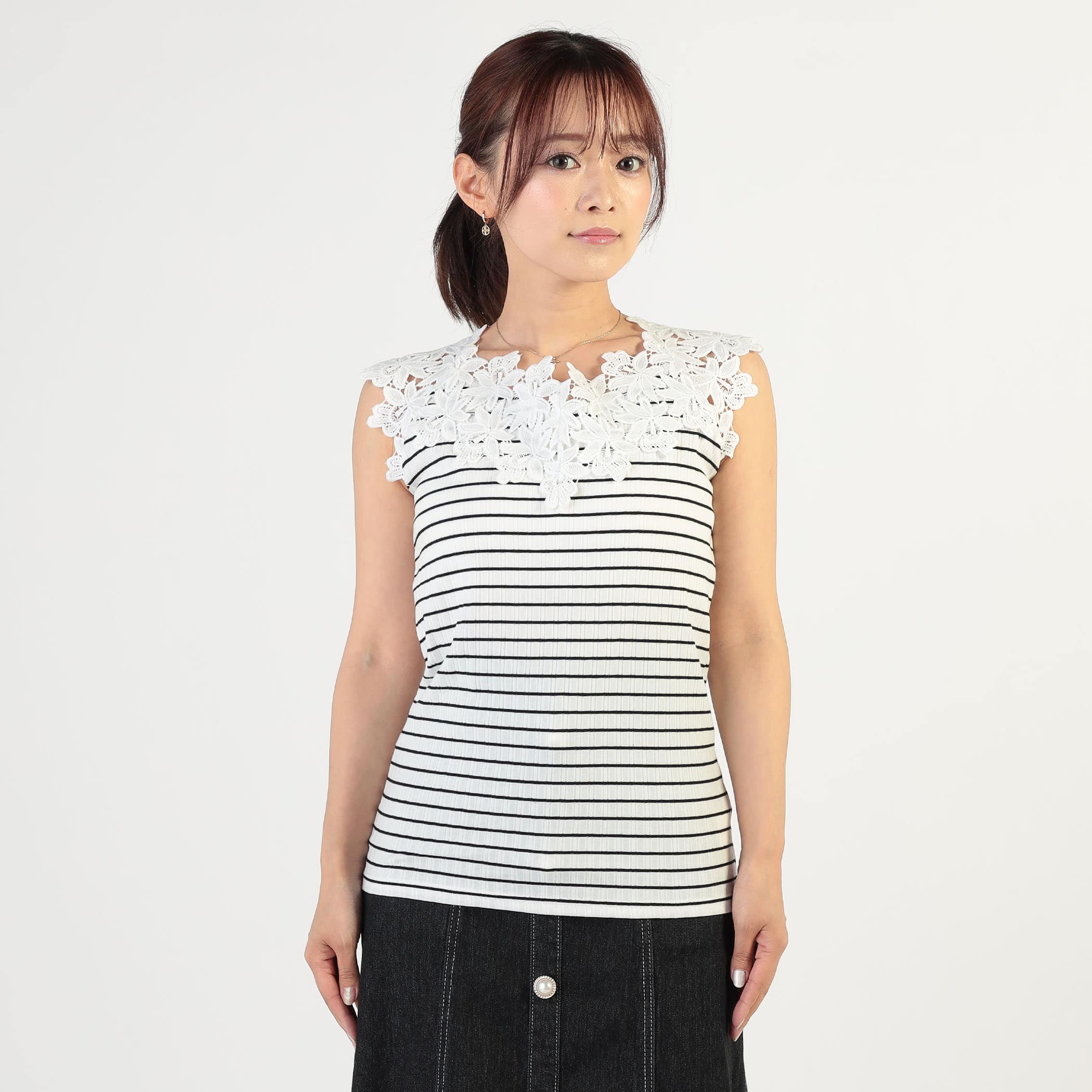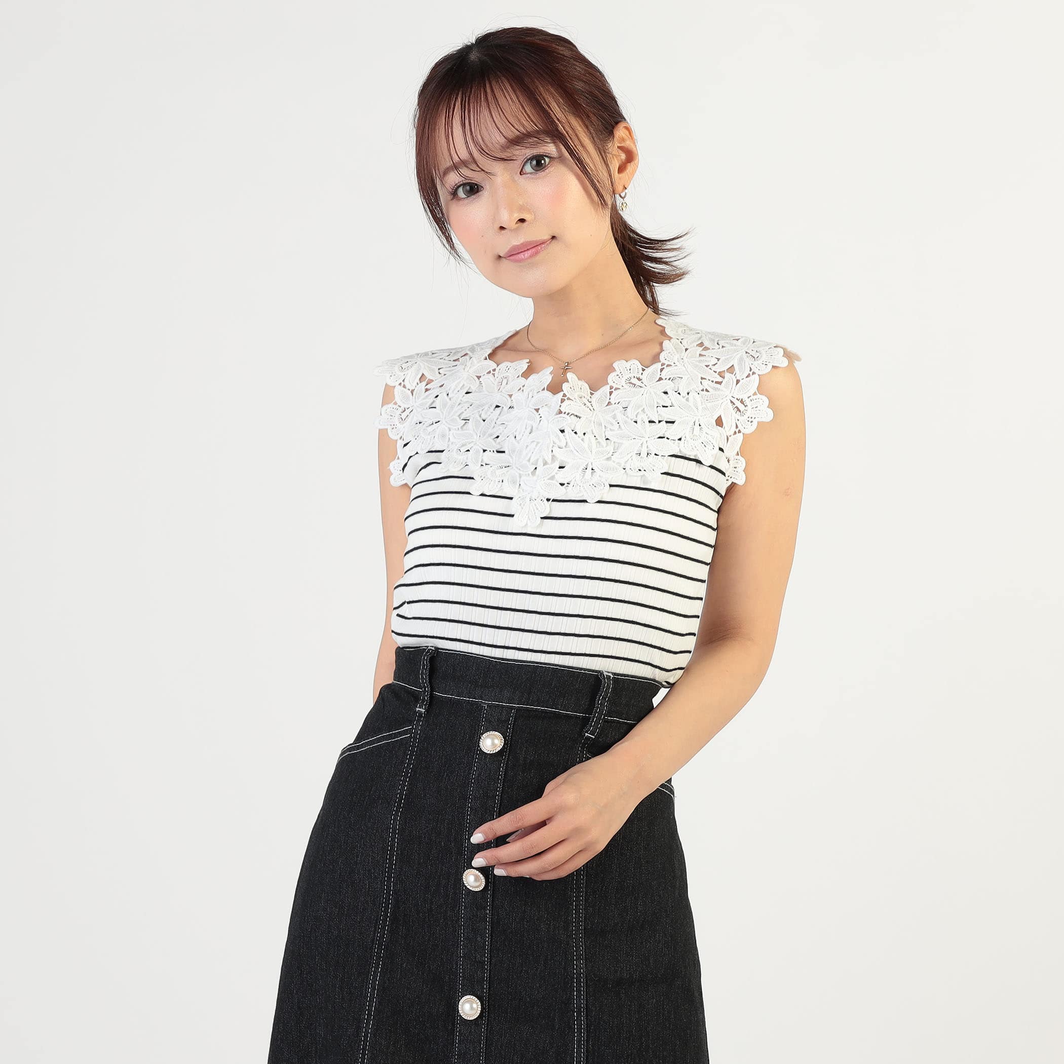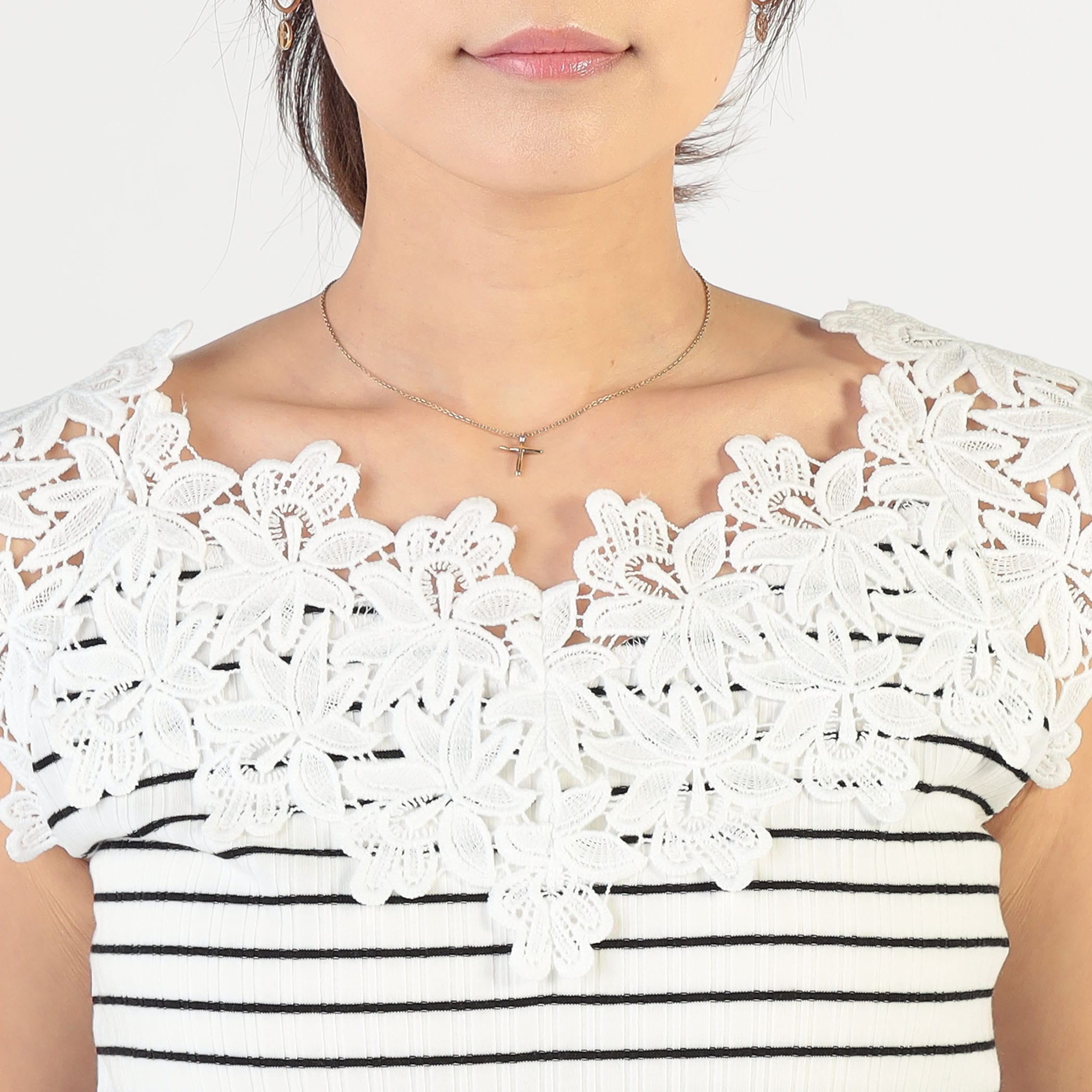 胸元にあしらったボリュームのあるフラワーレースが上品な印象のプルオーバー。ほんのり肌みせで女性らしく魅せてくれる一枚です。衿元の開いたトップスのインナーとしても、シャツやシアートップスとのレイヤードにもにぴったりです。