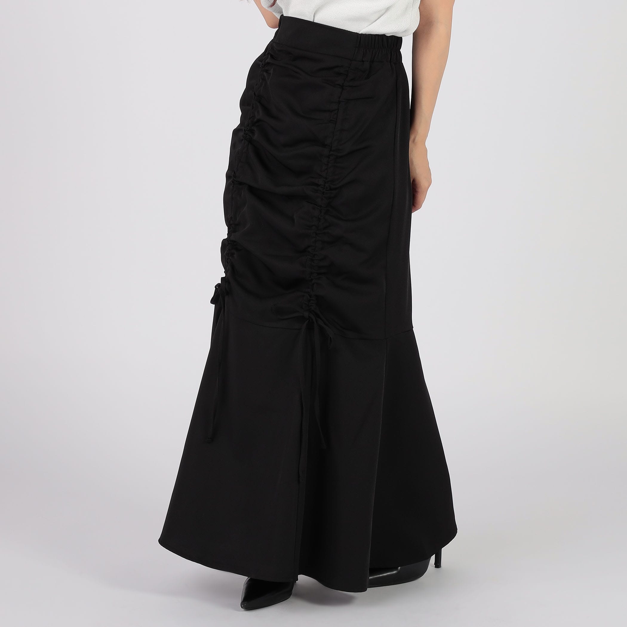 今年らしいデザインギャザーロングスカート。