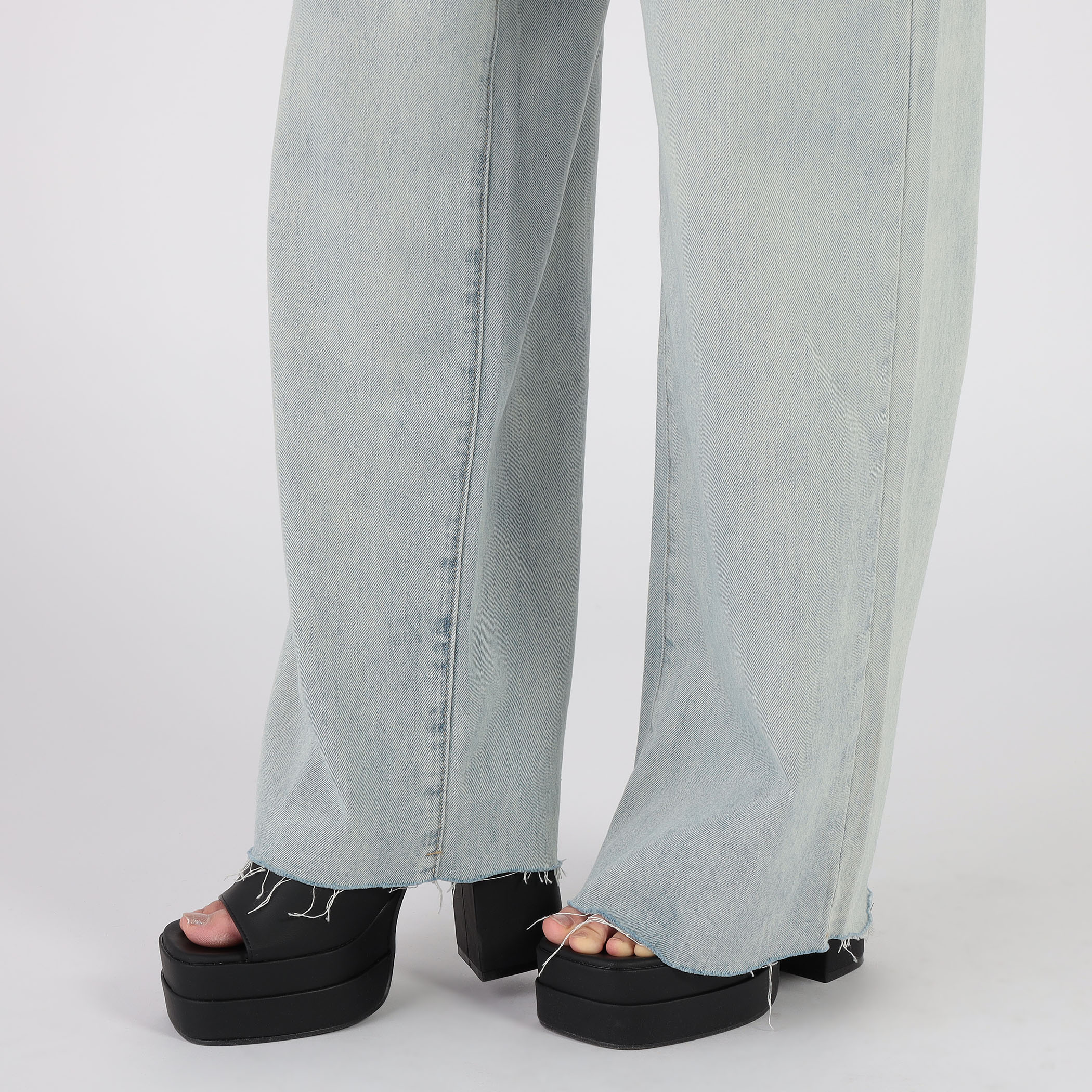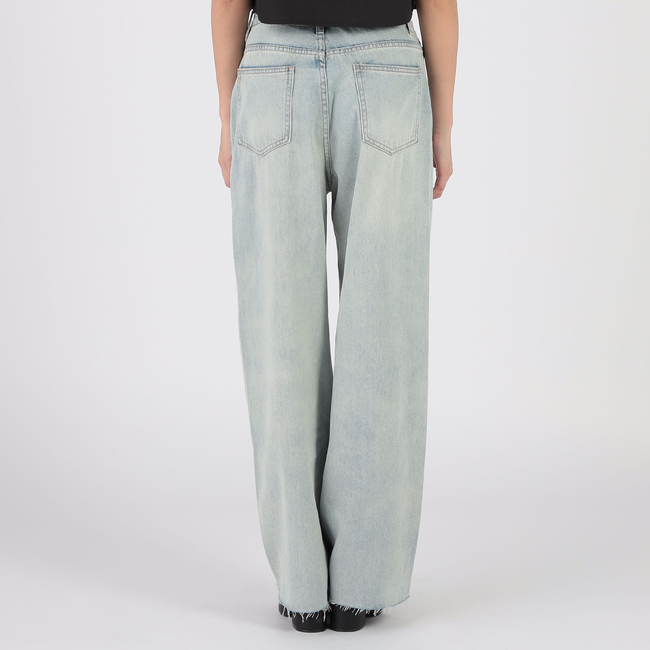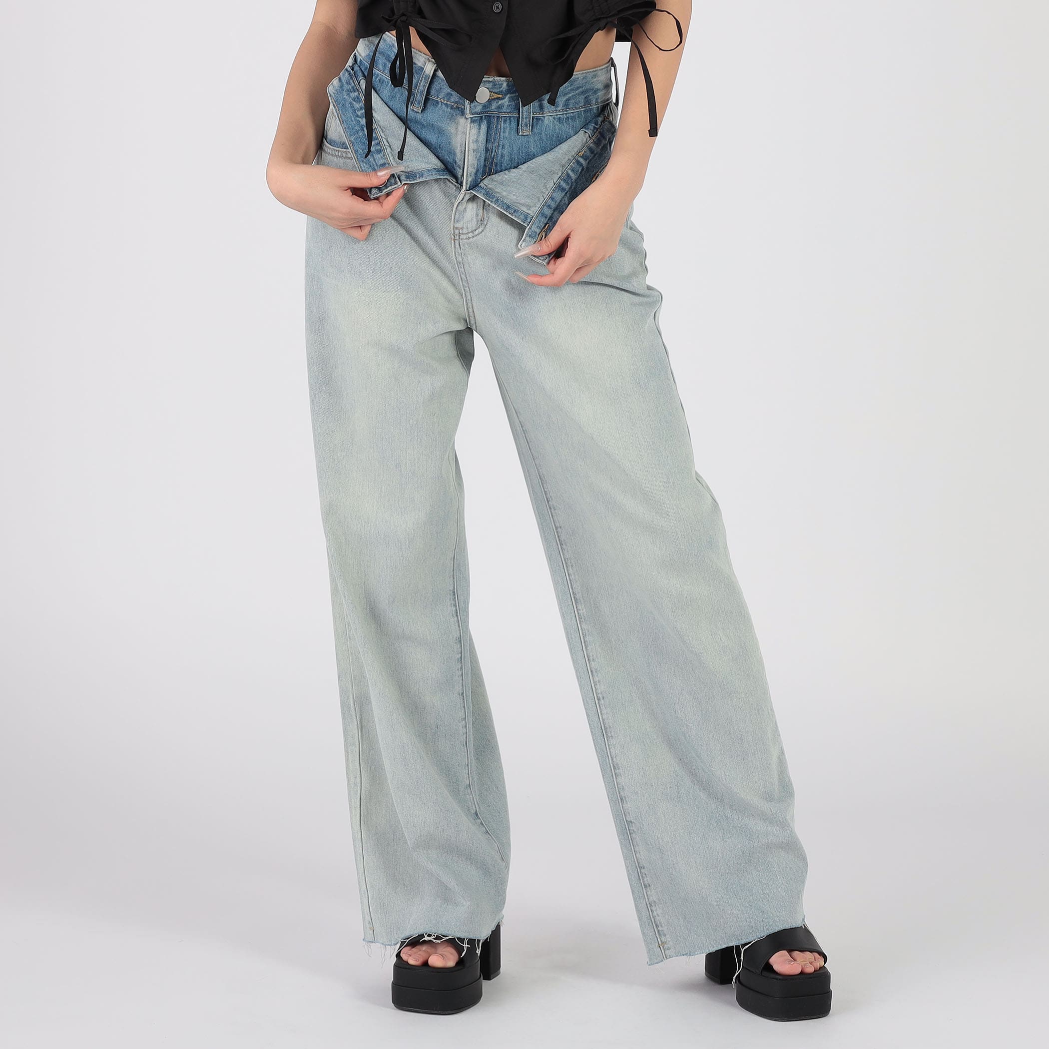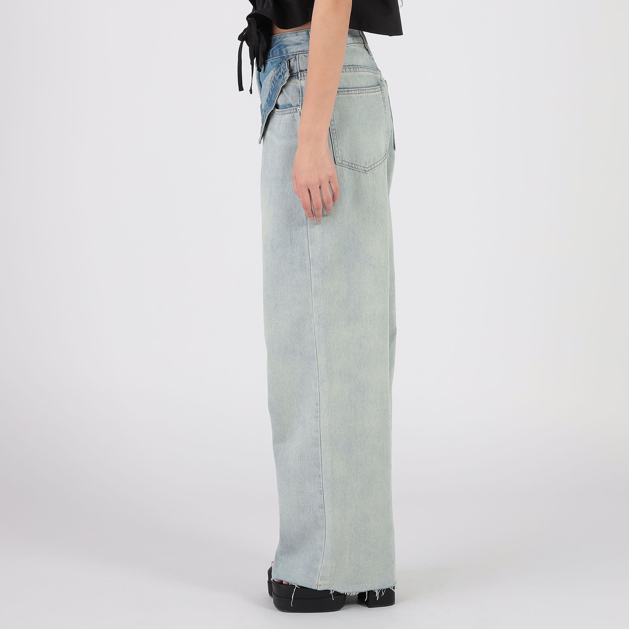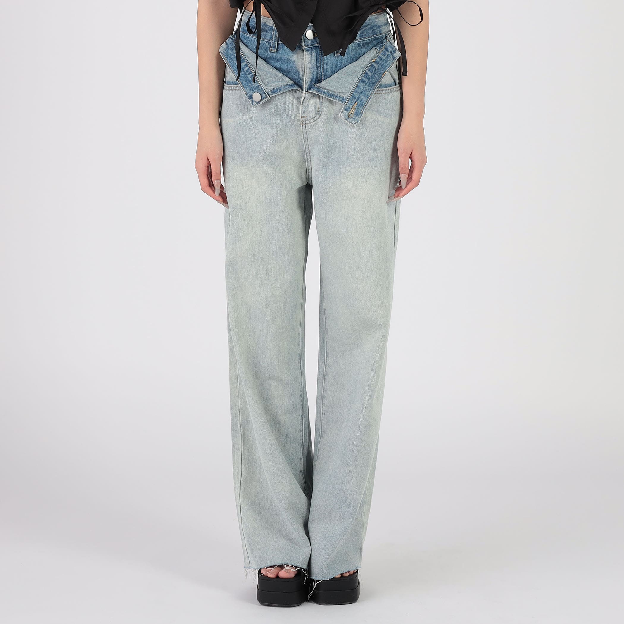 ダブルウエストデニムフレアーパンツ