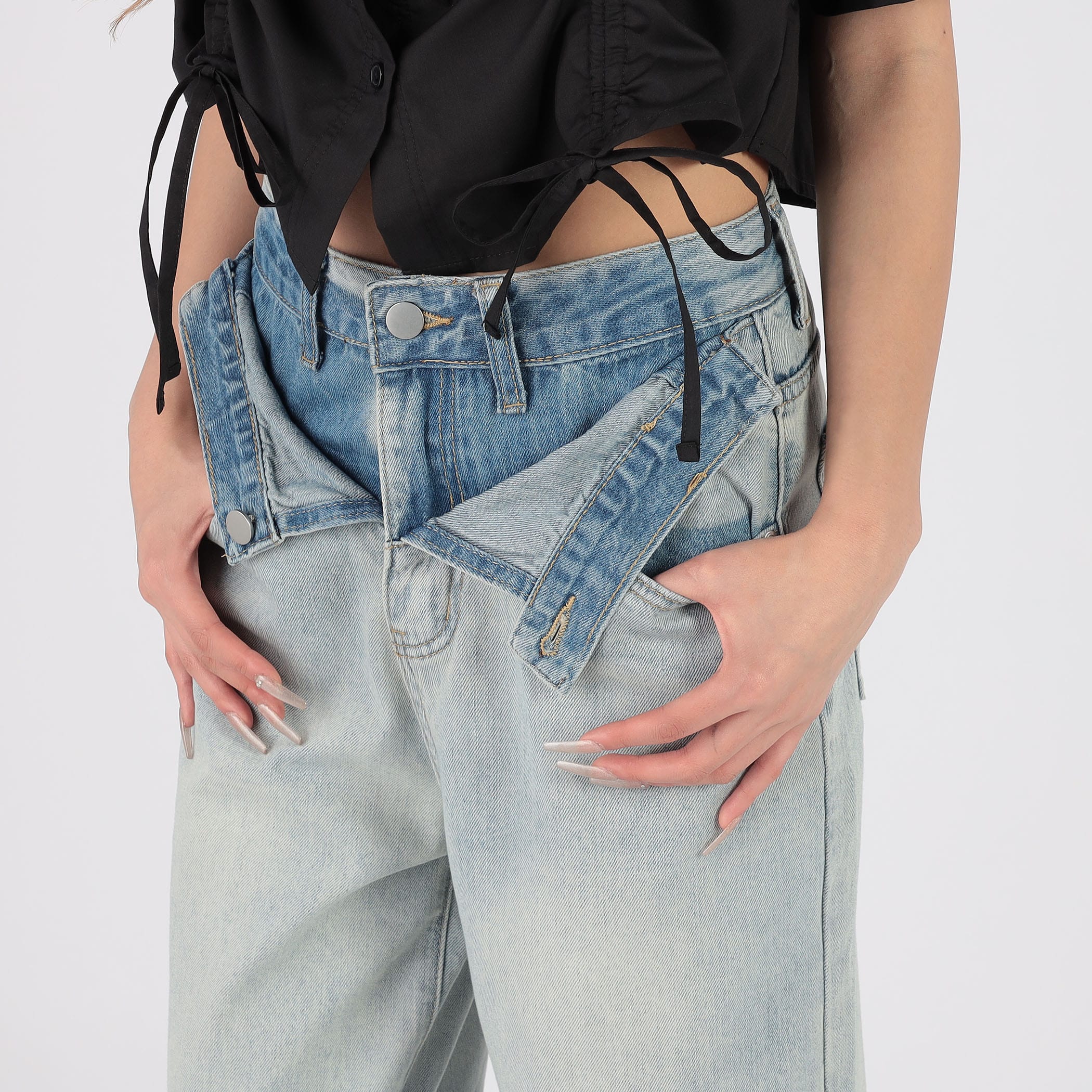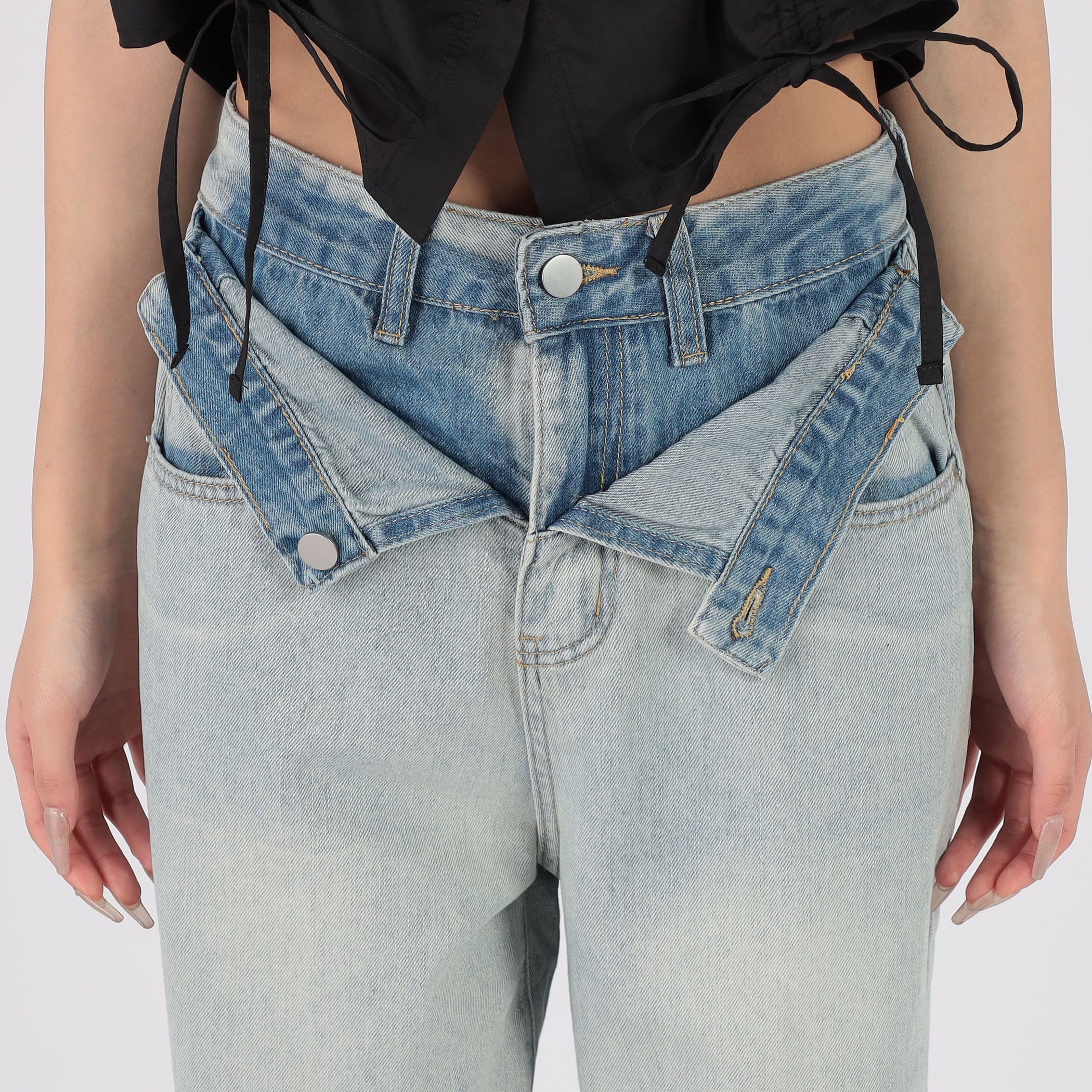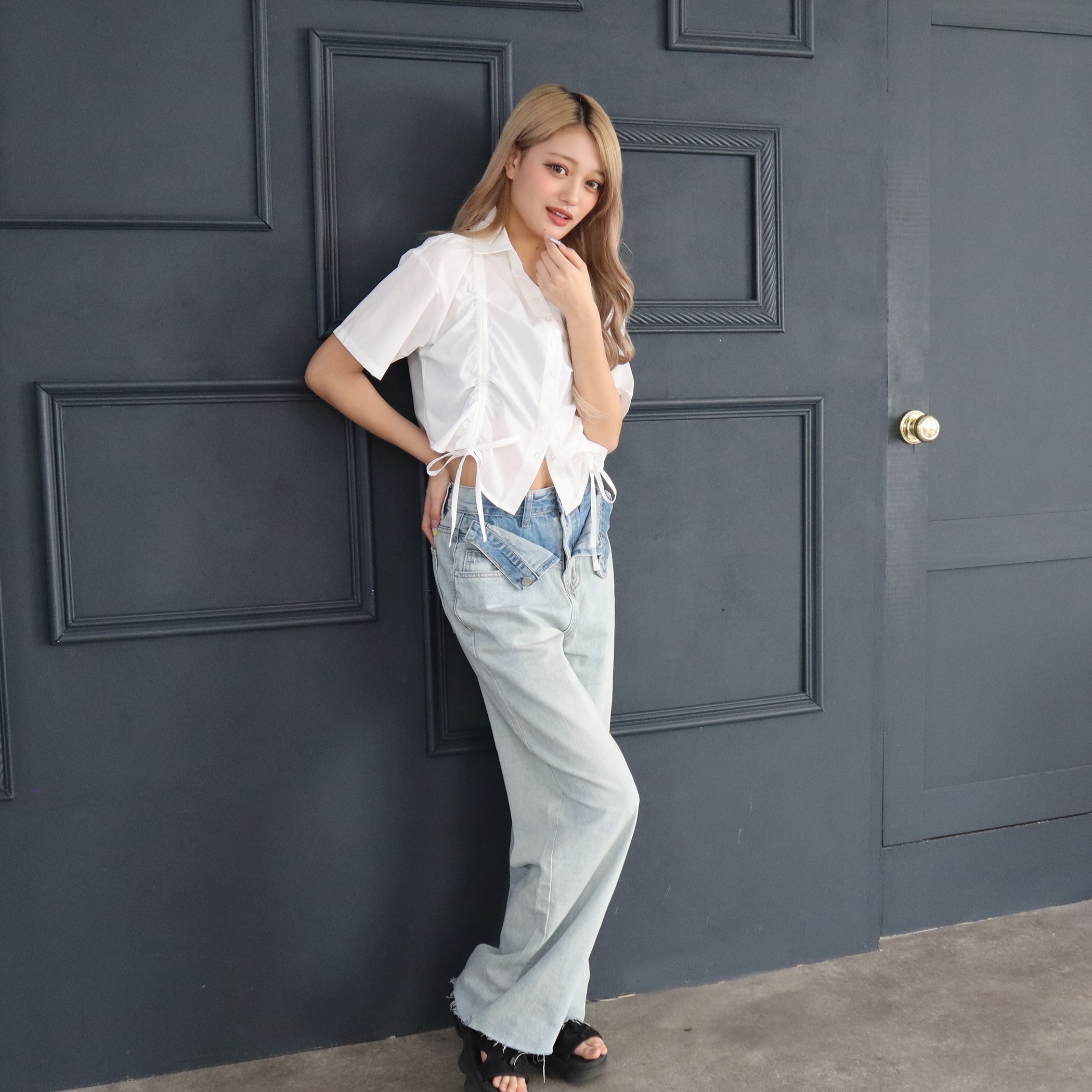 ベルト等がなくてもウエストマークのポイントがありスタイリングを華やかに仕上げてくれるデニムパンツ。Tシャツでカジュアルに合わせた着こなしから、パフスリーブなどの甘めのブラウスで合わせたスタイリングまで◎トレンドのクロップド丈トップスと合わせるのもおすすめです!