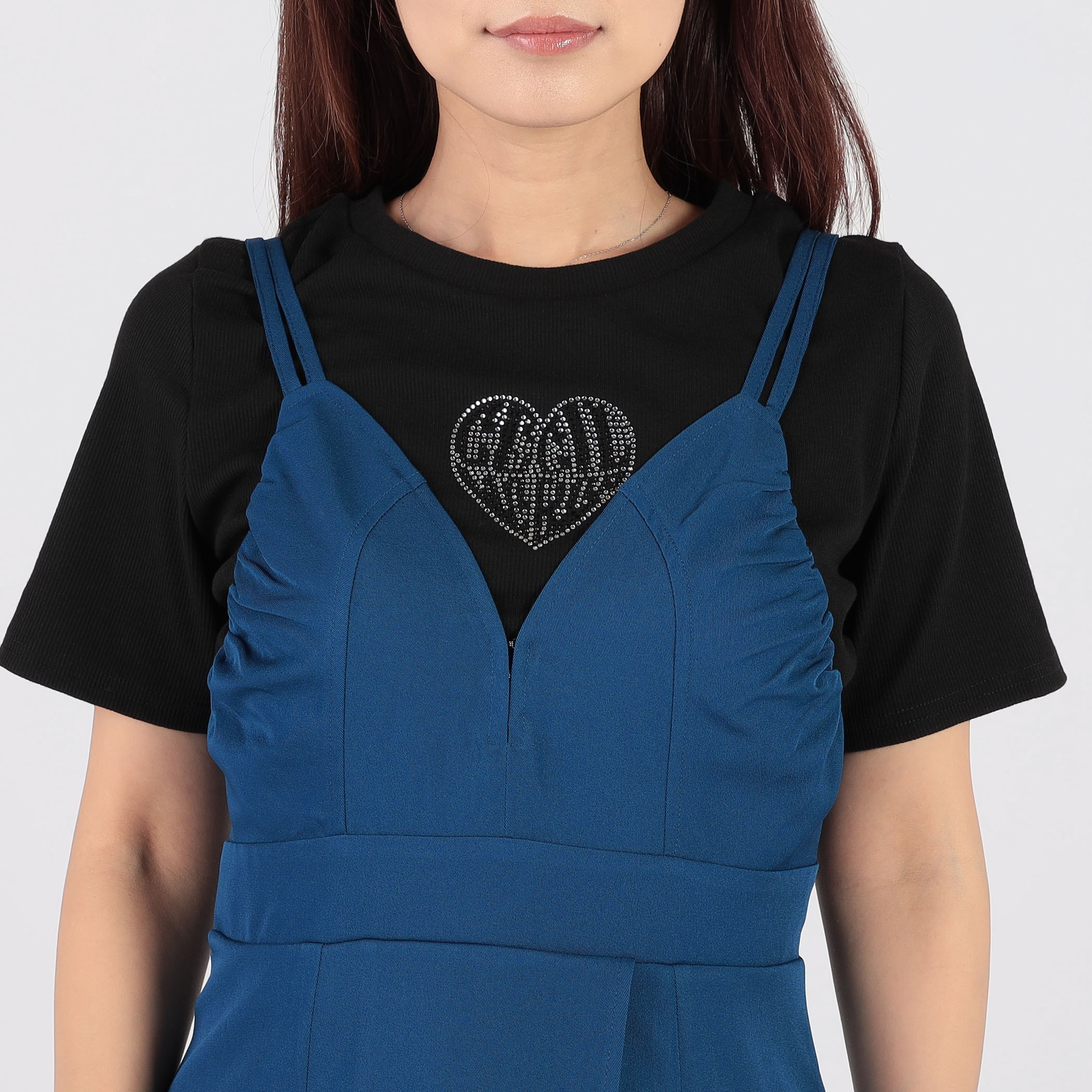 女性らしさが際立つすっきりとしたIラインのキャミワンピース。華やかさをプラスするペプラム切替が脚長効果も◎腰回りの体型カバーも叶います。トレンドのシアーインナーやシンプルなカットソー合わせでデイリールックにも◎。インナー次第でシーズン問わずお召し頂ける、ヘビーユースしたいワンピースです。