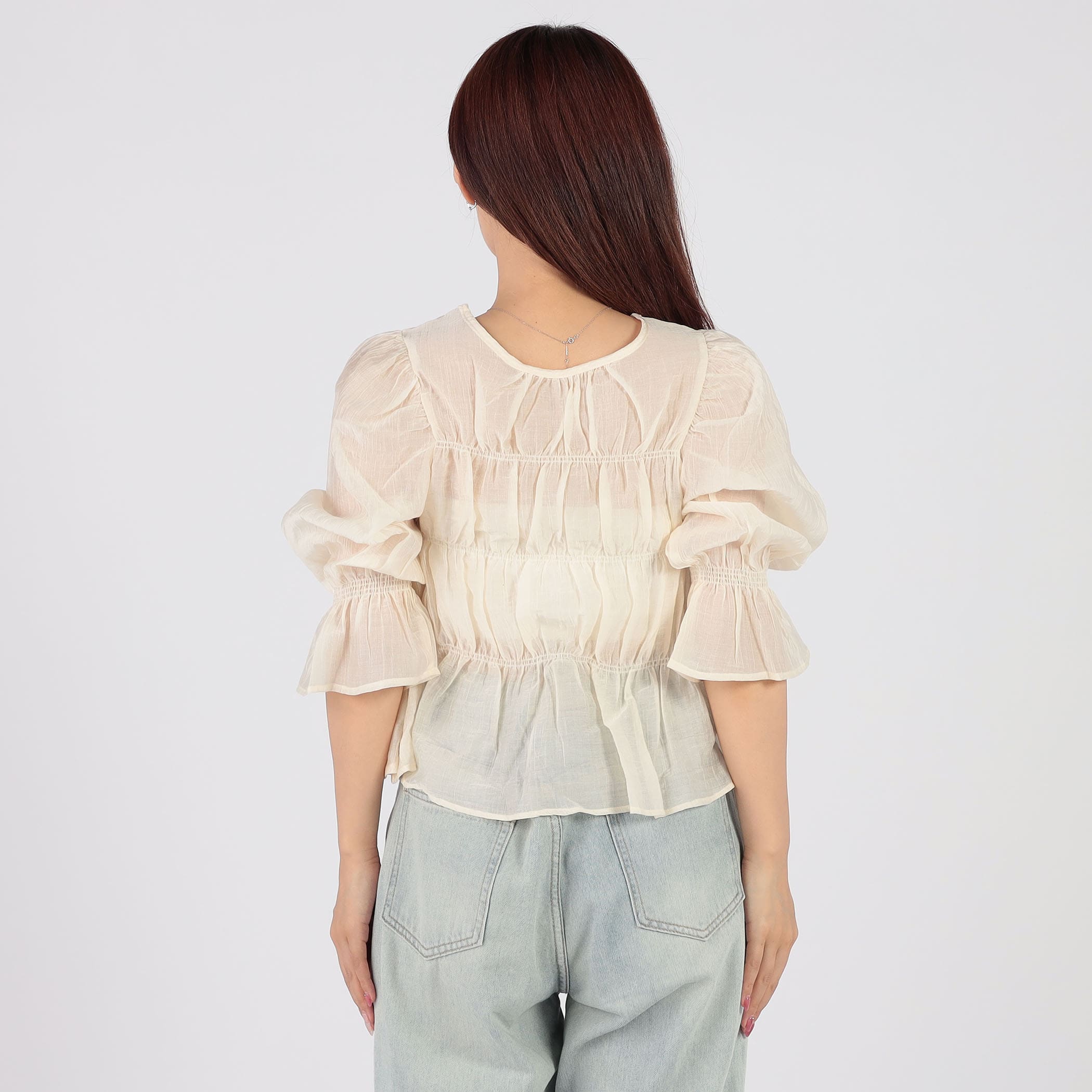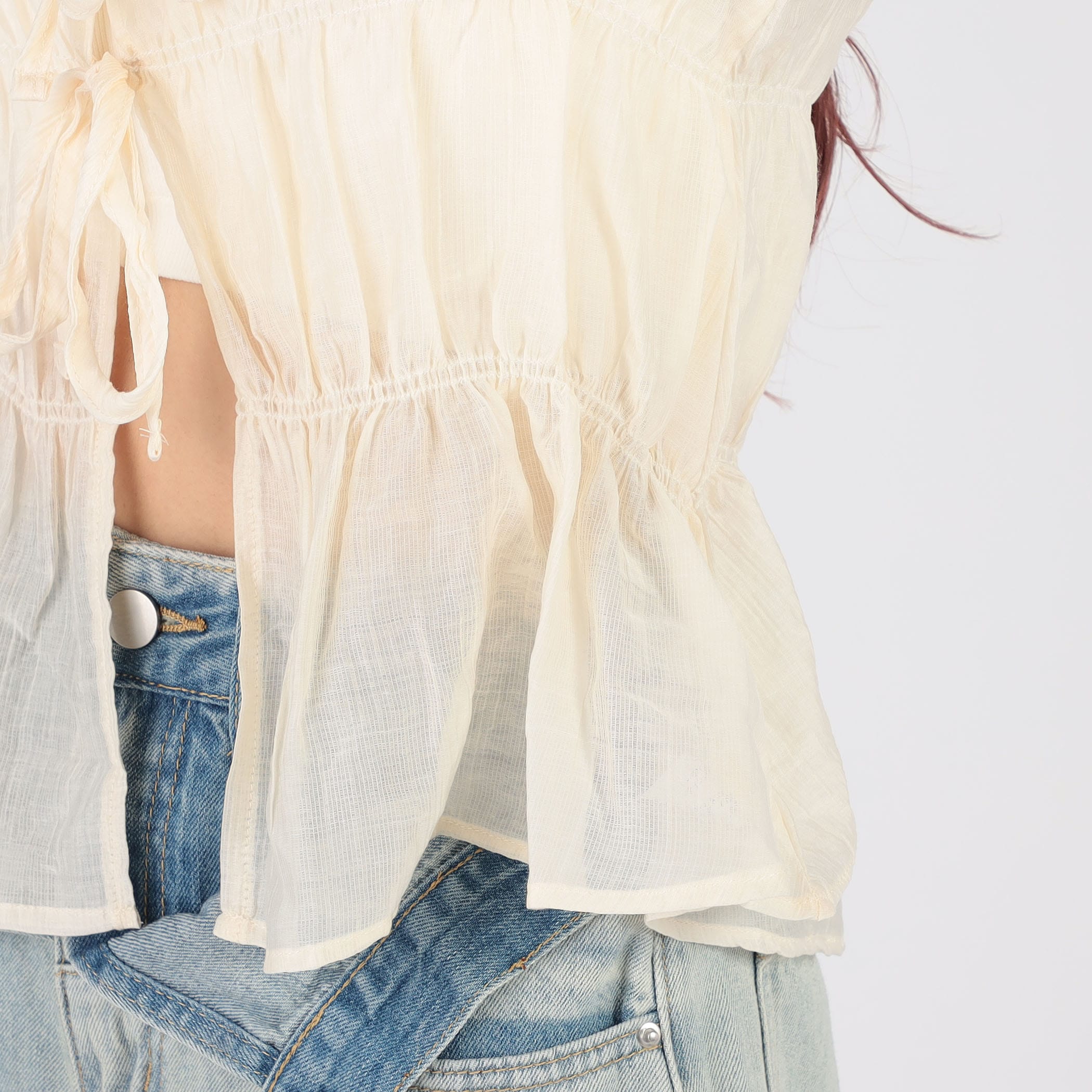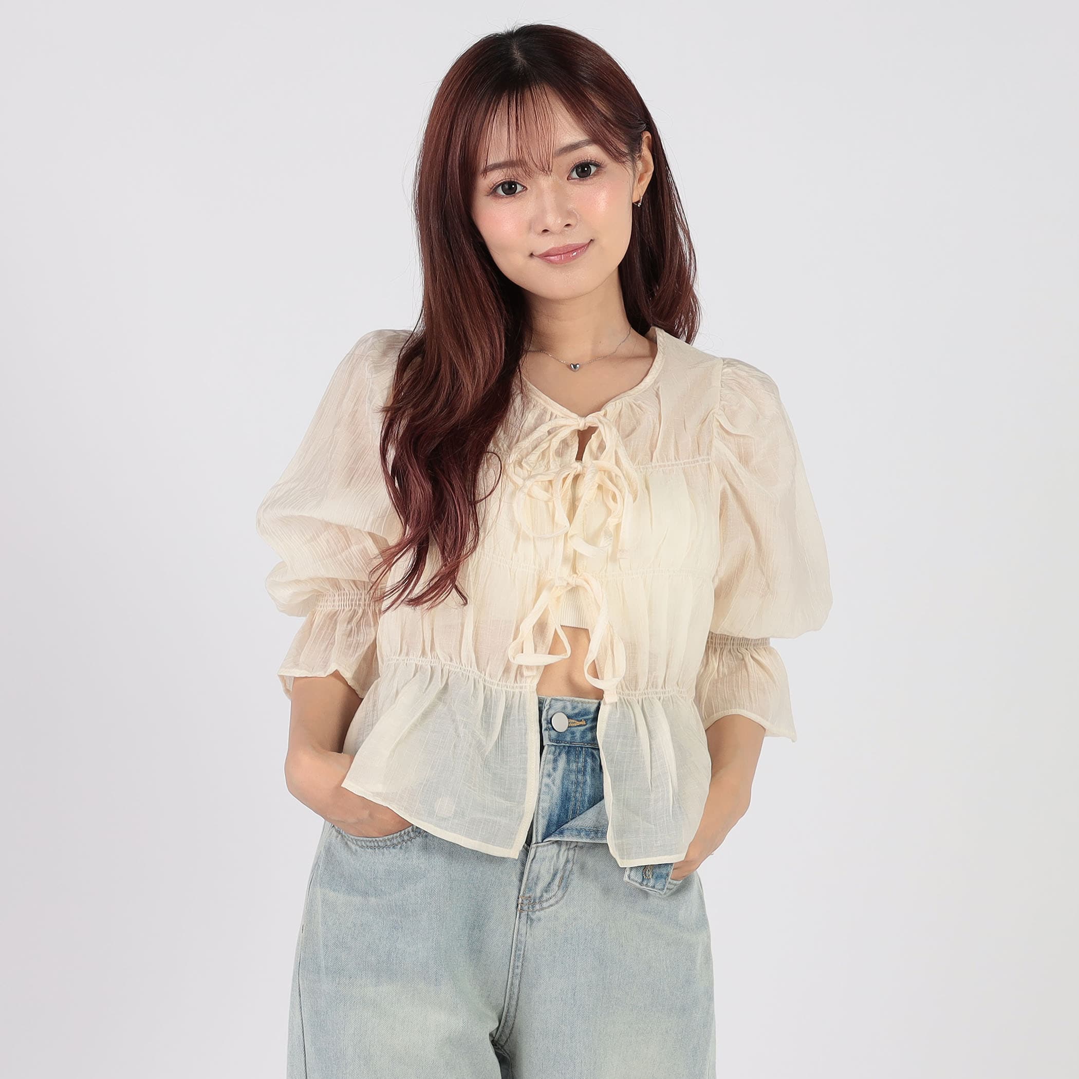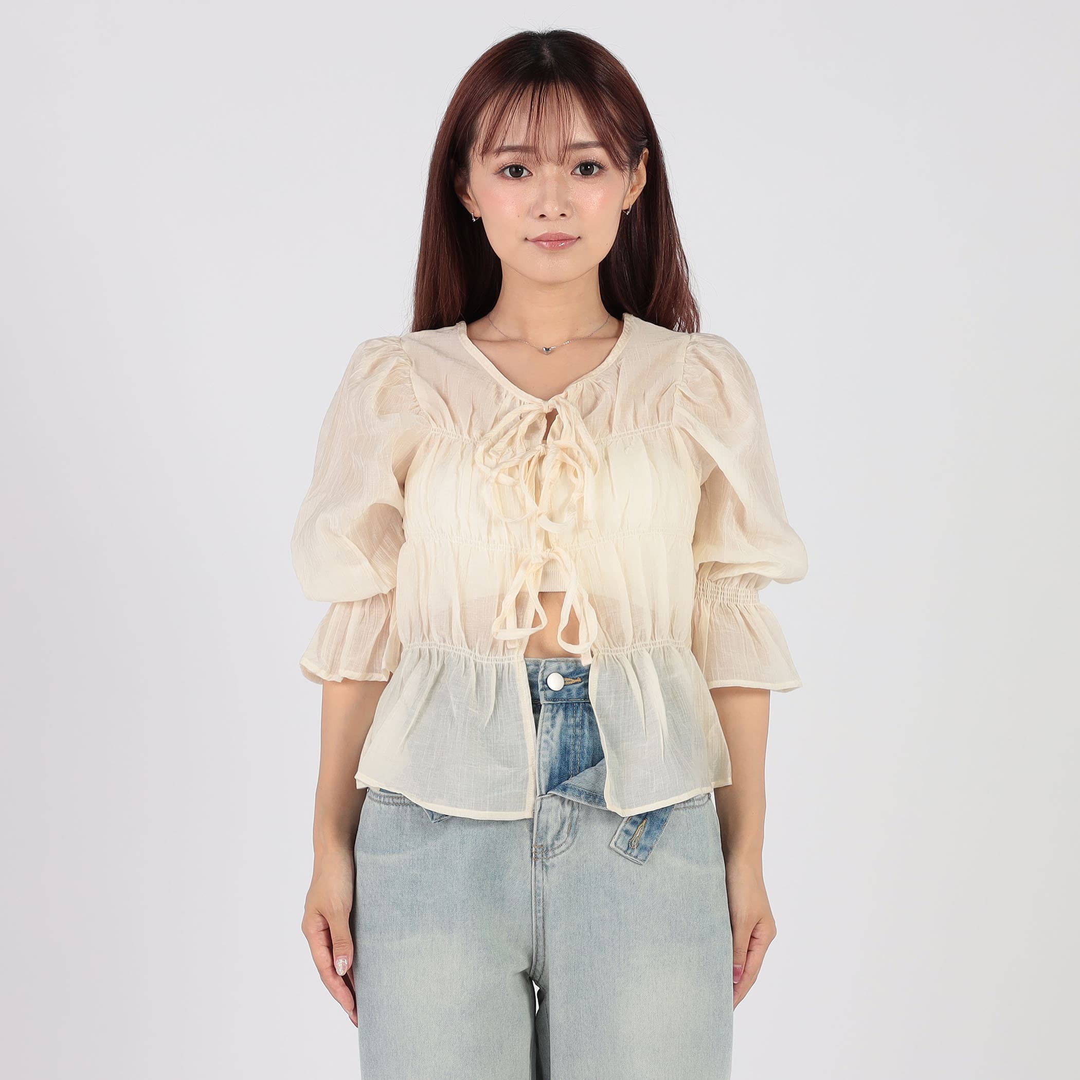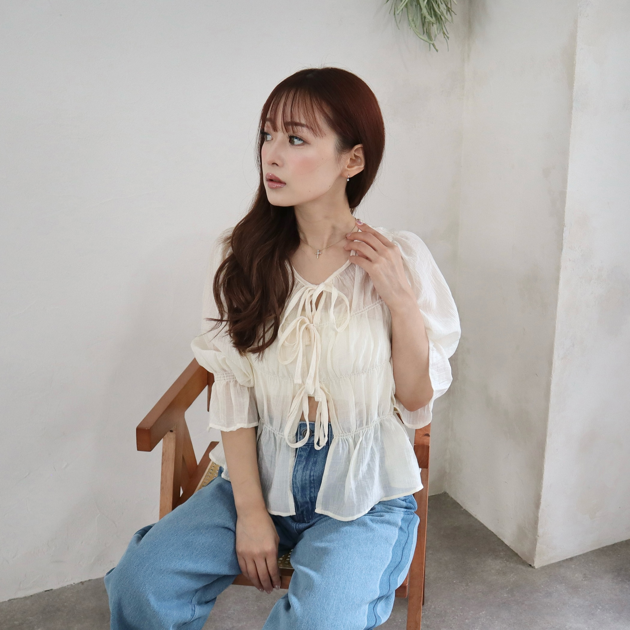 メリハリのあるシルエットで華奢見え効果抜群なブラウス。身ごろは伸縮性のあるシャーリングでフィット感があり、お袖はふわっとパフスリーブで可愛らしい雰囲気に。前後2wayで着用可能なのも嬉しいポイント◎デニムでカジュアルに着こなすのはもちろん、キャミワンピースに羽織ってもスタイルアップのコーデにまとまります。スカートやショートパンツを合わせたカジュアルガーリースタイルもおすすめ。