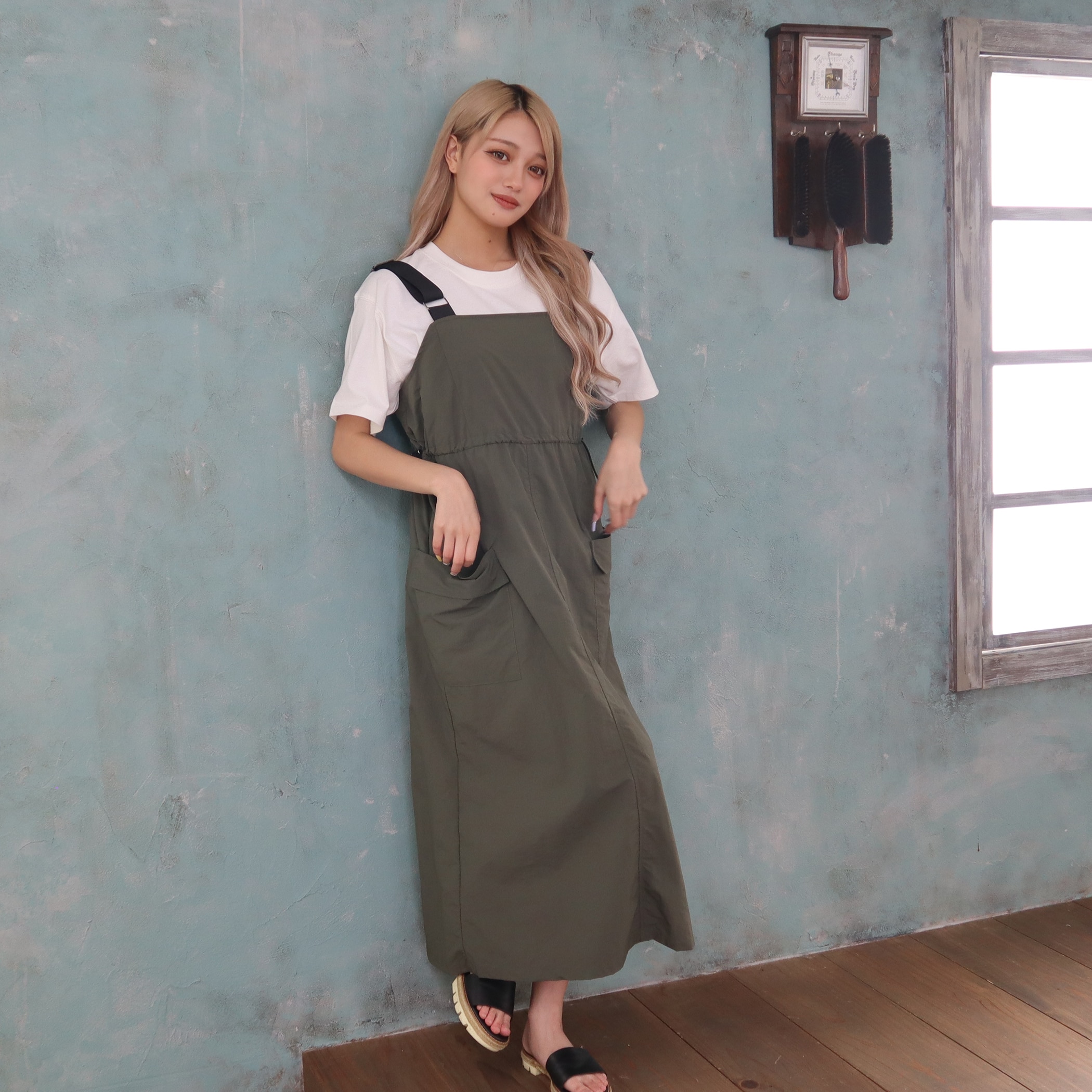 ウエストドロストナイロンワンピース