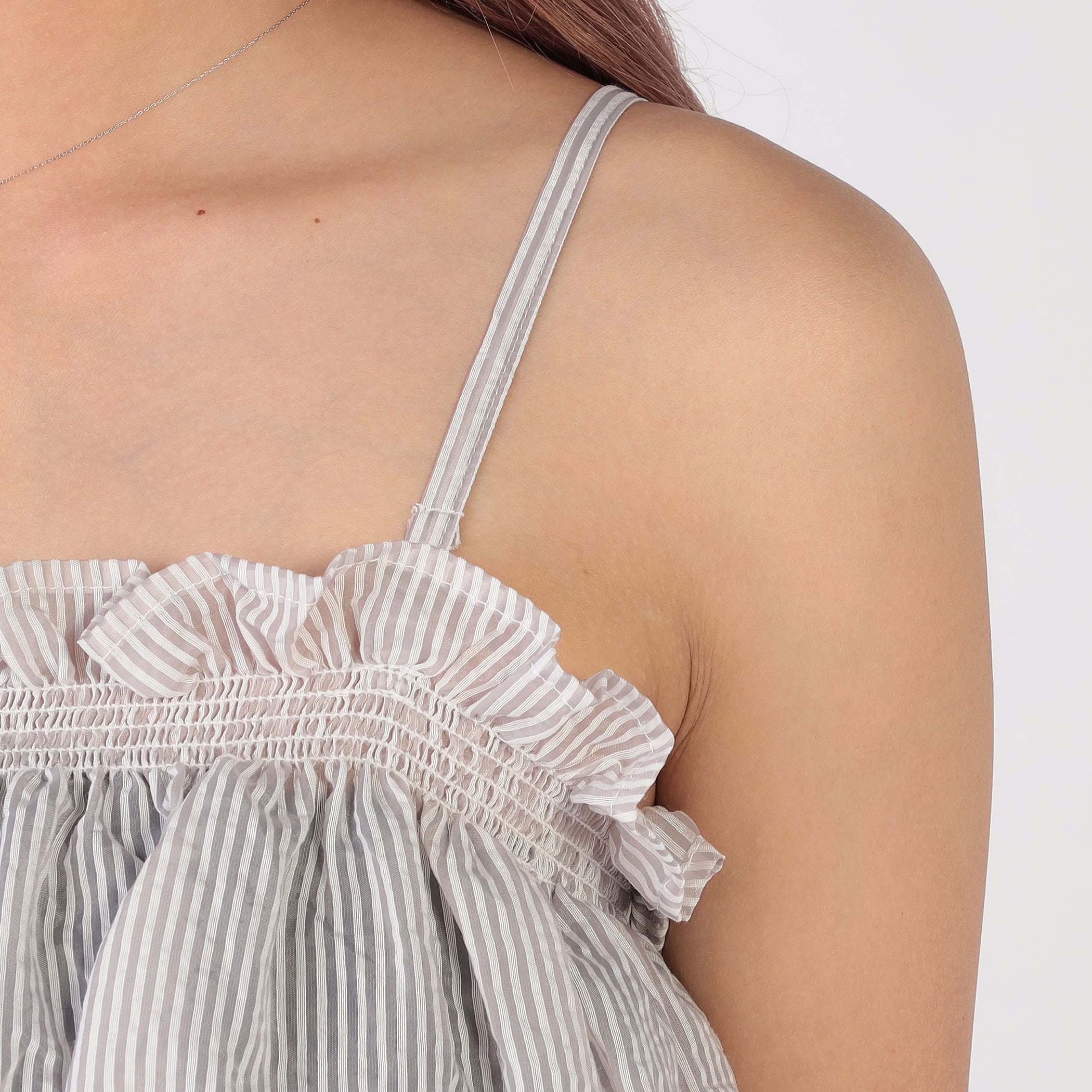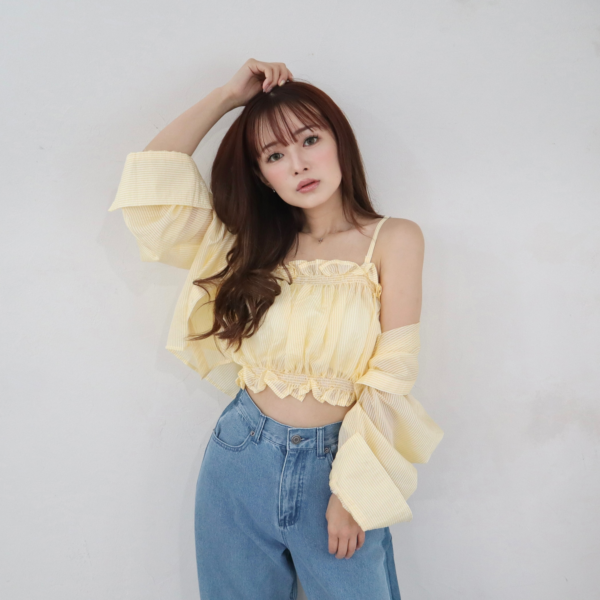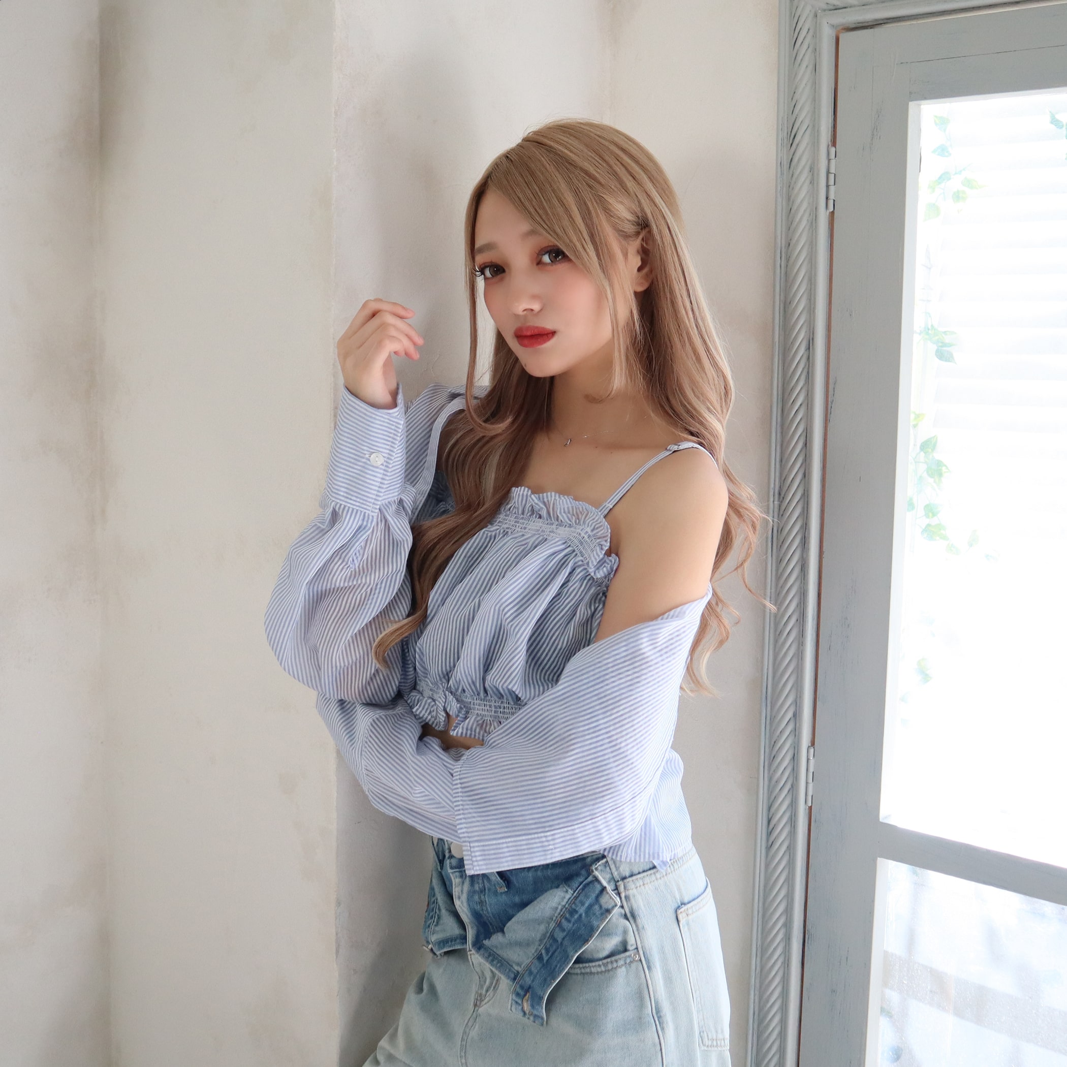 さらっとした肌触りが心地いいシアーシャツとビスチェのセットアイテムです。春夏らしい涼し気なカラーのストライプがポイント。セット商品なので単品でも着まわせる有能アイテムになっています◎