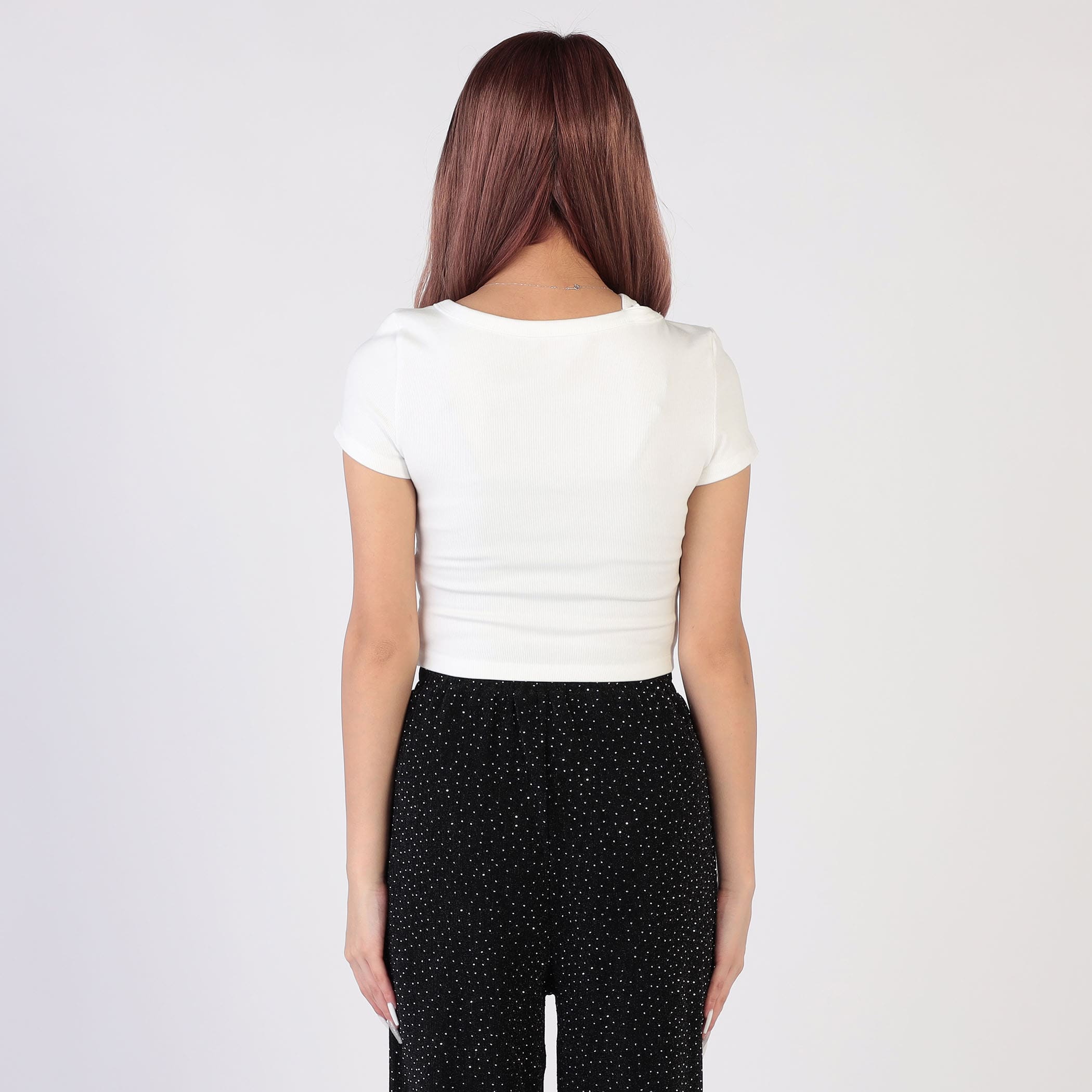 大胆にカットアウトしたタイトシルエットTEEシャツ。ビッグロゴが今季注目のポイント。