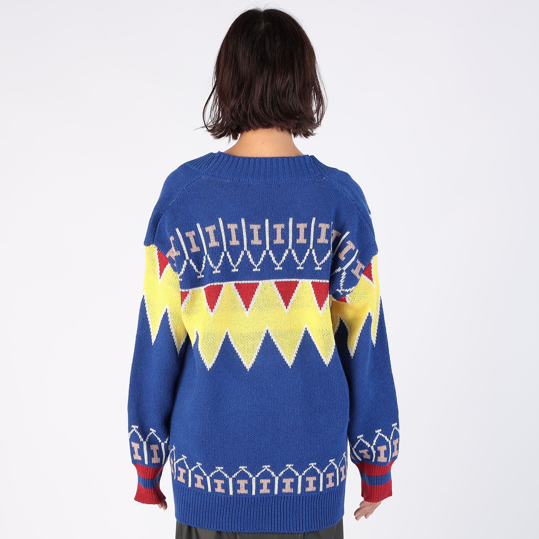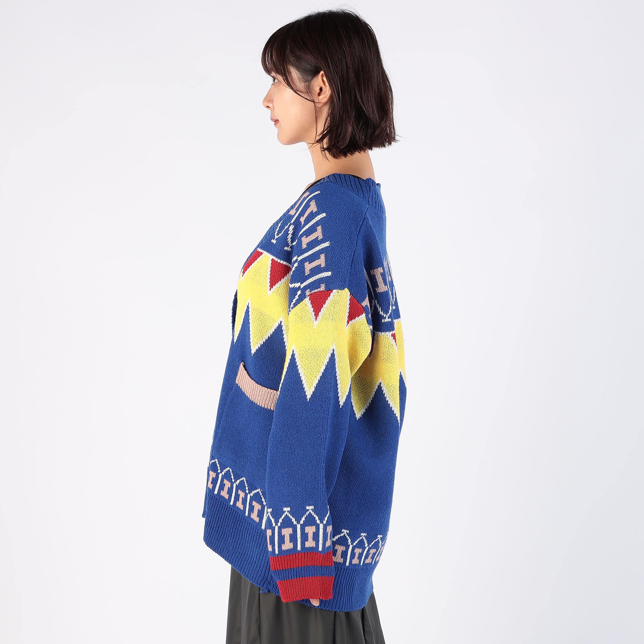存在感溢れるジャガード柄Vネックニットカーディガン。ざっくり開いたVネックが大人っぽい抜け感をプラスします。ゆるっと着られるオーバーサイズでボディラインを拾わずストレスフリーな着用感。羽織りとしても、ボタンを閉じてトップスとしても着回せるマルチな1枚。着映えするデザインなので、シンプルコーデにプラスするだけで印象的なスタイリングが完成します。