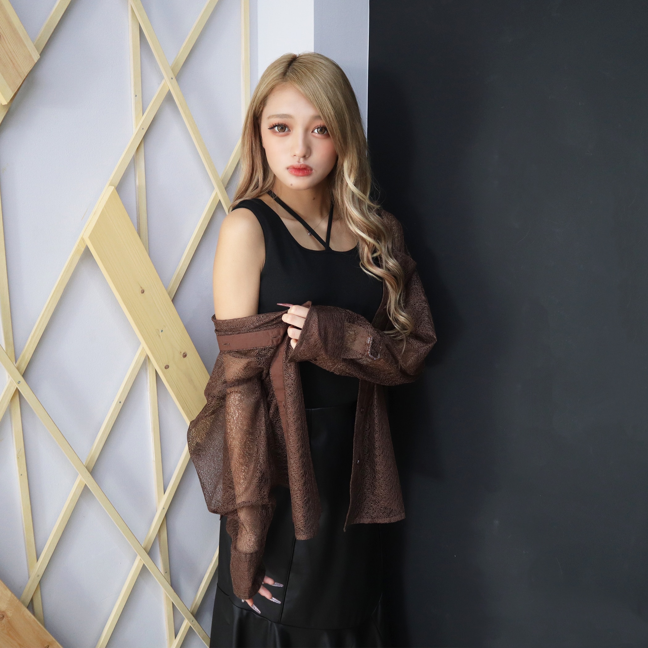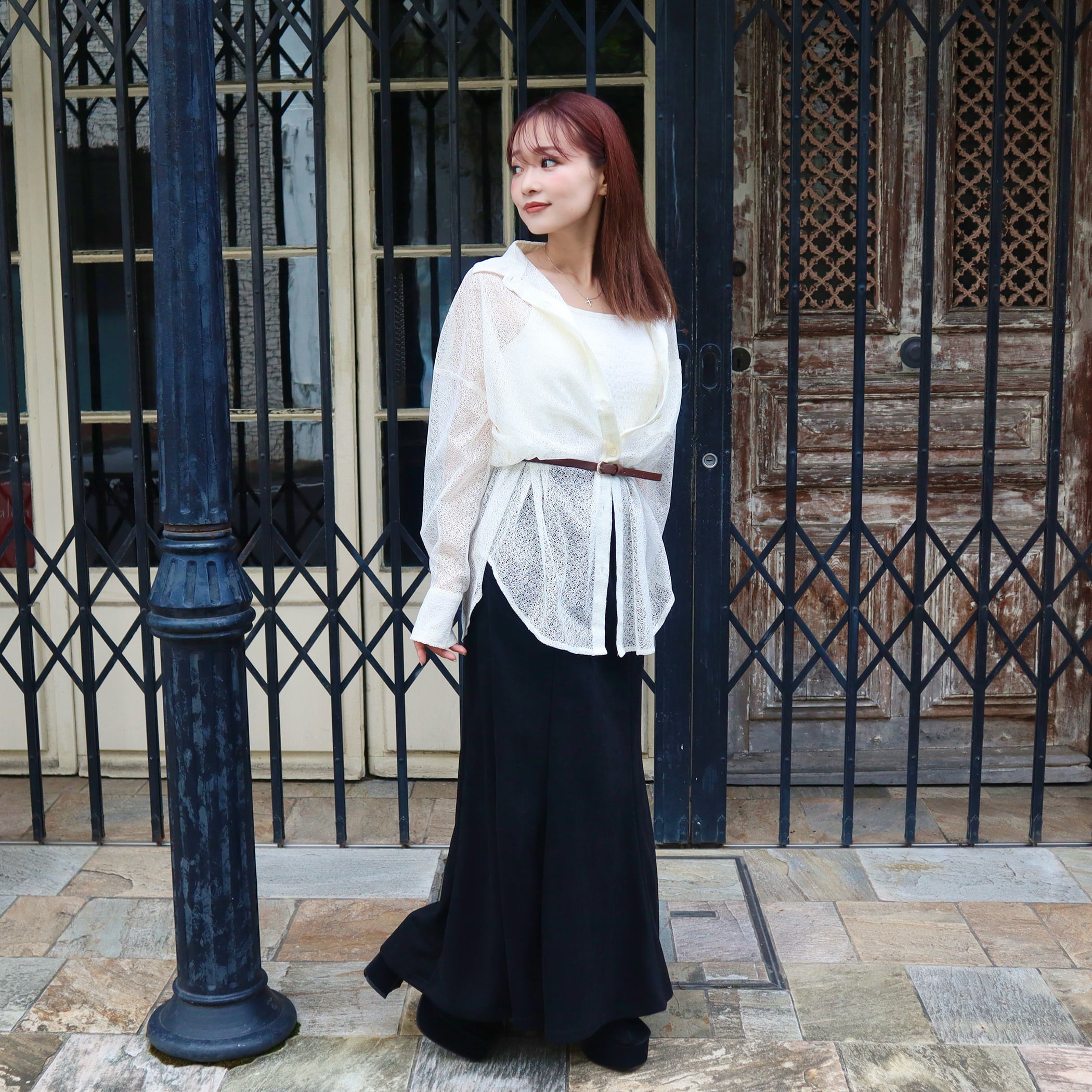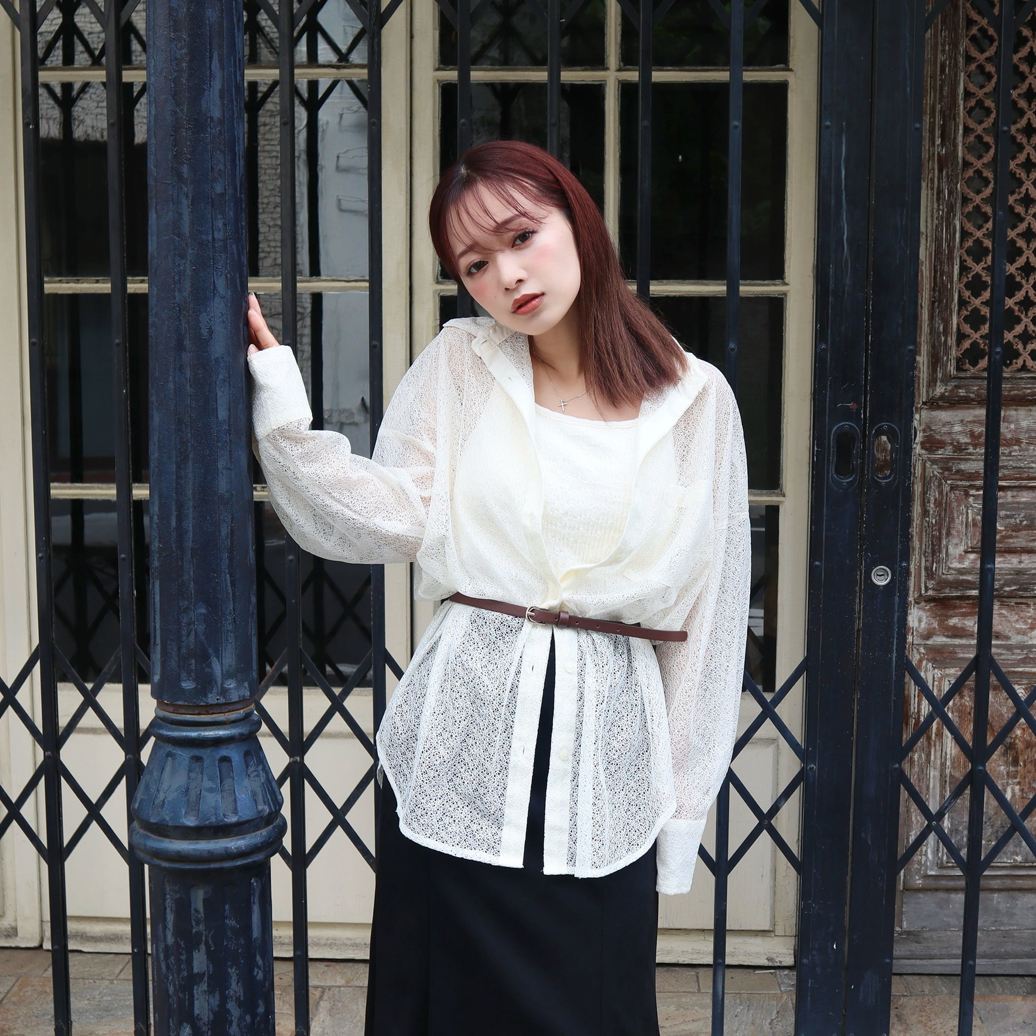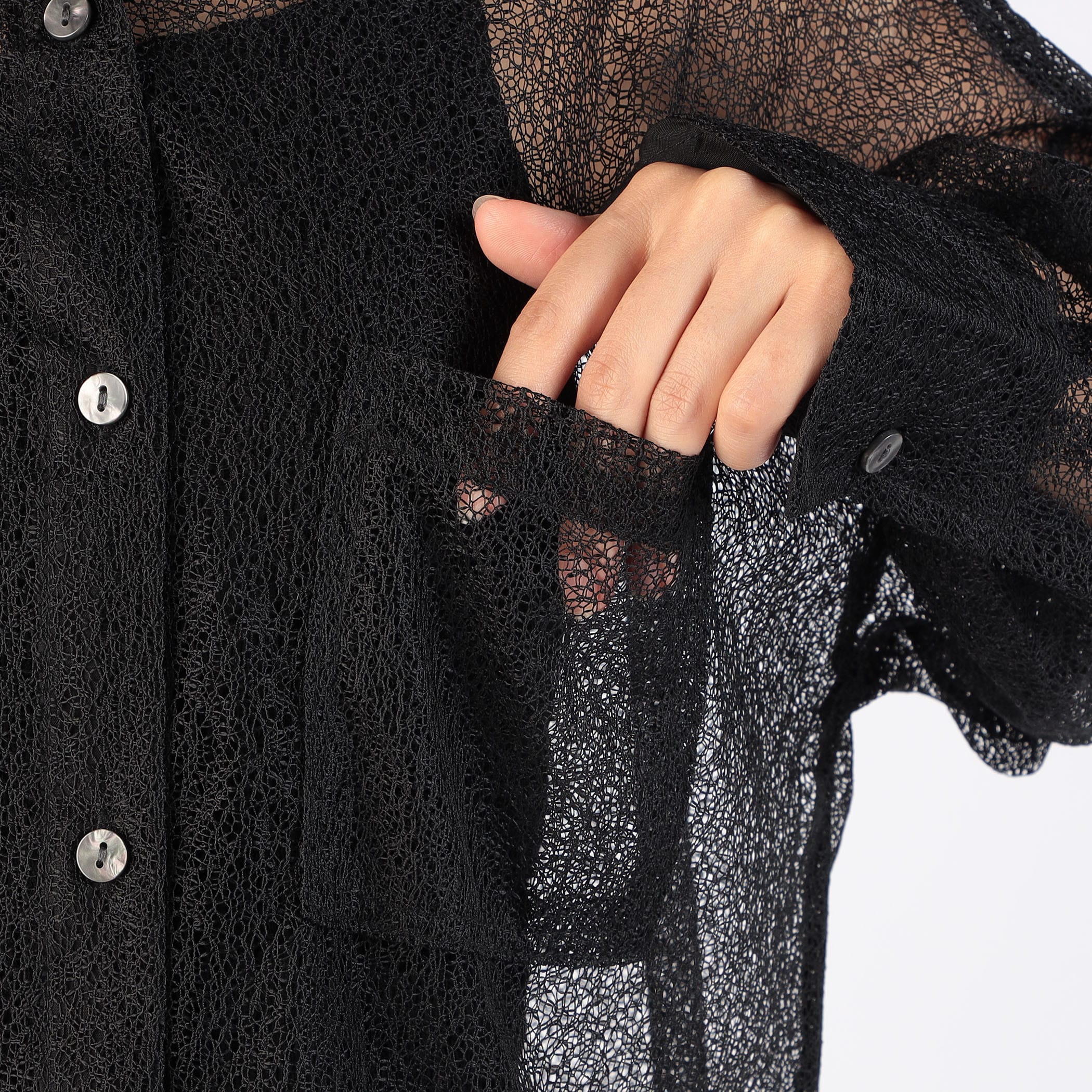細かいランダムな編み目がお洒落なビックシルエットのレースシャツ。柄が細かいので透け過ぎず、肌見せが苦手な方も着用しやすいです。腰まで隠れる丈感なので、着用するだけで抜け感とこなれた雰囲気をコーディネートに持たせてくれるアイテムです。