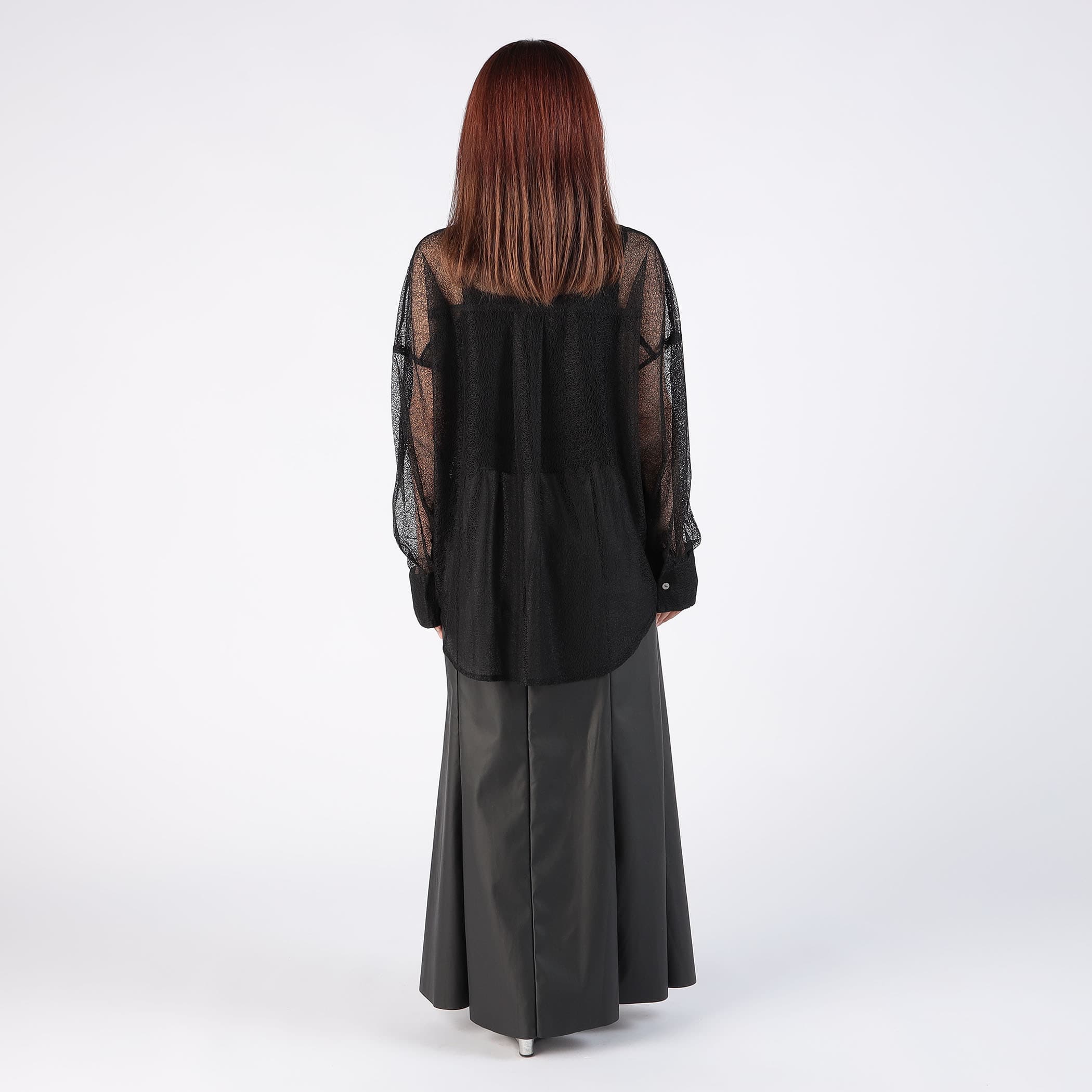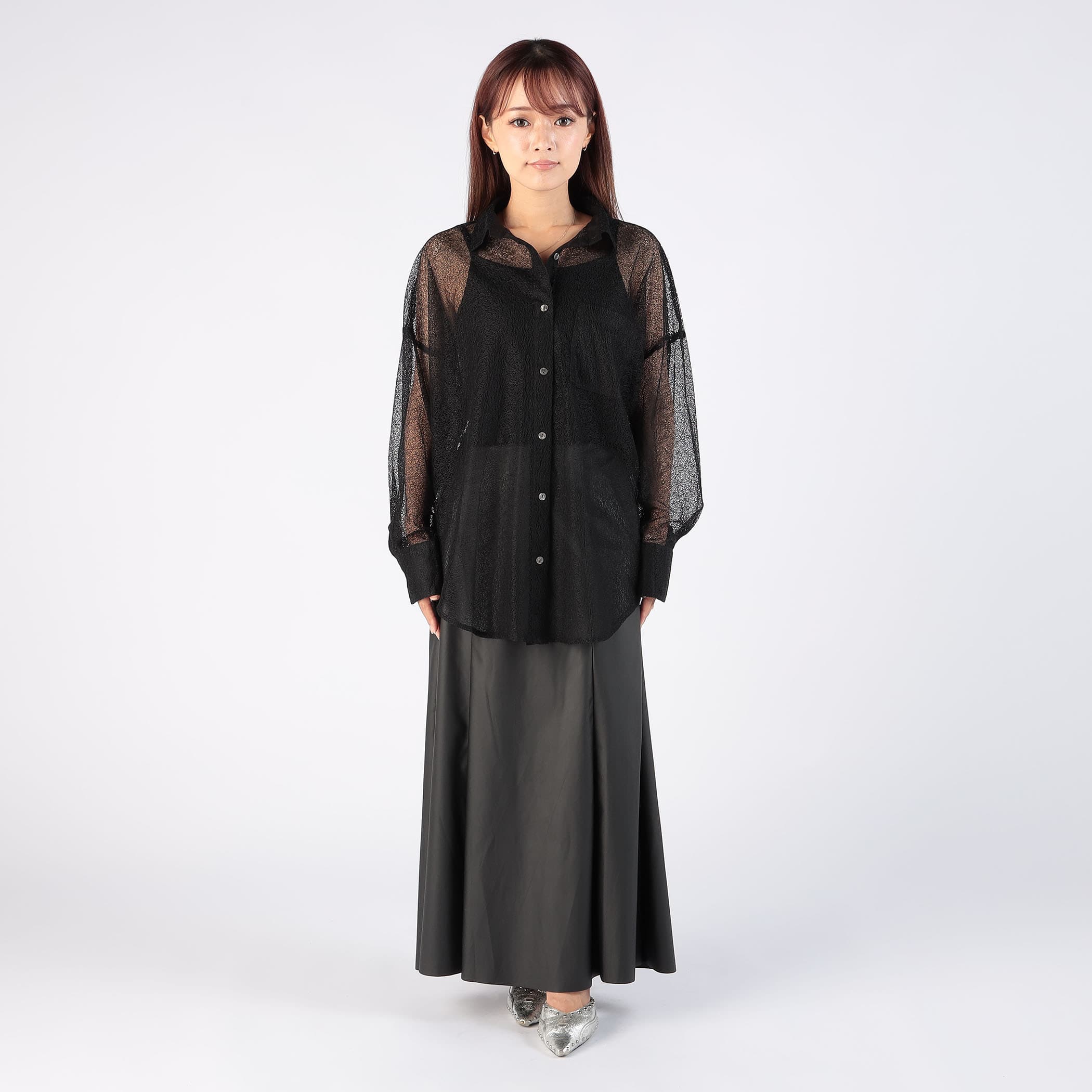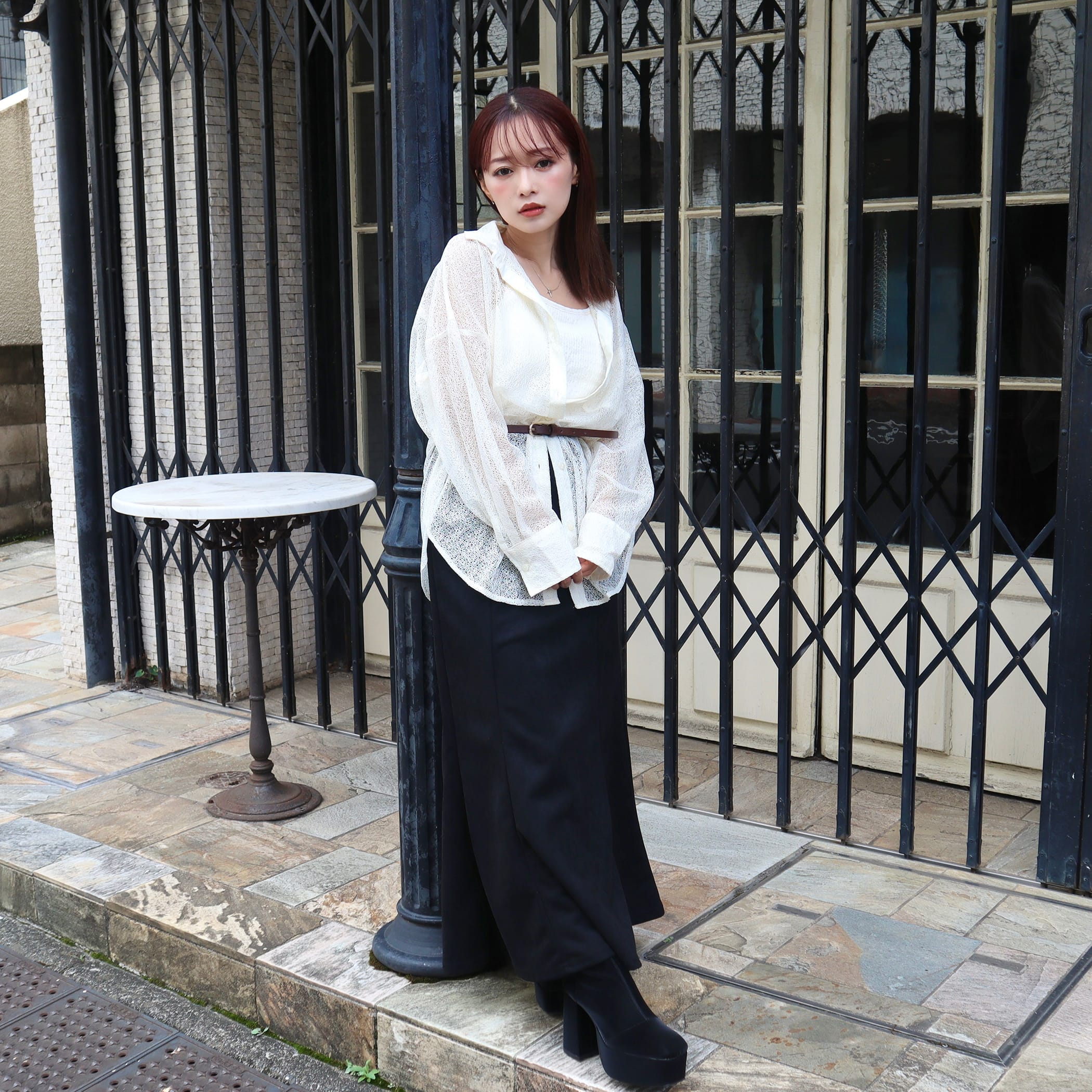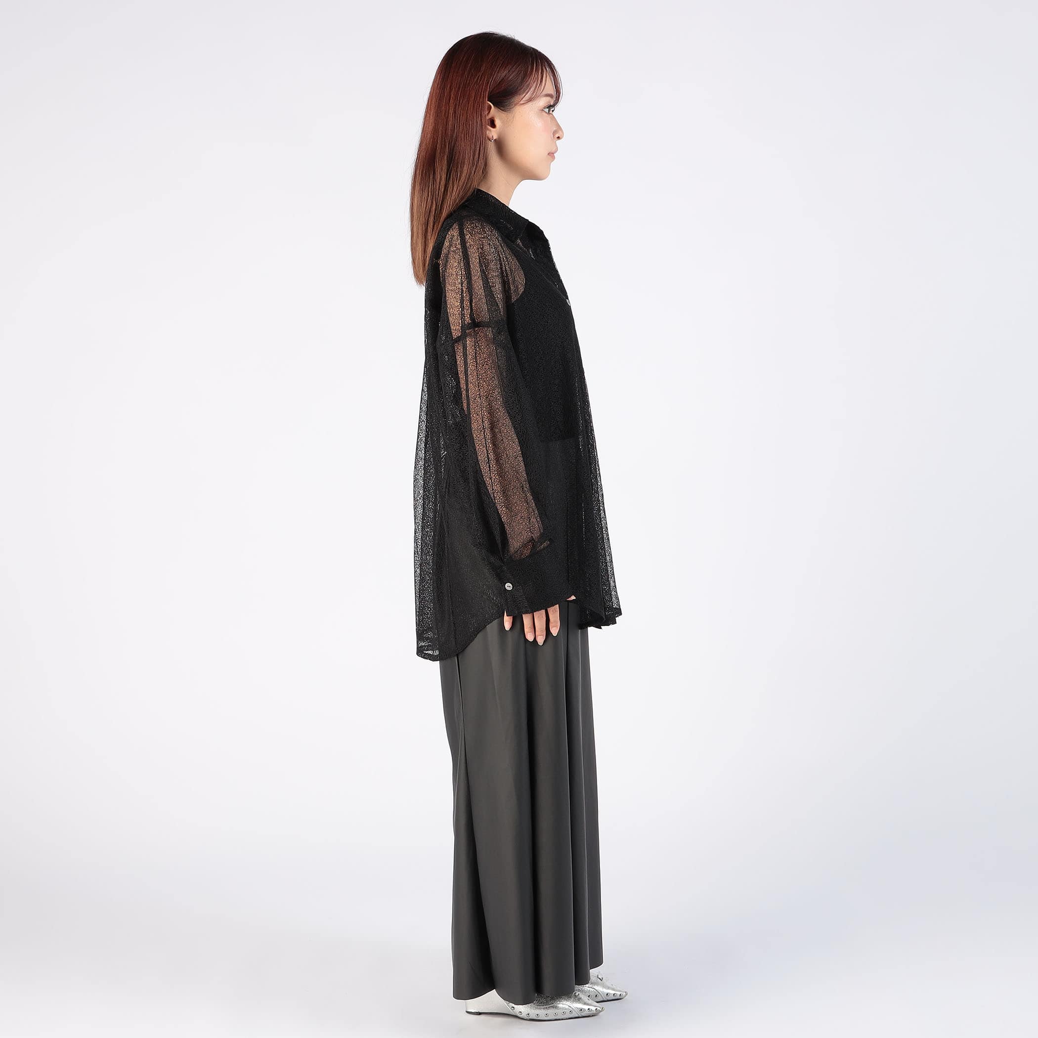 細かいランダムな編み目がお洒落なビックシルエットのレースシャツ。柄が細かいので透け過ぎず、肌見せが苦手な方も着用しやすいです。腰まで隠れる丈感なので、着用するだけで抜け感とこなれた雰囲気をコーディネートに持たせてくれるアイテムです。