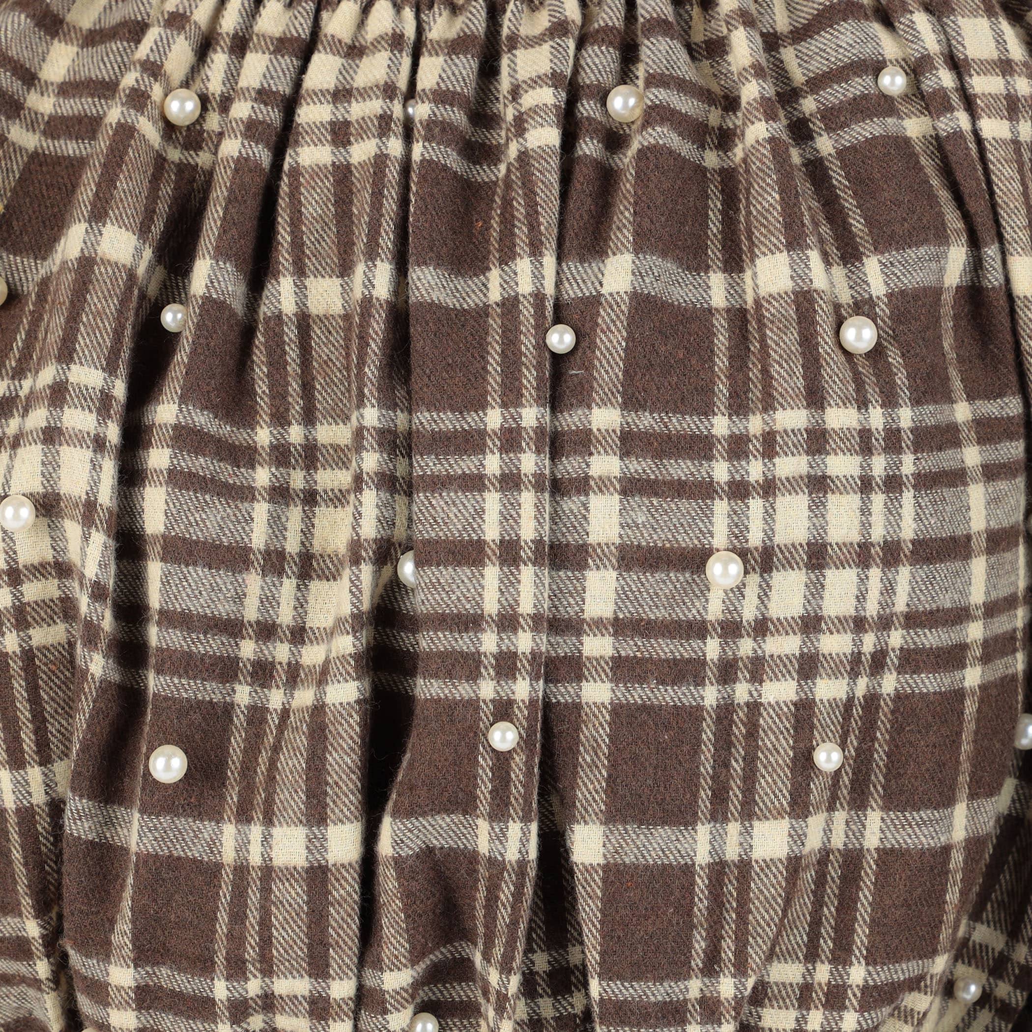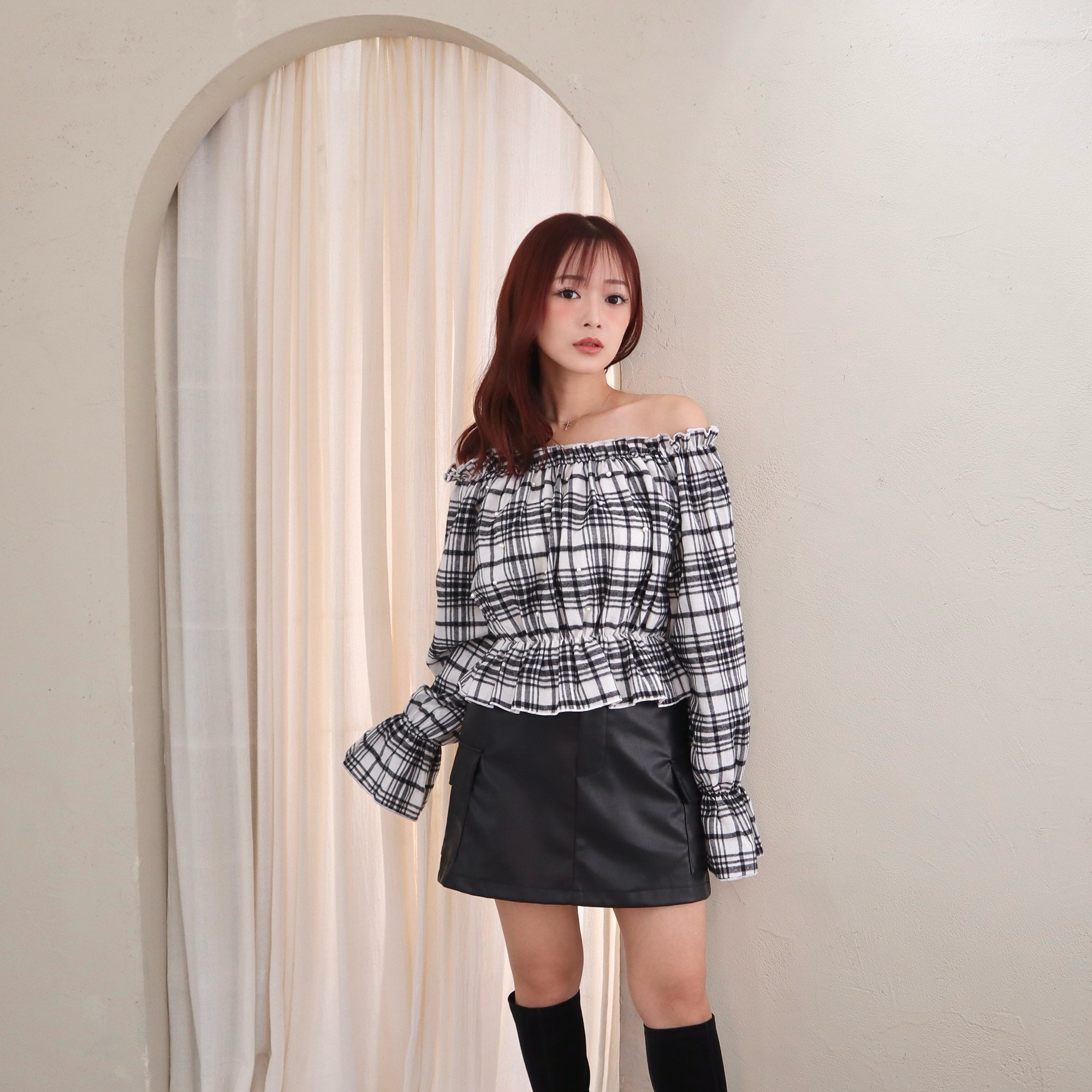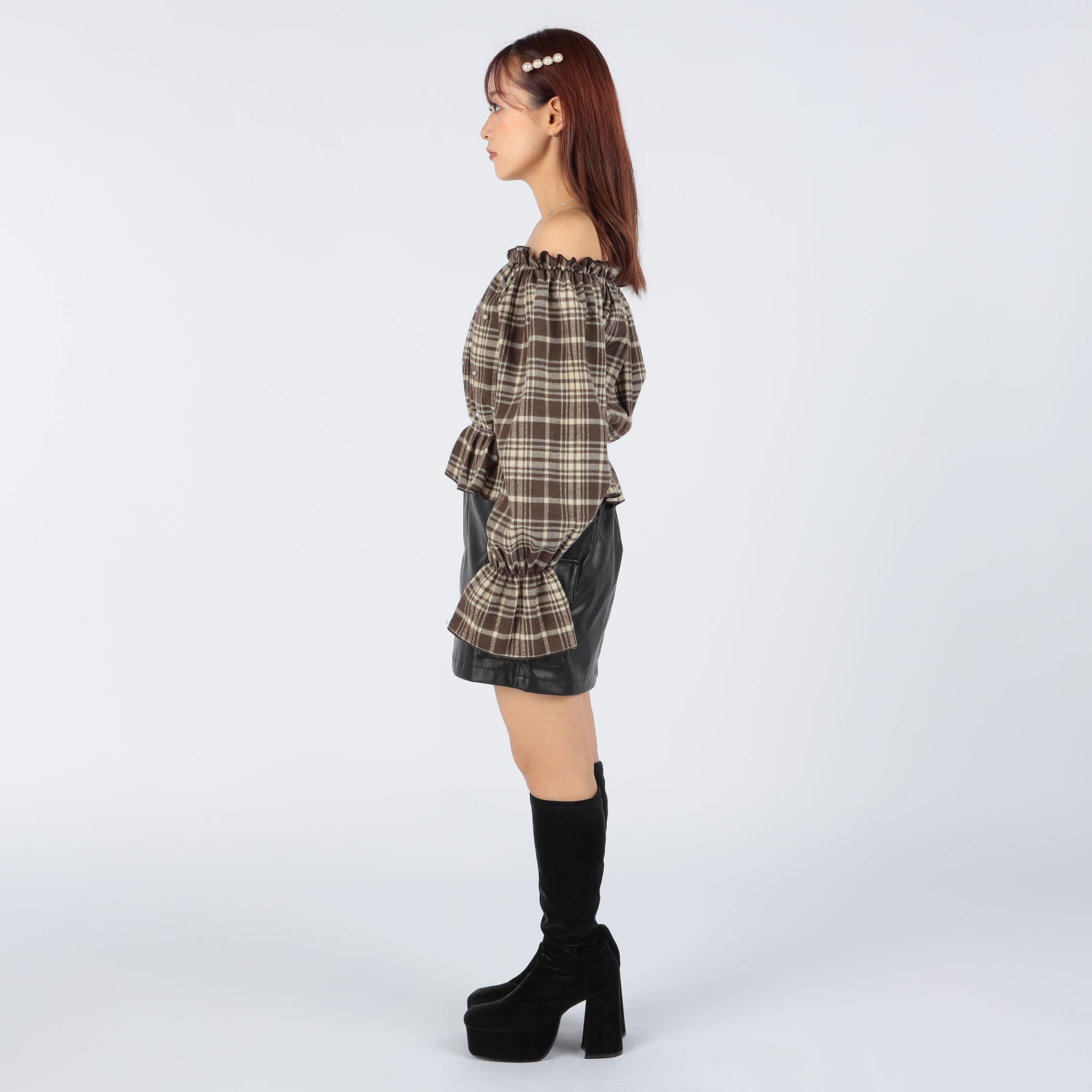 パールをちりばめたギャザーブラウス。トレンドのビジュー使いでパールをちりばめたチェック柄のブラウスです。襟回りにはゴム入り仕様にしてオフショルスタイルでも着用出来る2WAYデザインです。華奢魅せ出来るキャンディースリーブは可愛らしい印象に。甘くなりがちなギャザーデザインでもチェック柄生地を使用することによって、デニム合わせでカジュアルな着こなしにも◎ミニ丈のボトムを合わせると人気の韓国ファッションな着こなしも楽しめ、リボンアイテムと合わせてガーリーなコーデもオススメです。秋服冬服コーデにONすればシーズンムードをぐっと高めてくれます。