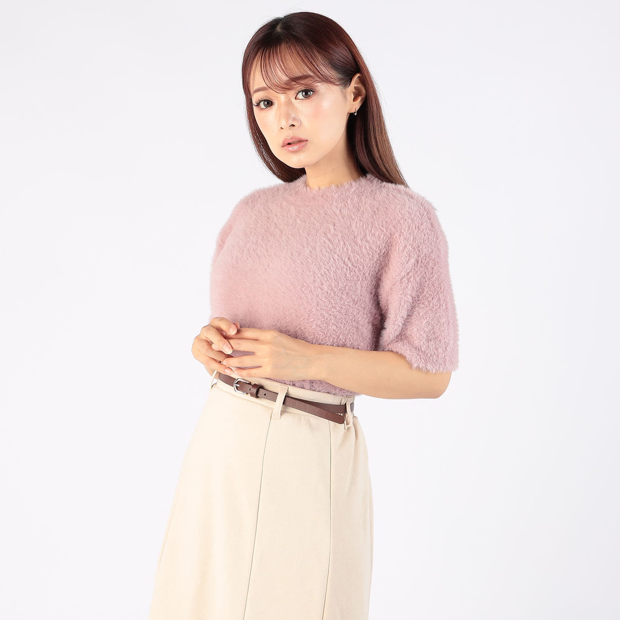 暖かみのあるふわふわのシャギーニット素材で思わず触れたくなるフェミニンプルオーバー。ふんわりバルーンスリーブでトレンドライクに。シンプルだからどんなボトムスとも相性抜群。コーデに悩まずONもOFFも着回せる万能な1枚です。