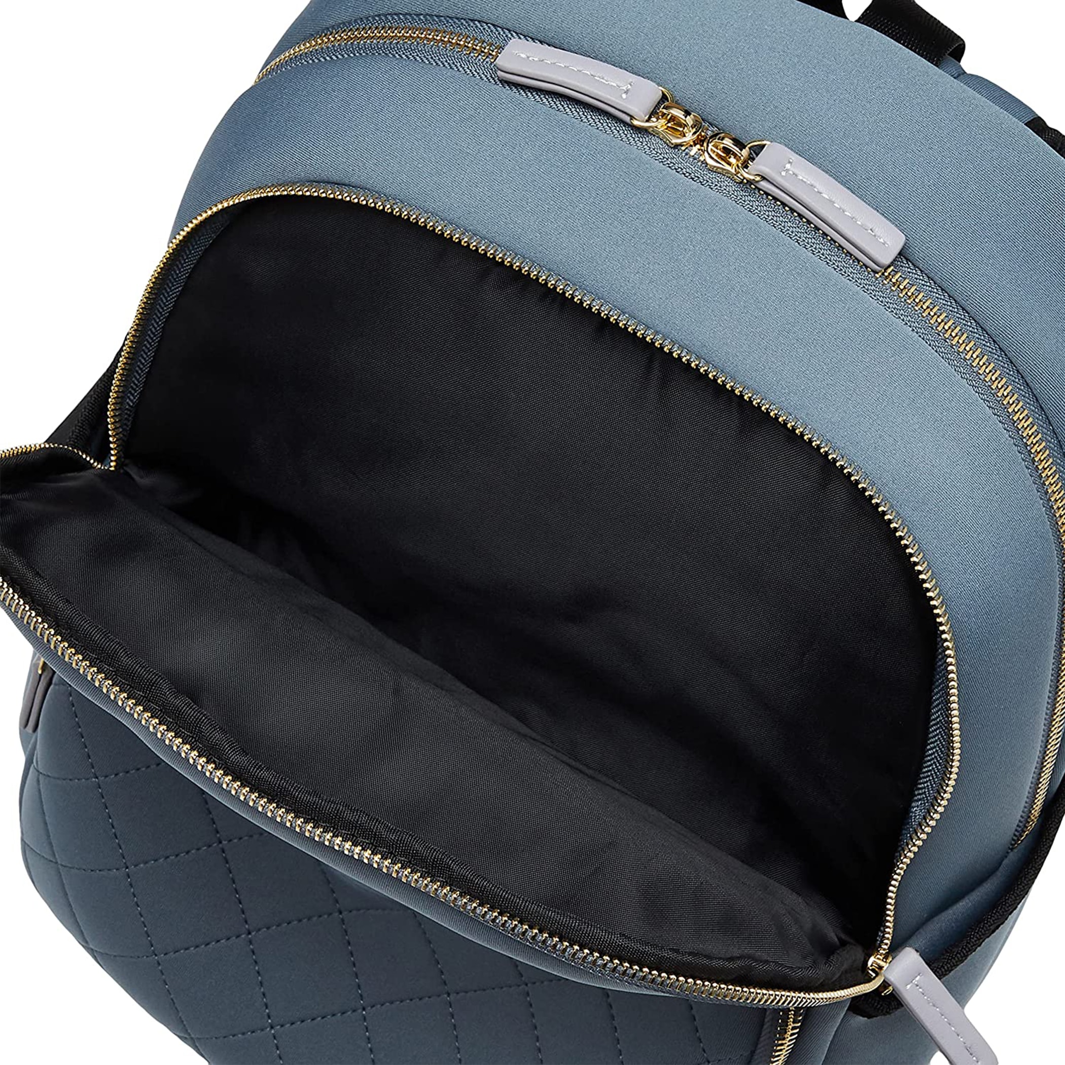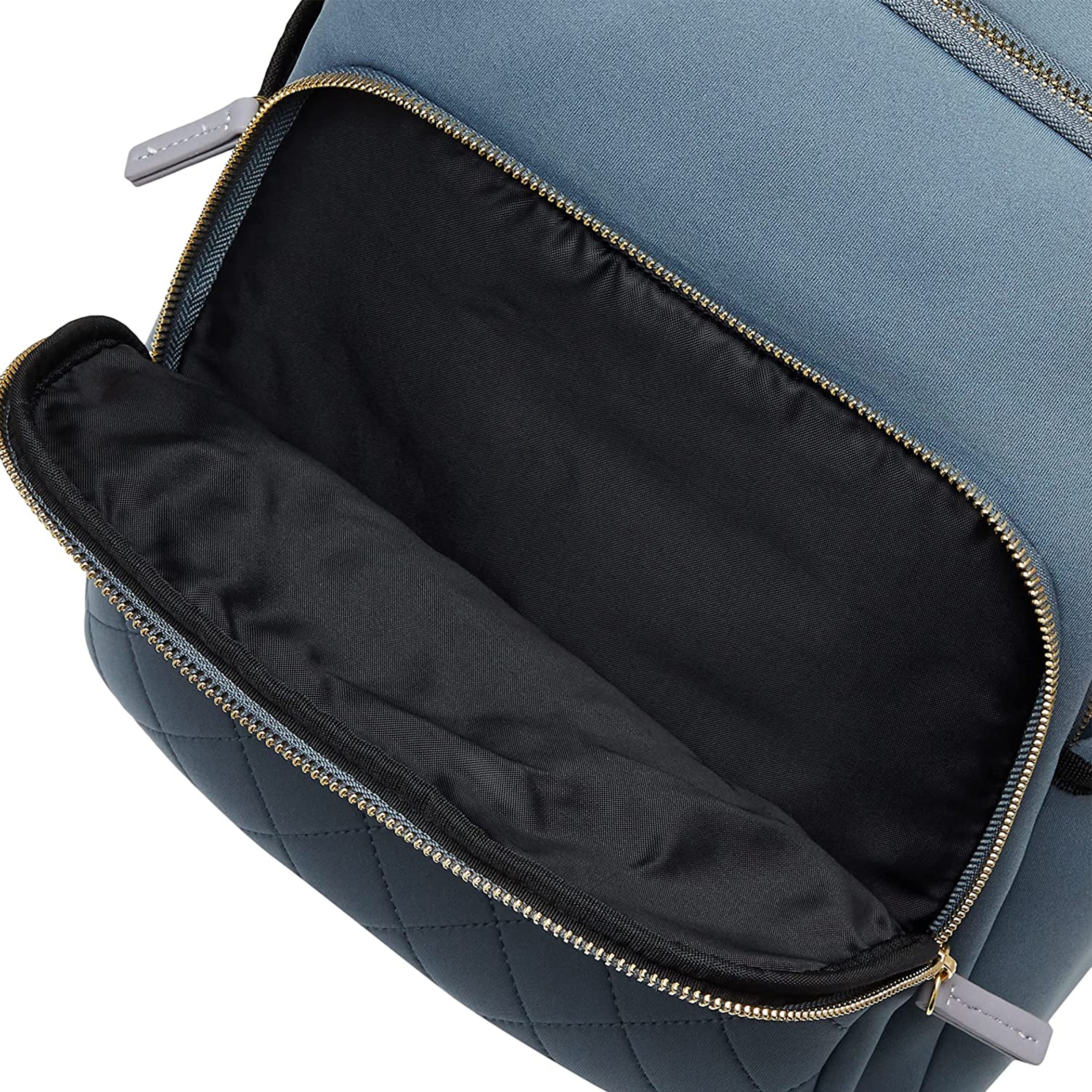 キルティングをポイントにしたシリーズです。キャリーケースとの相性も抜群。本体前胴にファスナーポケット2個、両サイドにオープンポケット2個。背胴側にキャリーケースに付けれるファスナーポケット。内装背胴側にスポンジ入りオープンポケット。前胴側にオープンポケット付き。