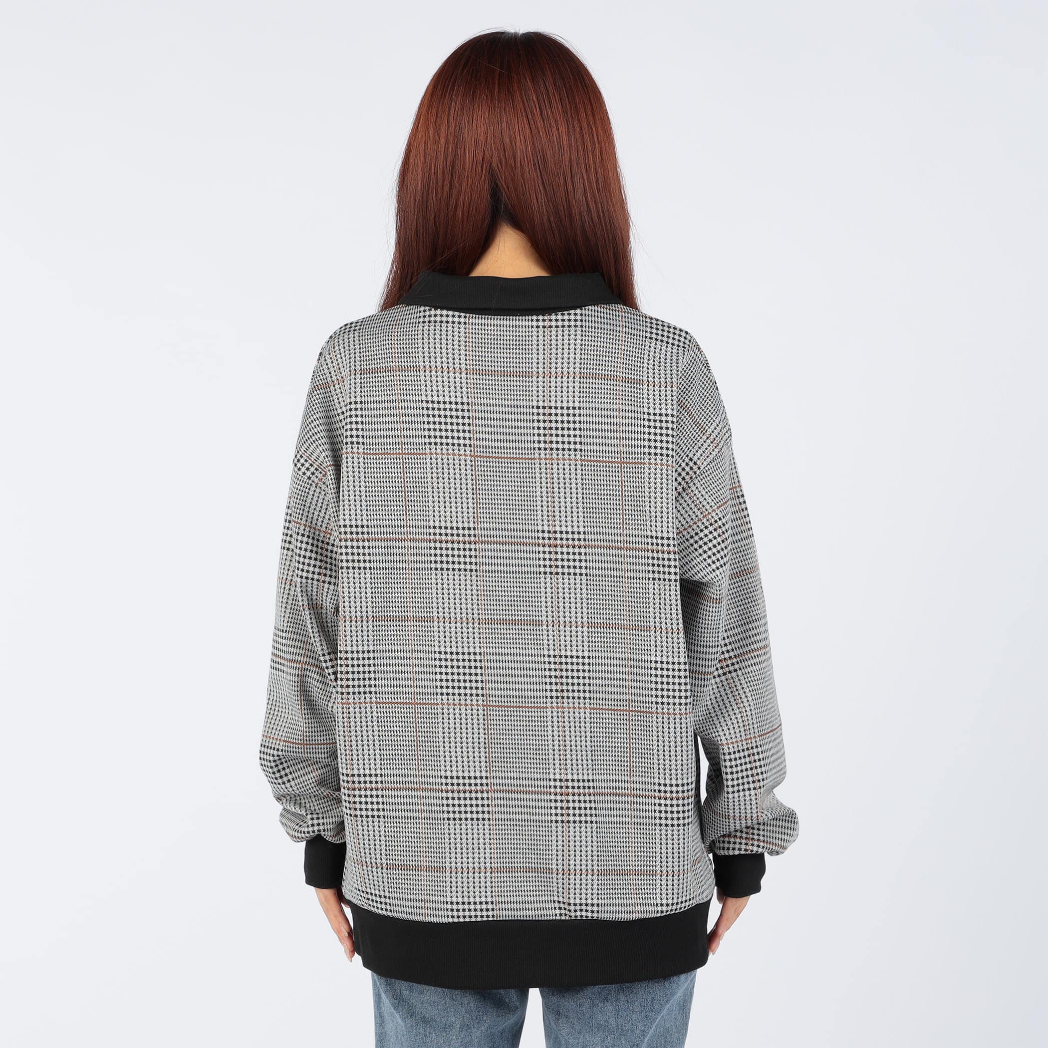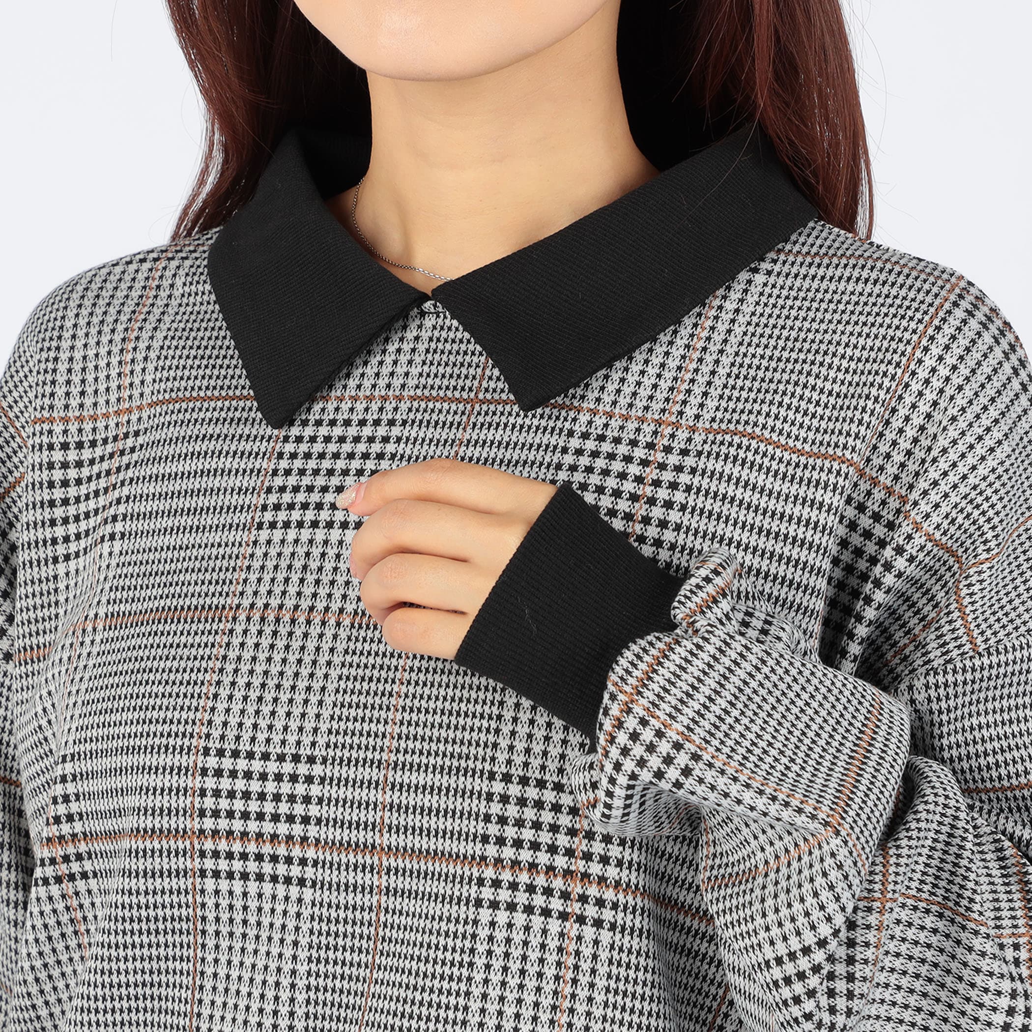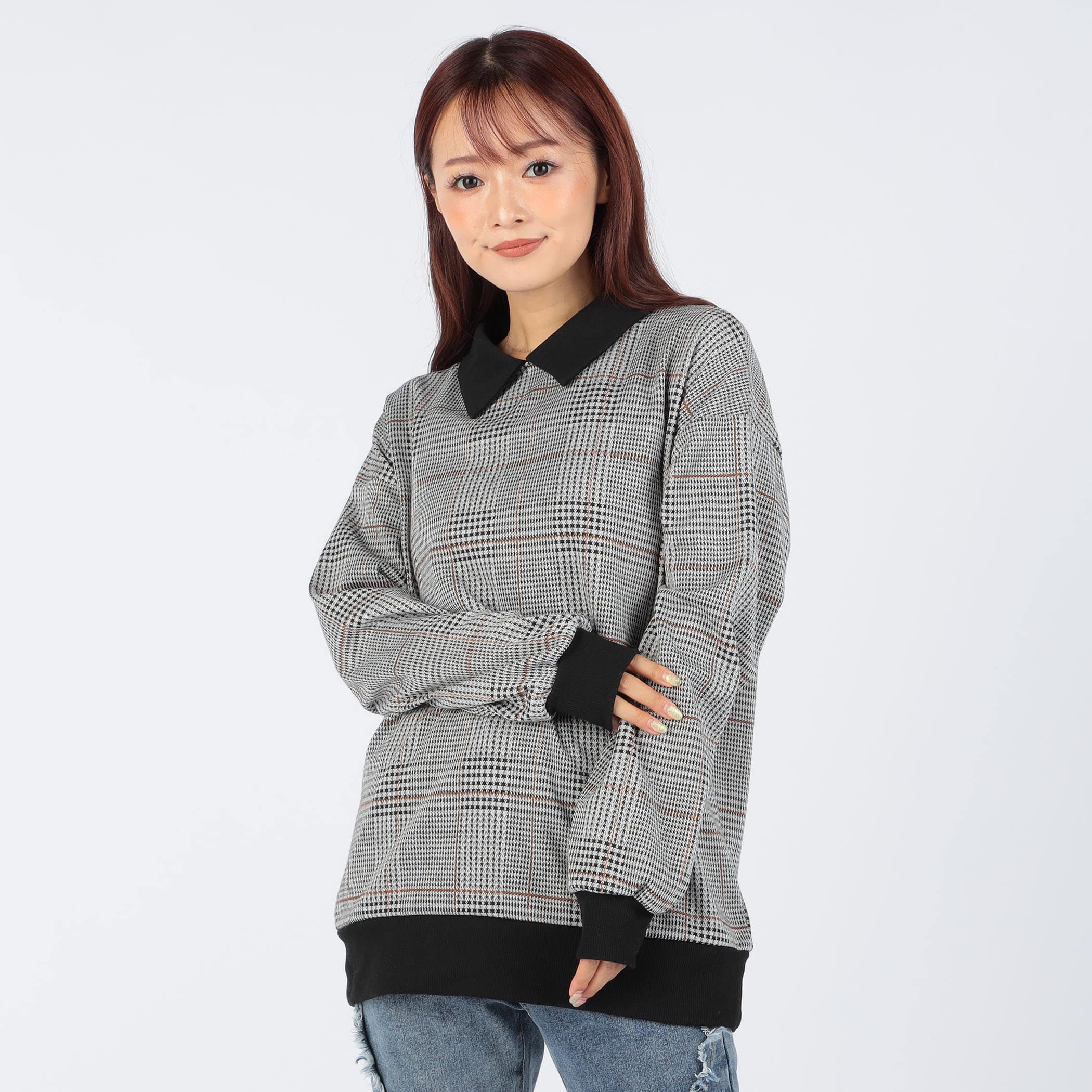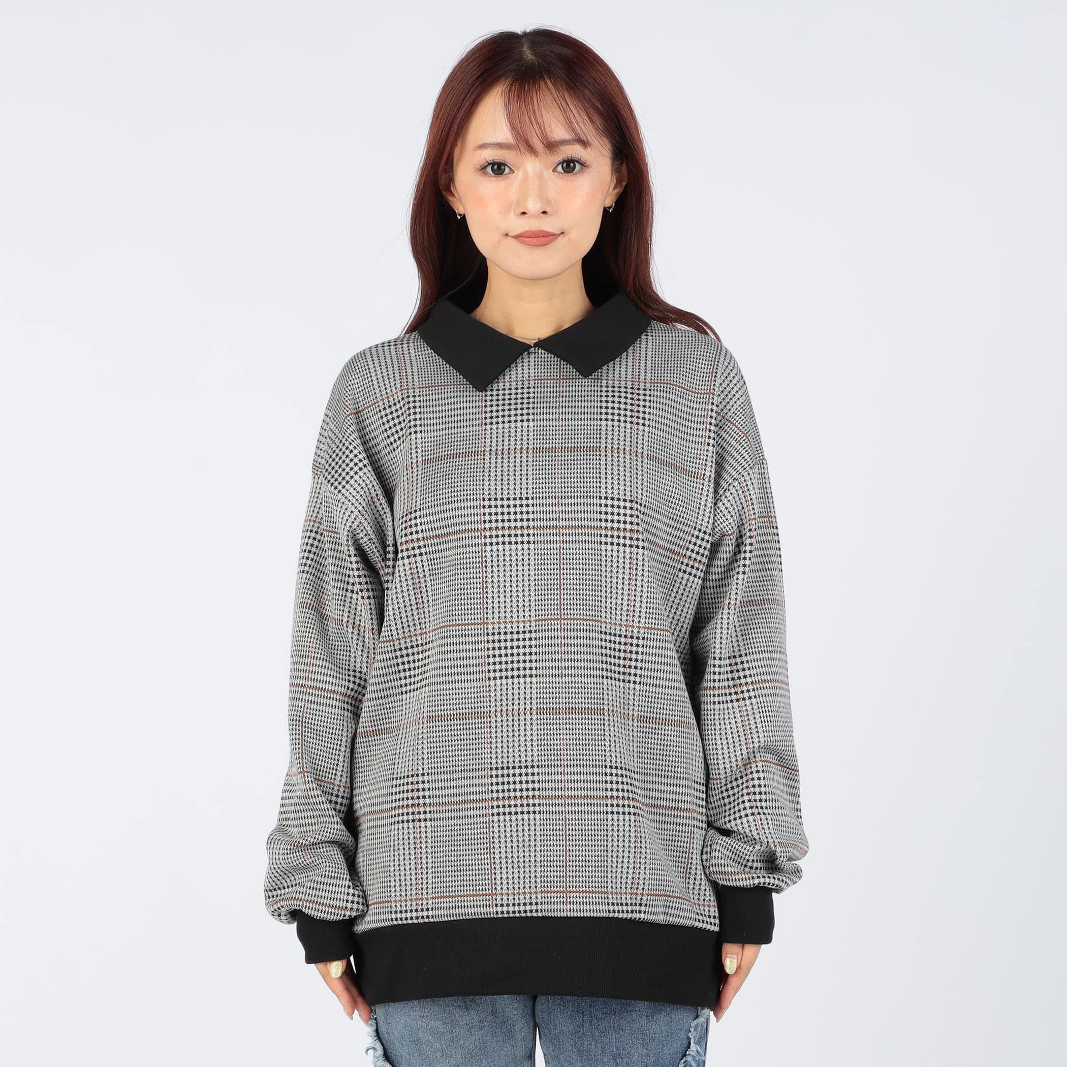 ドロップショルダーで抜け感のあるサイズ感が着用しやすいカジュアルな印象の衿付きジャガードトップス。体のラインを拾わない華奢見えさせてくれるサイズ感で、落ち着いたトーンのカラー展開なのでボトムを選ばず、お手持ちのアイテムにも合わせやすい一枚です。