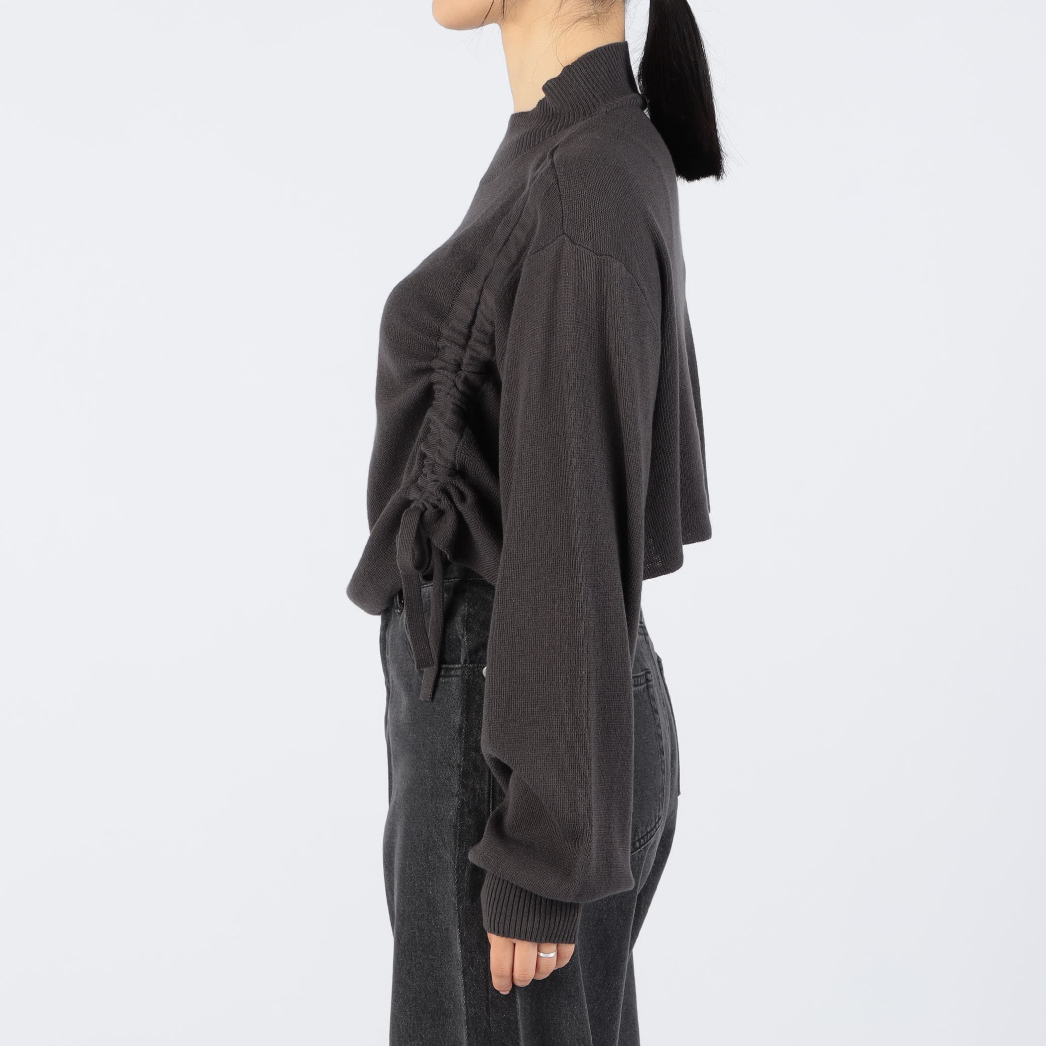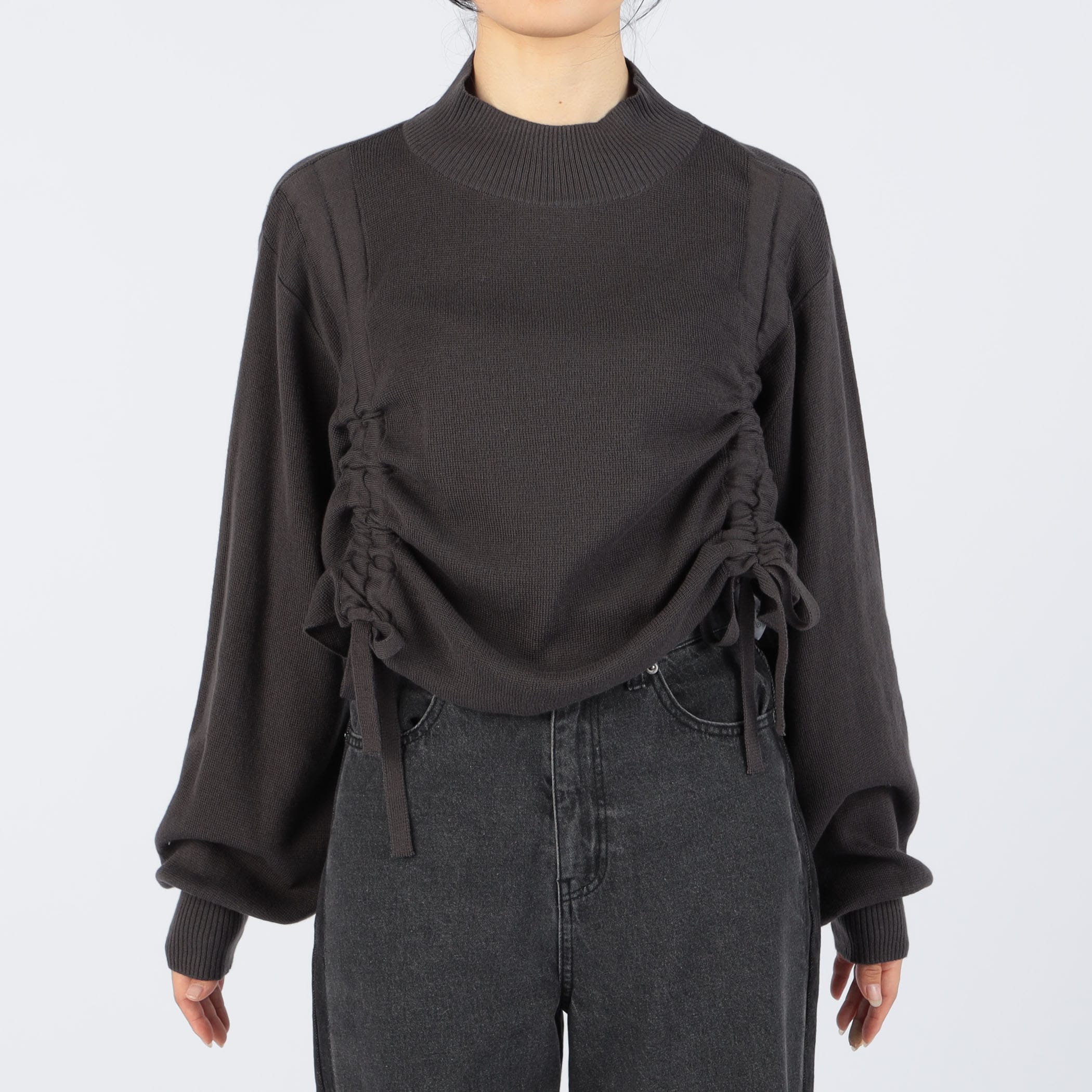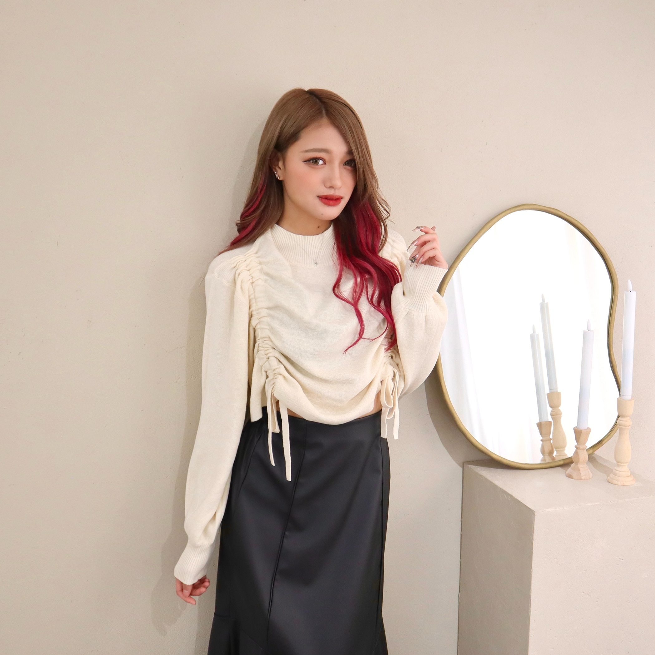 様々なコーデに合わせられる万能なニット。ドロストの紐を調整すれば長さやボリュームのアレンジができます。ボトムスも選ばずカジュアルでもモードでもテイスト問わず使えるアイテムなので、ワードローブに加えたい1着です。