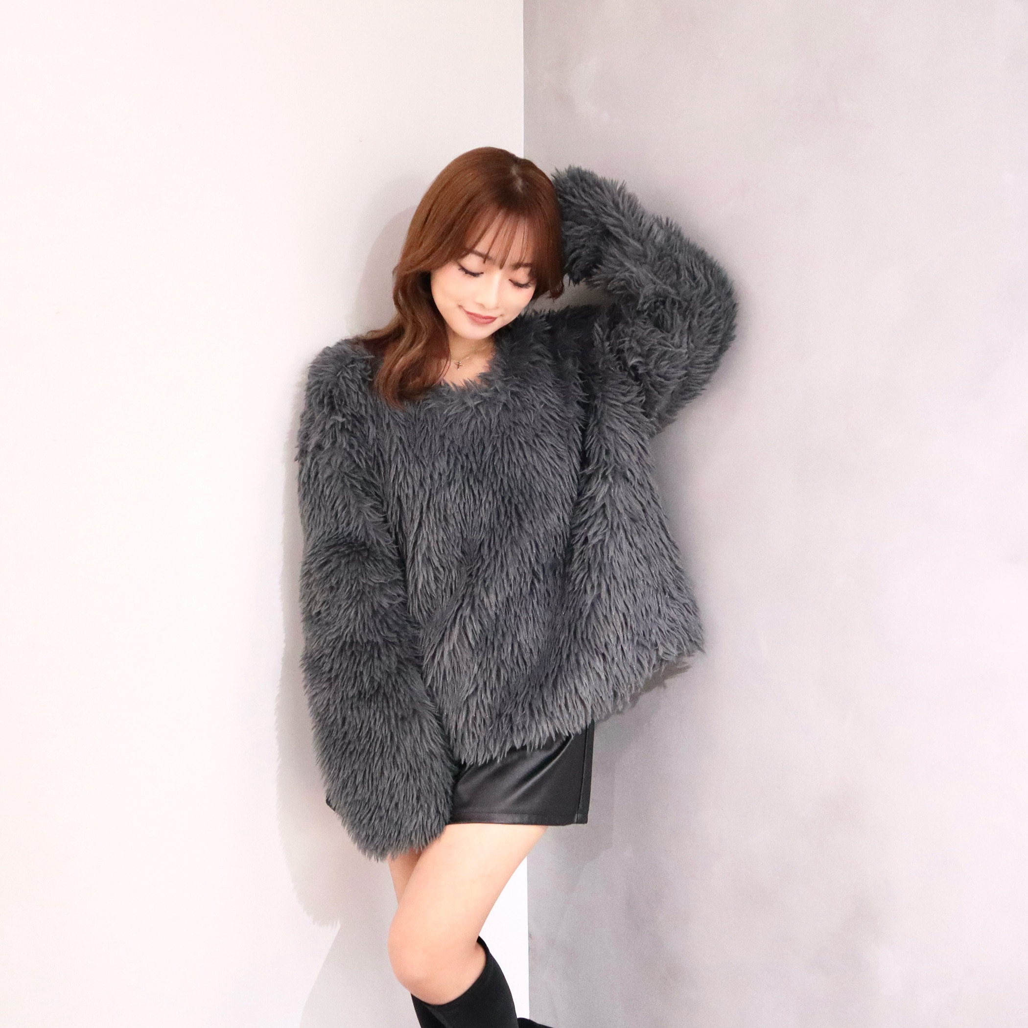 今期トレンドのフェザーファープルオーバー。少し短めの着丈なのでボトムにワイドパンツ等を合わせればスタイルアップ効果も★軽くて暖かい素材なので着心地抜群です!