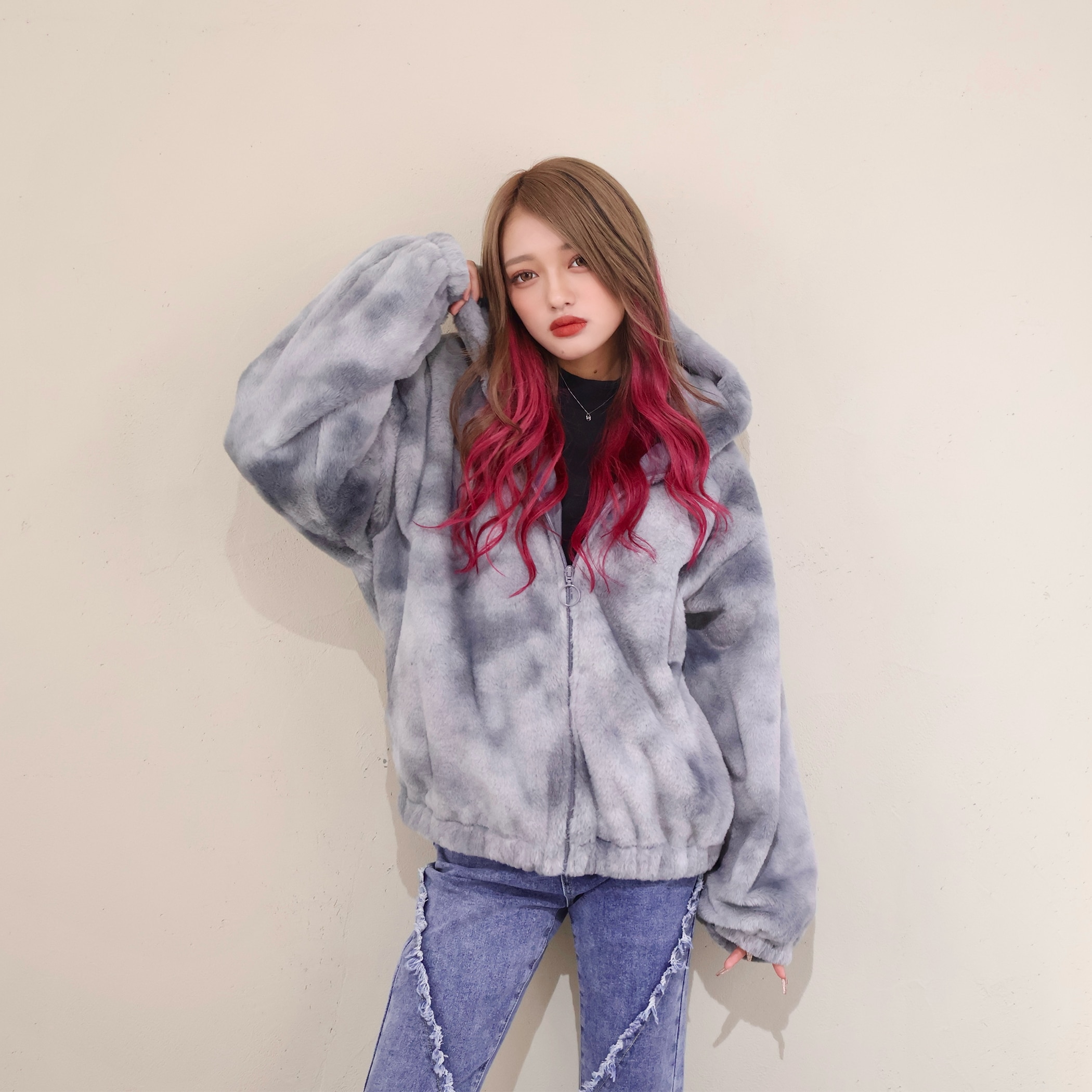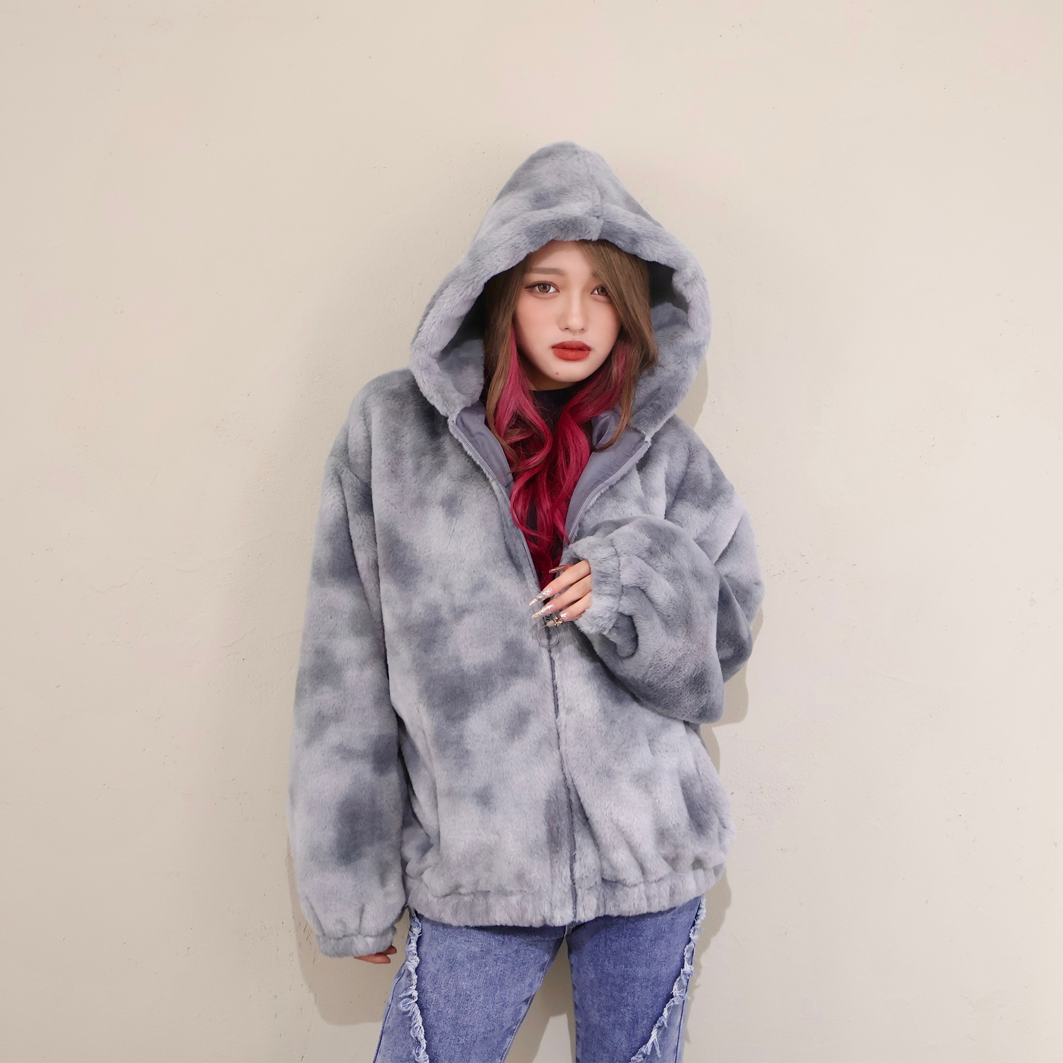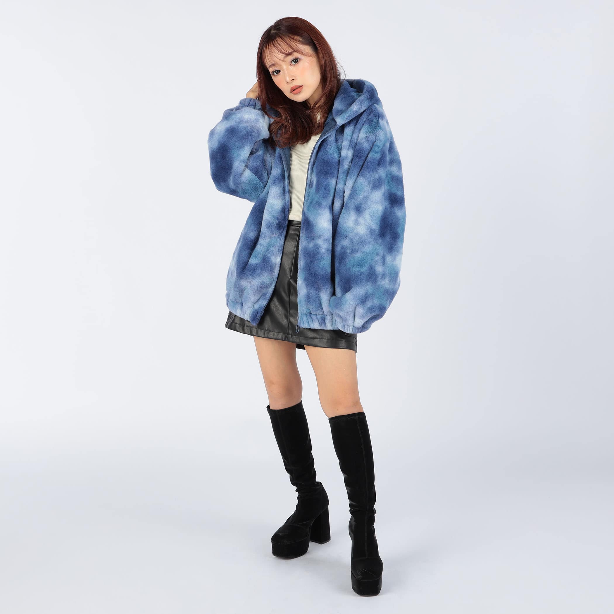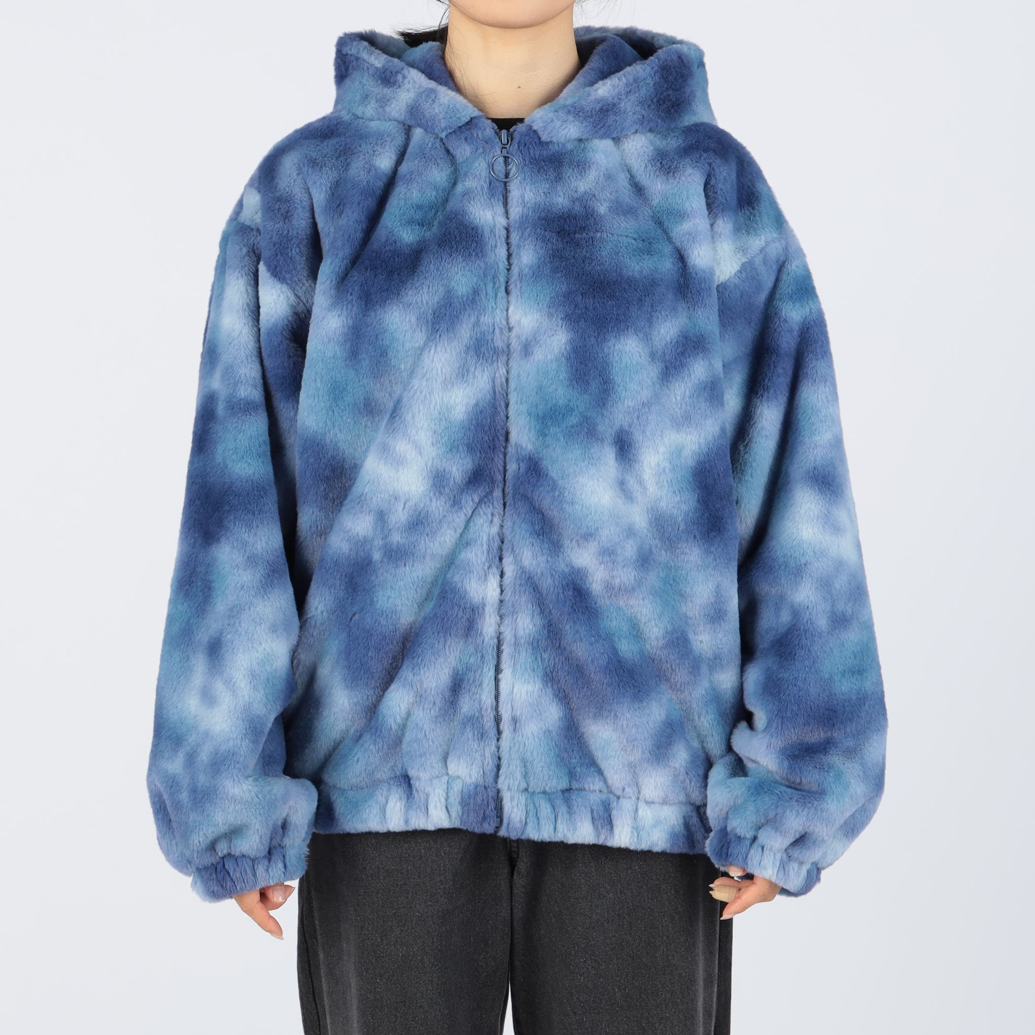 タイダイ柄フェイクファーパーカー