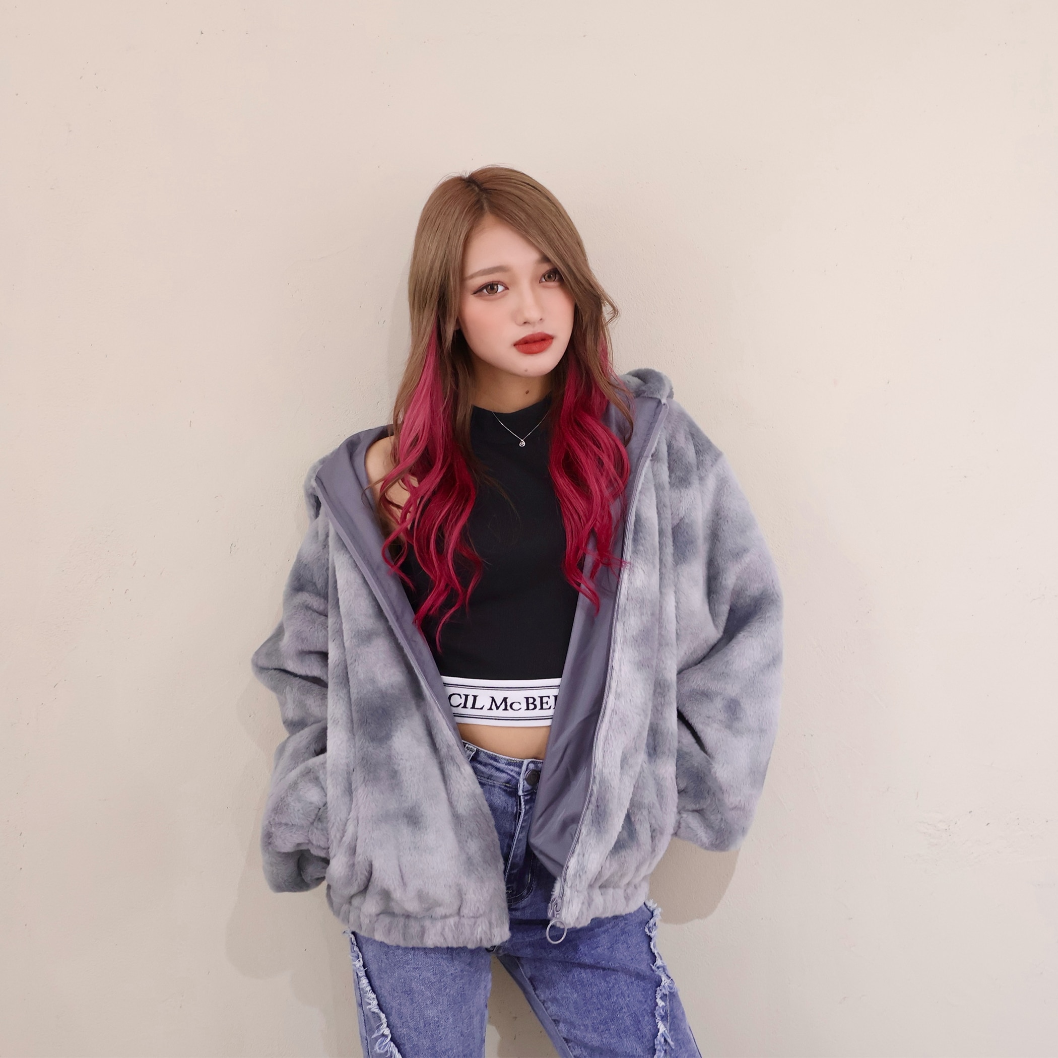 インパクト大のタイダイ風のデザインのフェイクファーブルゾン。ふわふわで手触りのよいフェイクファーで、メンズライクなカラーリングが◎。シンプルになりがちな冬のアウターをスタイリッシュにしてくれ、一枚で存在感を放つ韓国ファッション風アウターです。