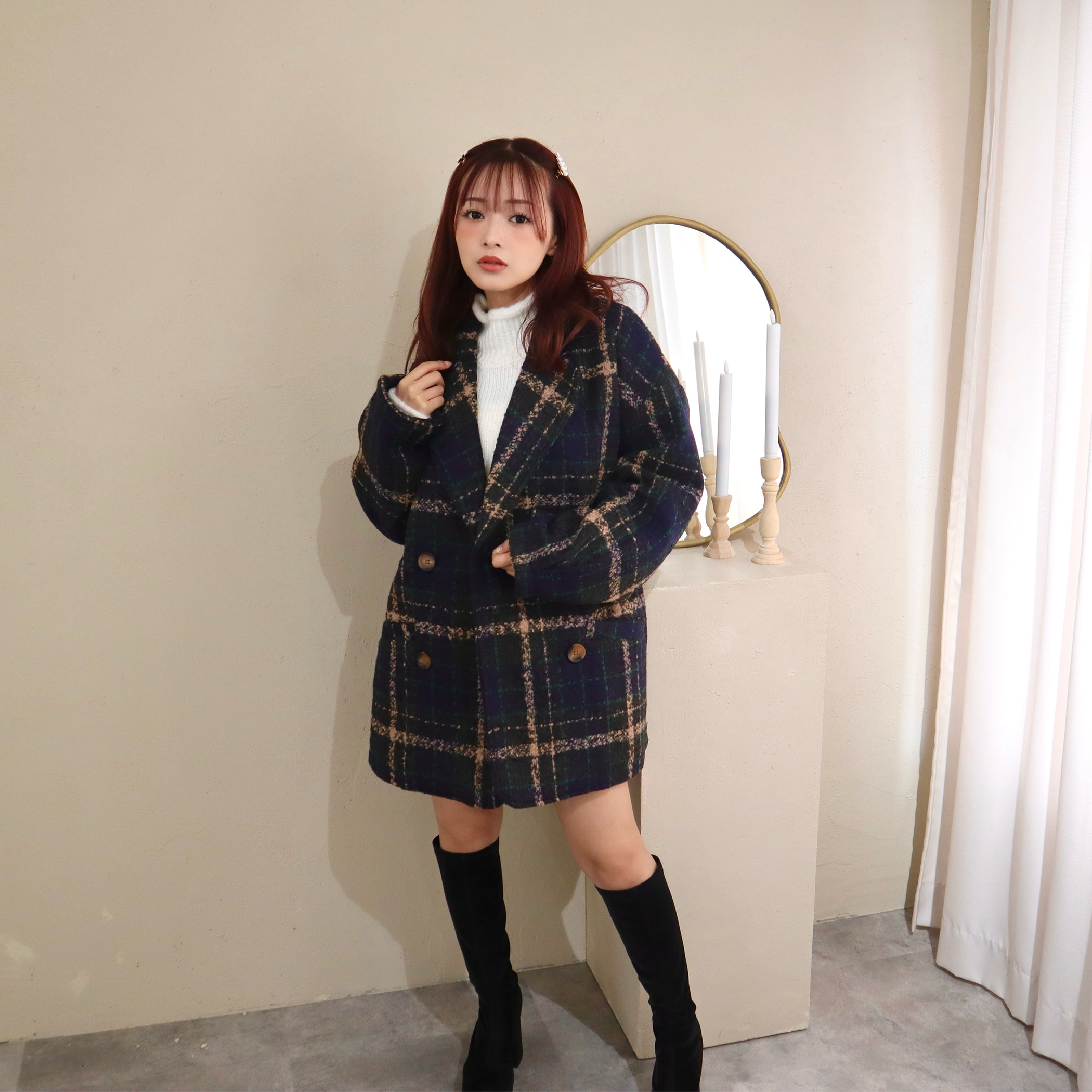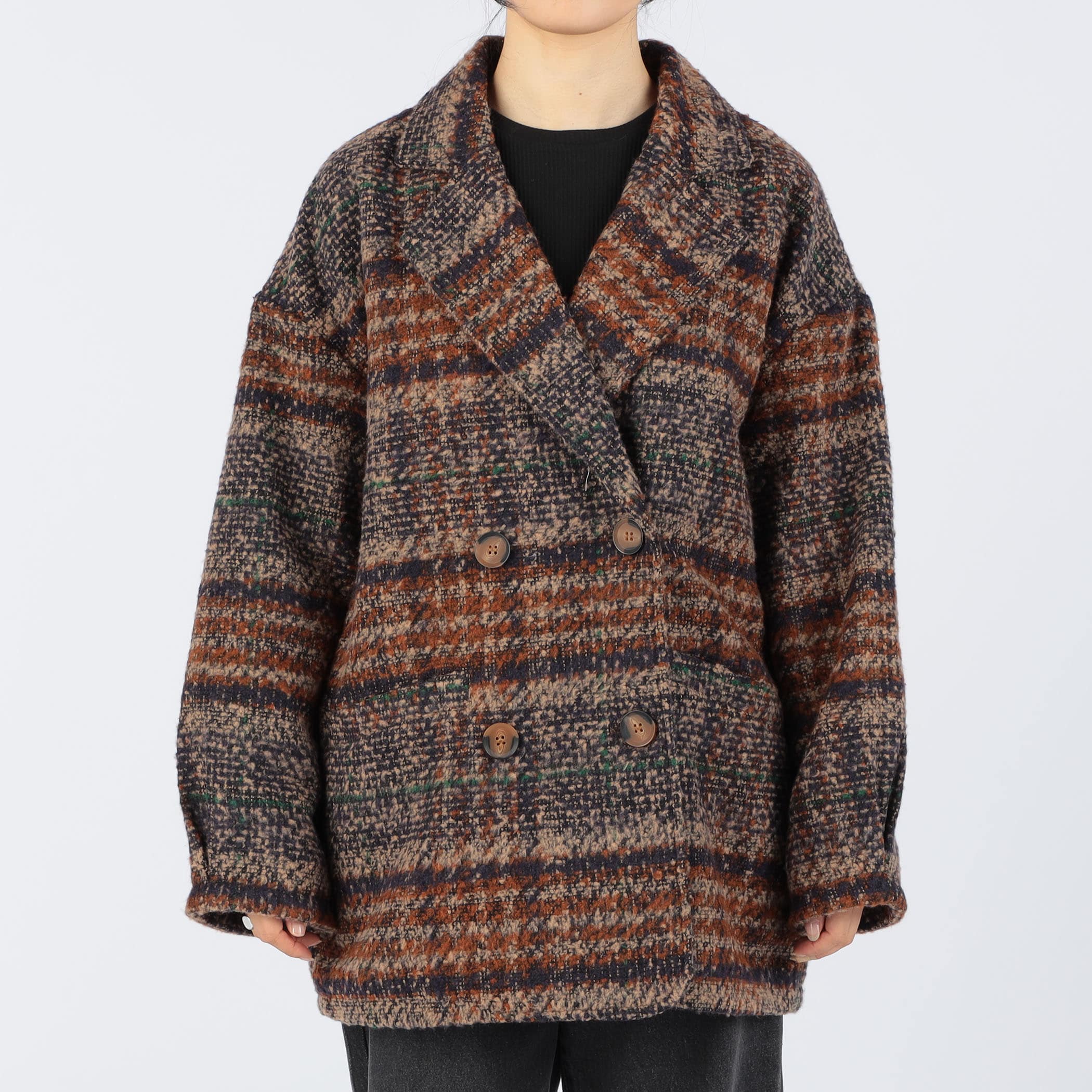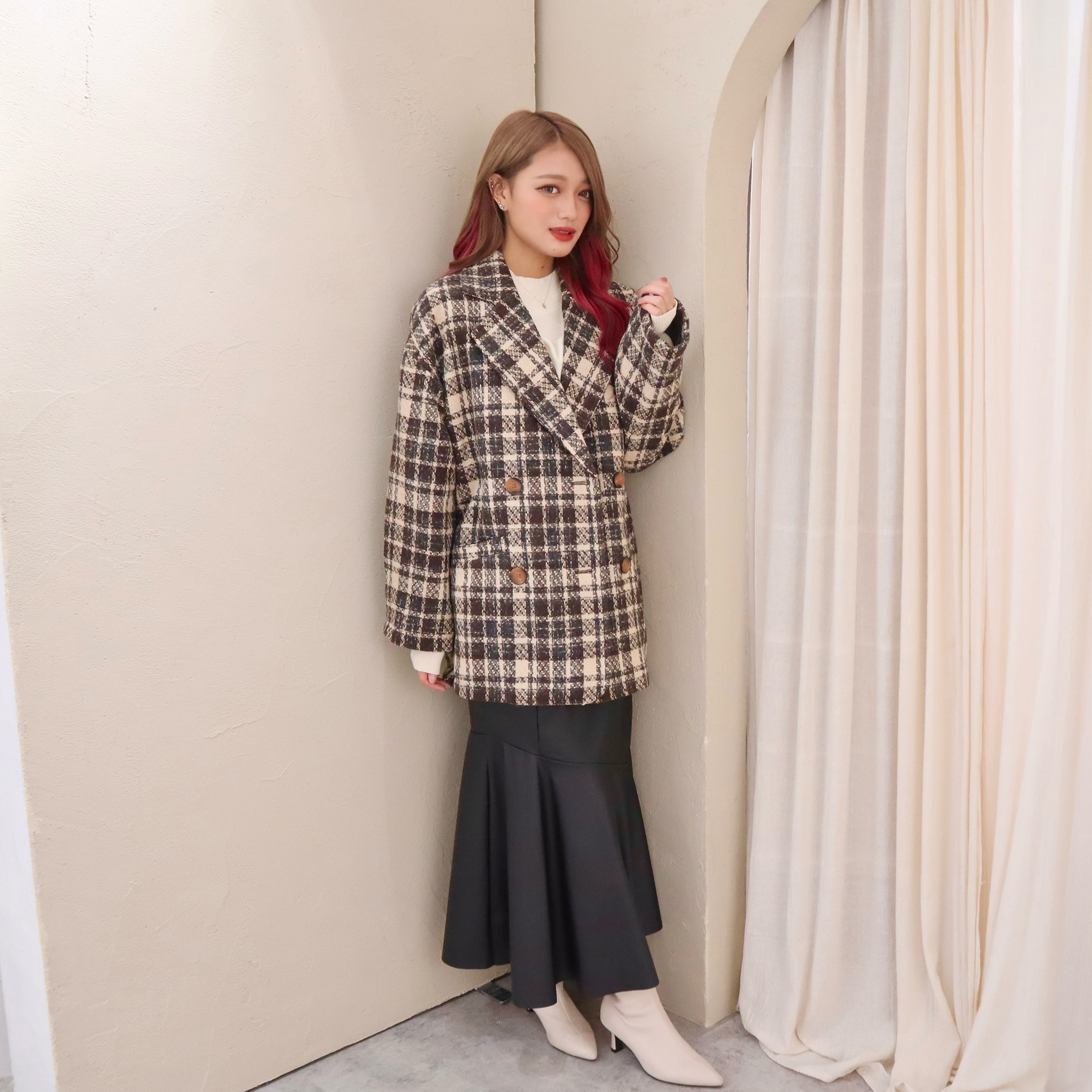 ブークレチェックダブルジャケットコート