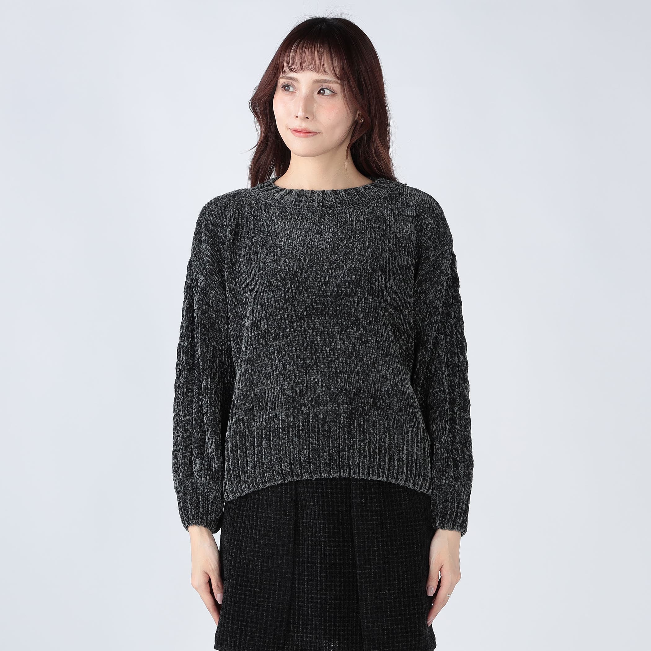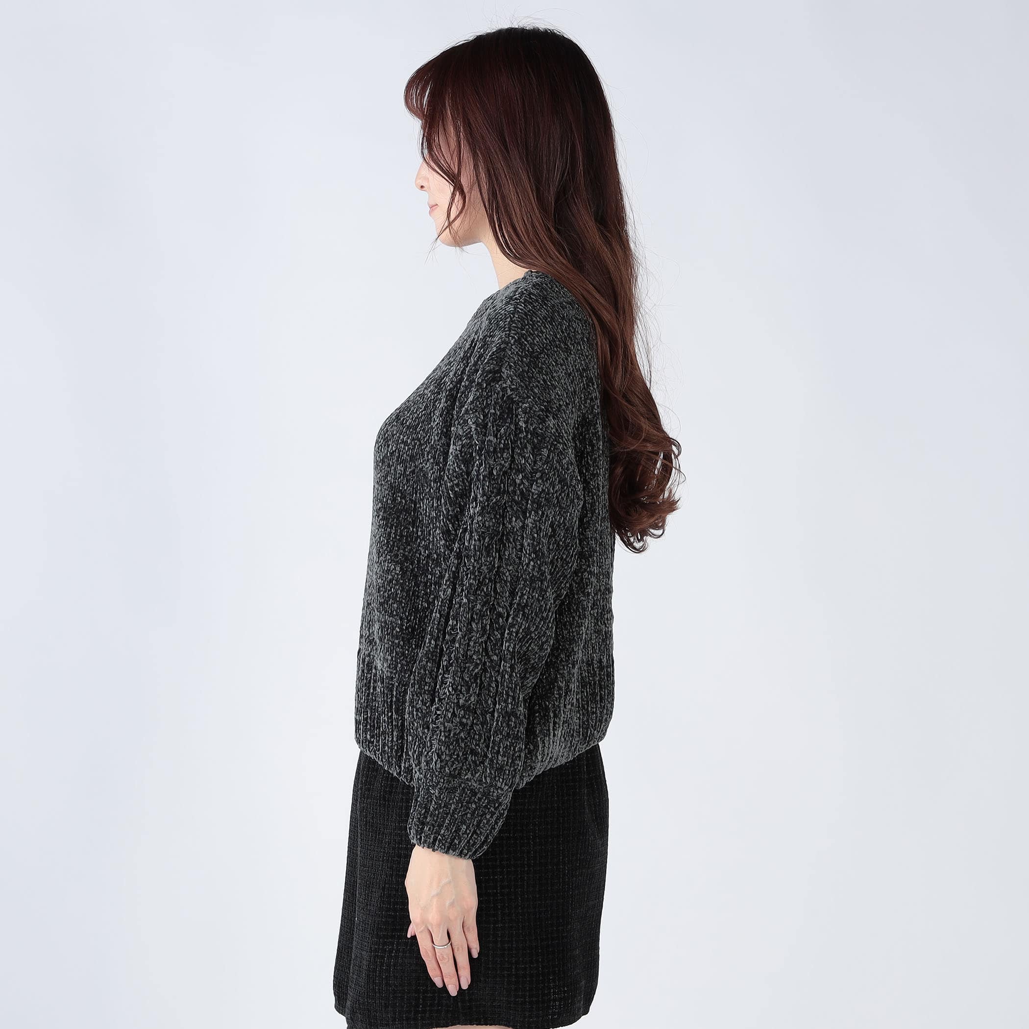 クルーネックなので、首元が開いているトップスが苦手な方や、防寒対策にもおすすめ。デニムと合わせたカジュアルコーデはもちろん、ミニボトムと合わせたカジュアルガーリーなコーデも◎