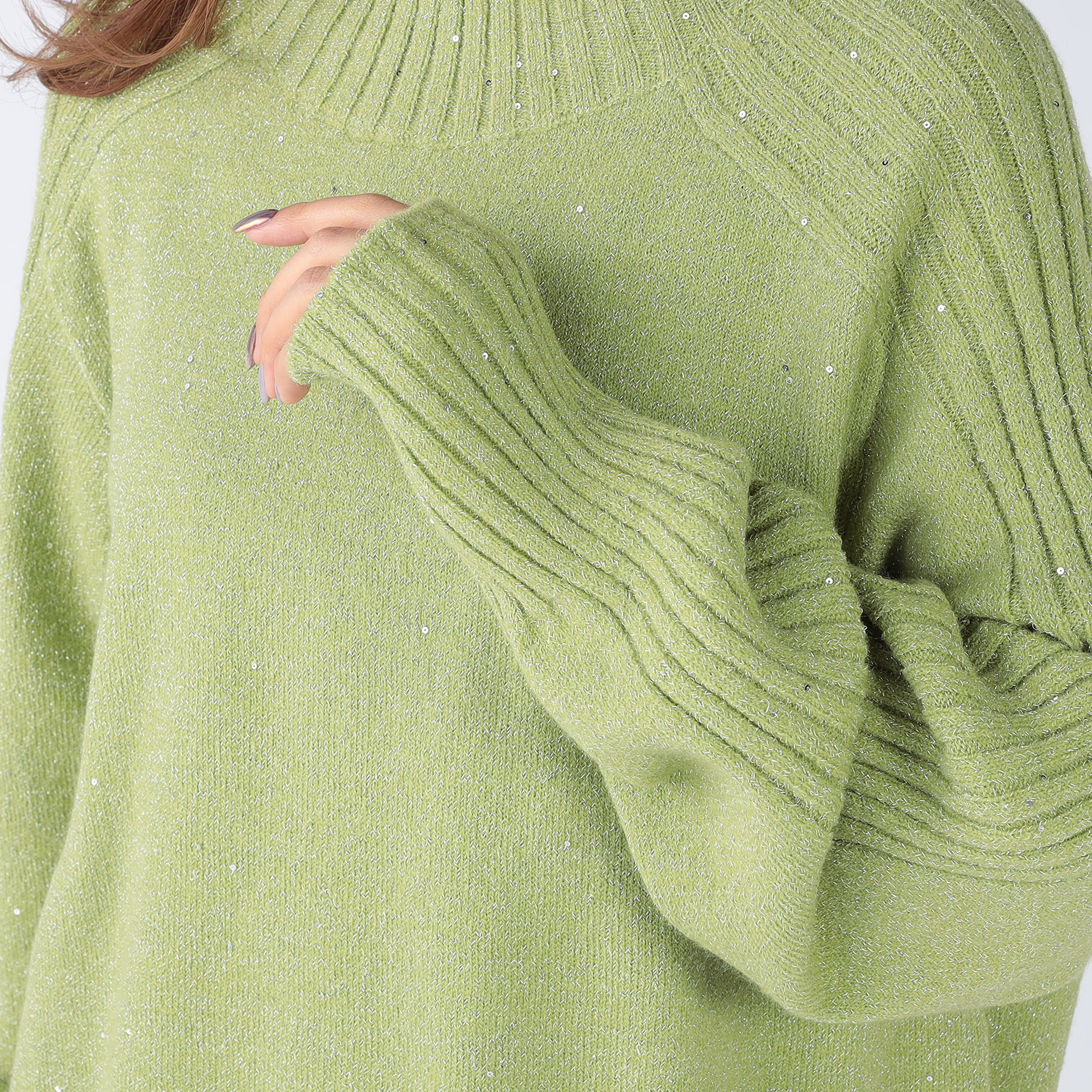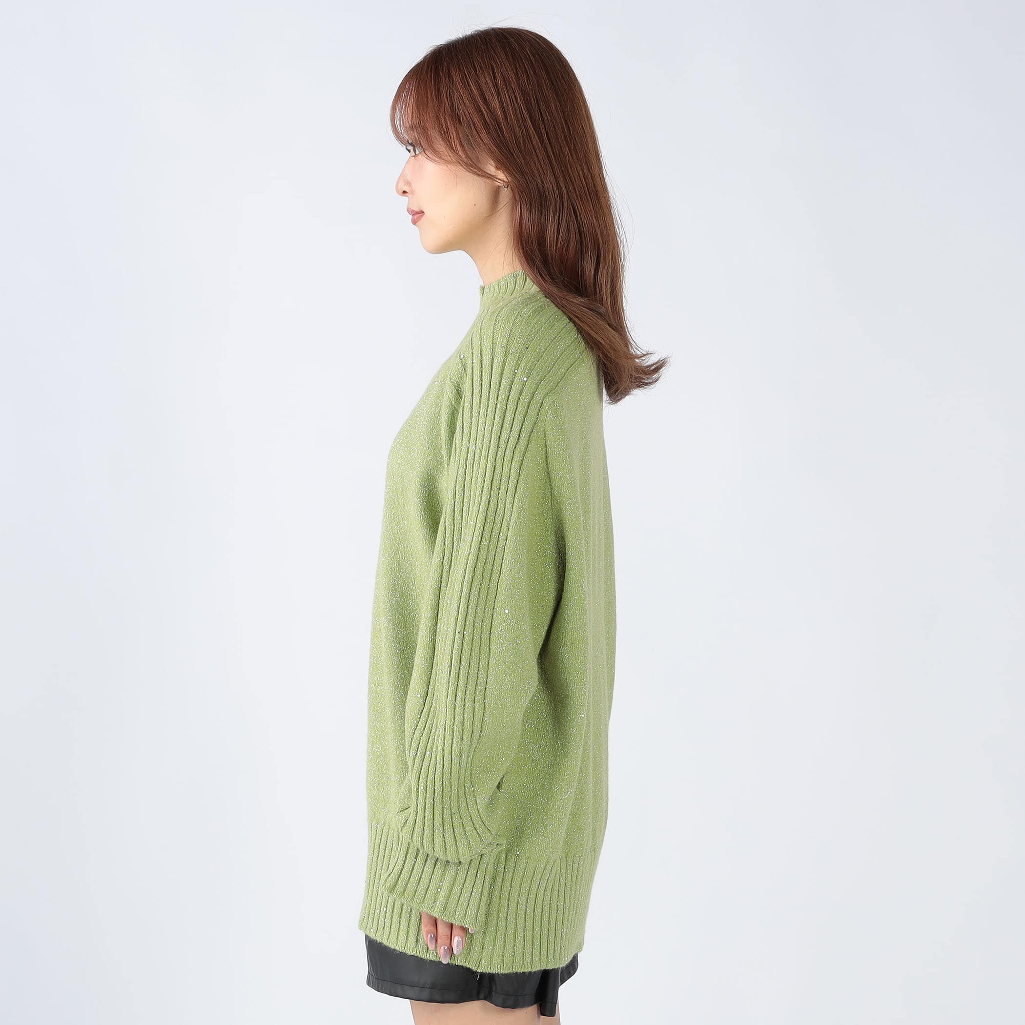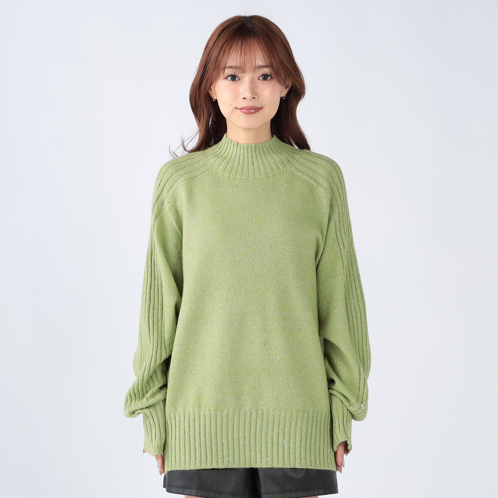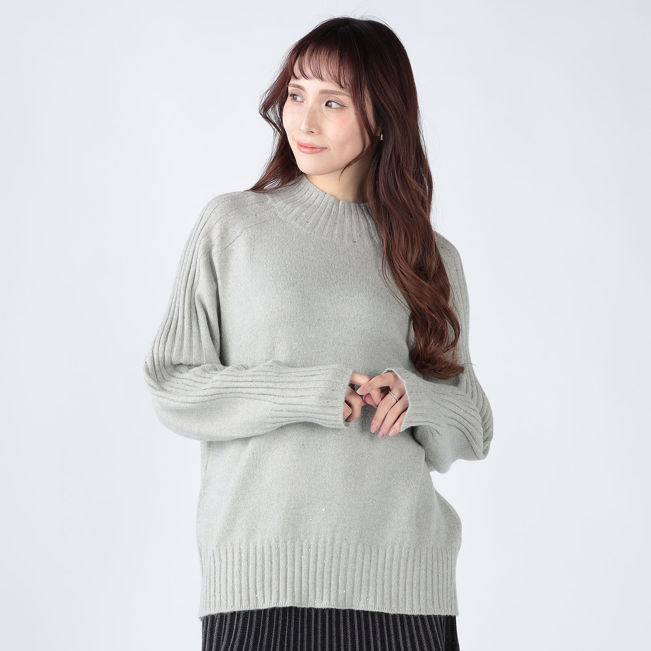 昨年も好評だったスパンコールニットが登場。散りばめられたスパンコールとラメ糸が装いを華やかに演出します。 少し高さを持たせたハイネックデザインで、上品かつ大人っぽい印象を与えてくれます。 デイリーのカジュアルスタイルもさりげなくブラッシュアップしてくれるアイテムです。