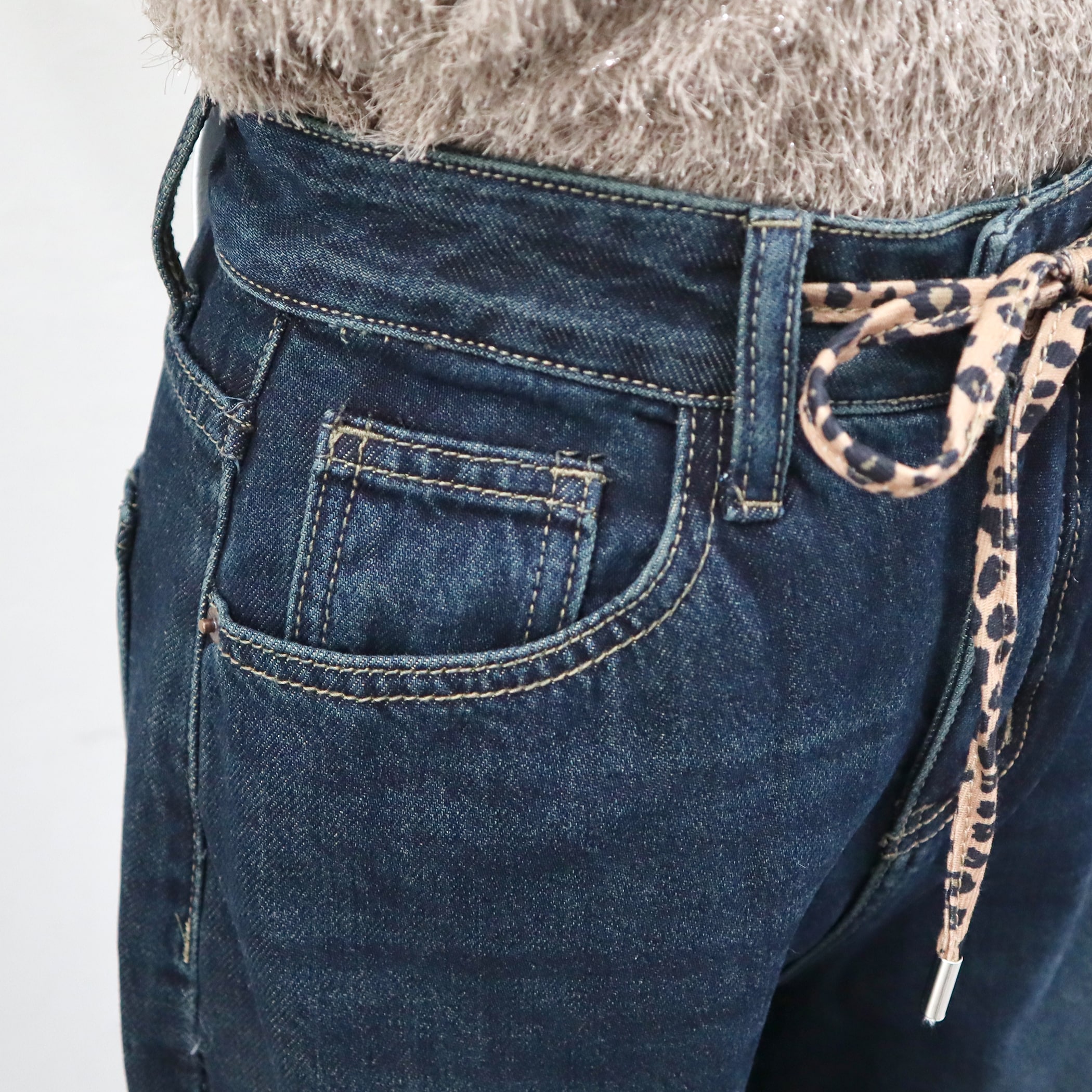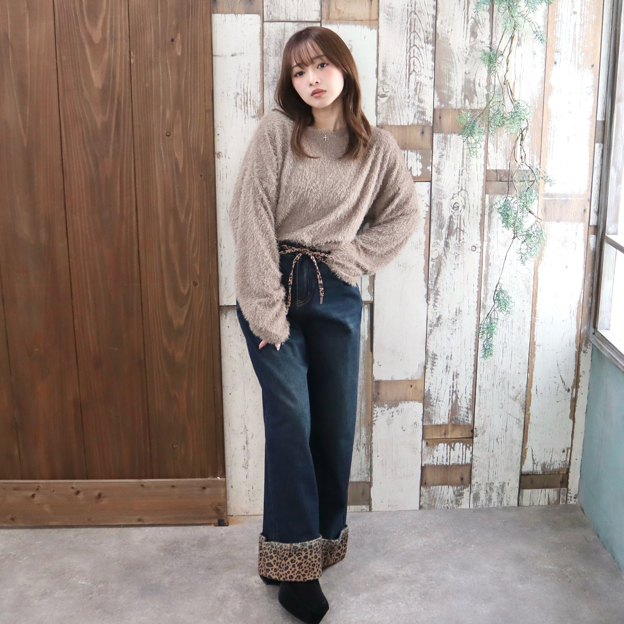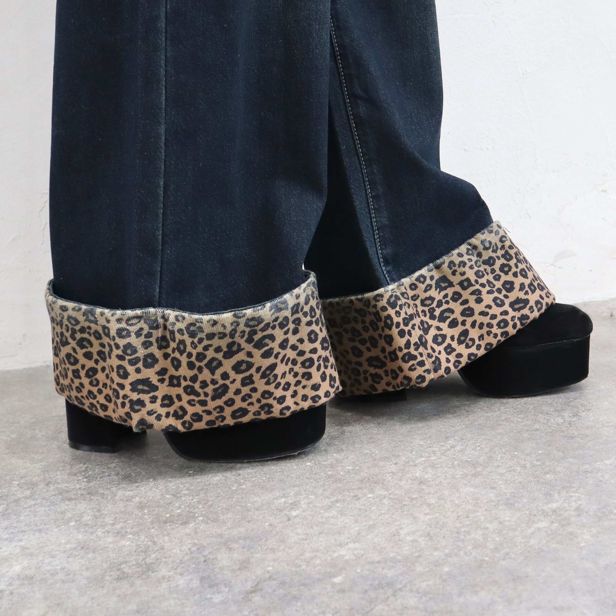 秋冬トレンドのレオパード柄がロールアップ部分に切り替えられたデニムパンツ。一枚持ってるだけでトレンドコーデが完成します。ルーズシルエットとローライズデザインでクロップド丈のトップスはもちろんのことスウェットやビッグTなどとも相性抜群。Y2Kファッション、ストリートコーデカジュアルスタイルなど様々なファッションジャンルで活躍します。