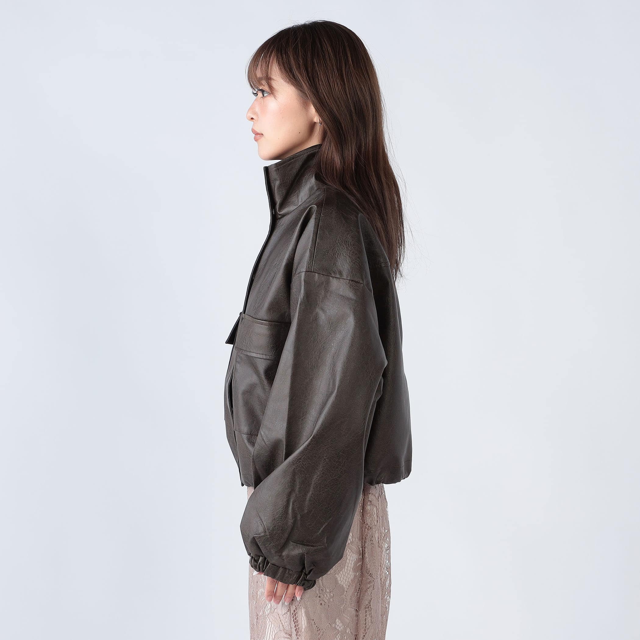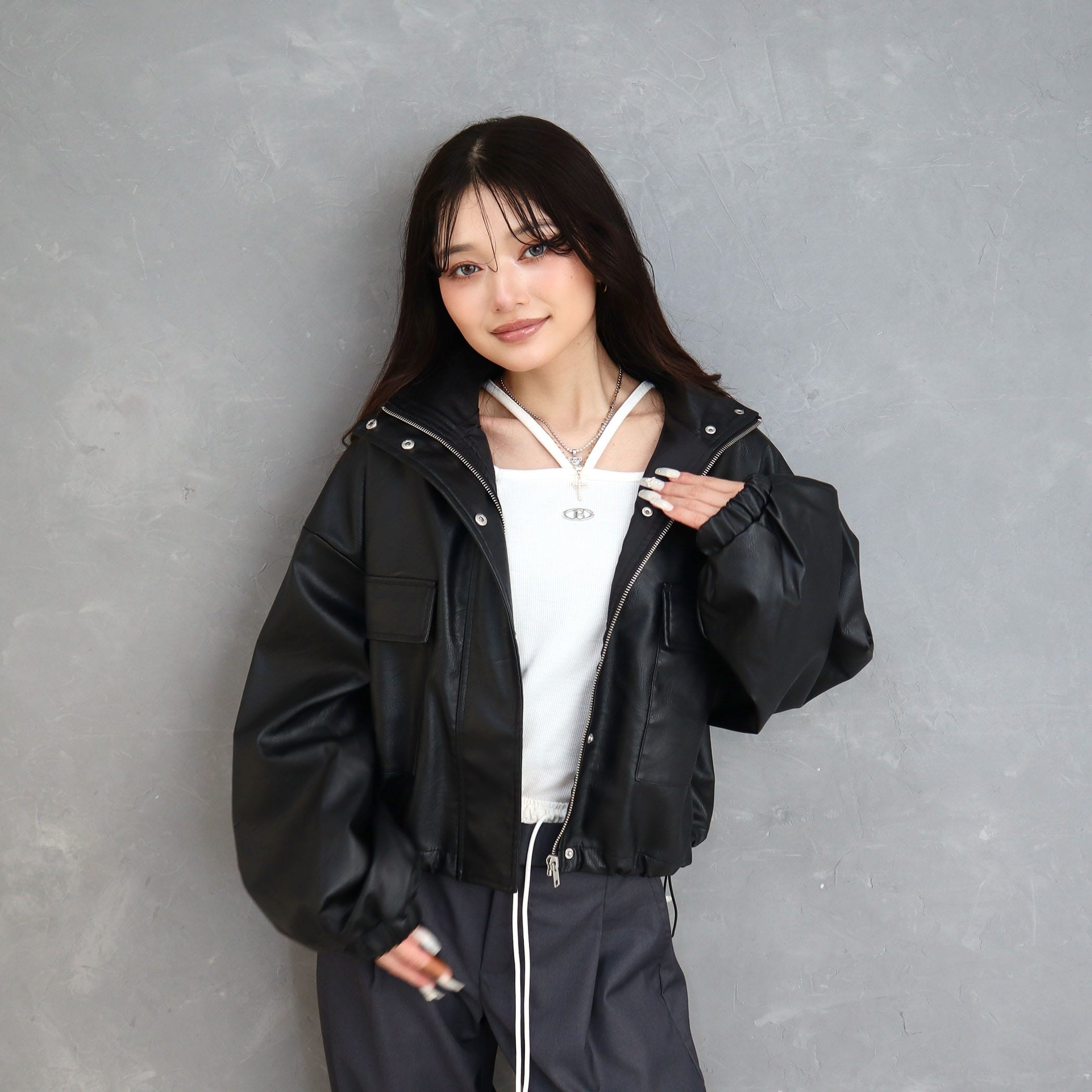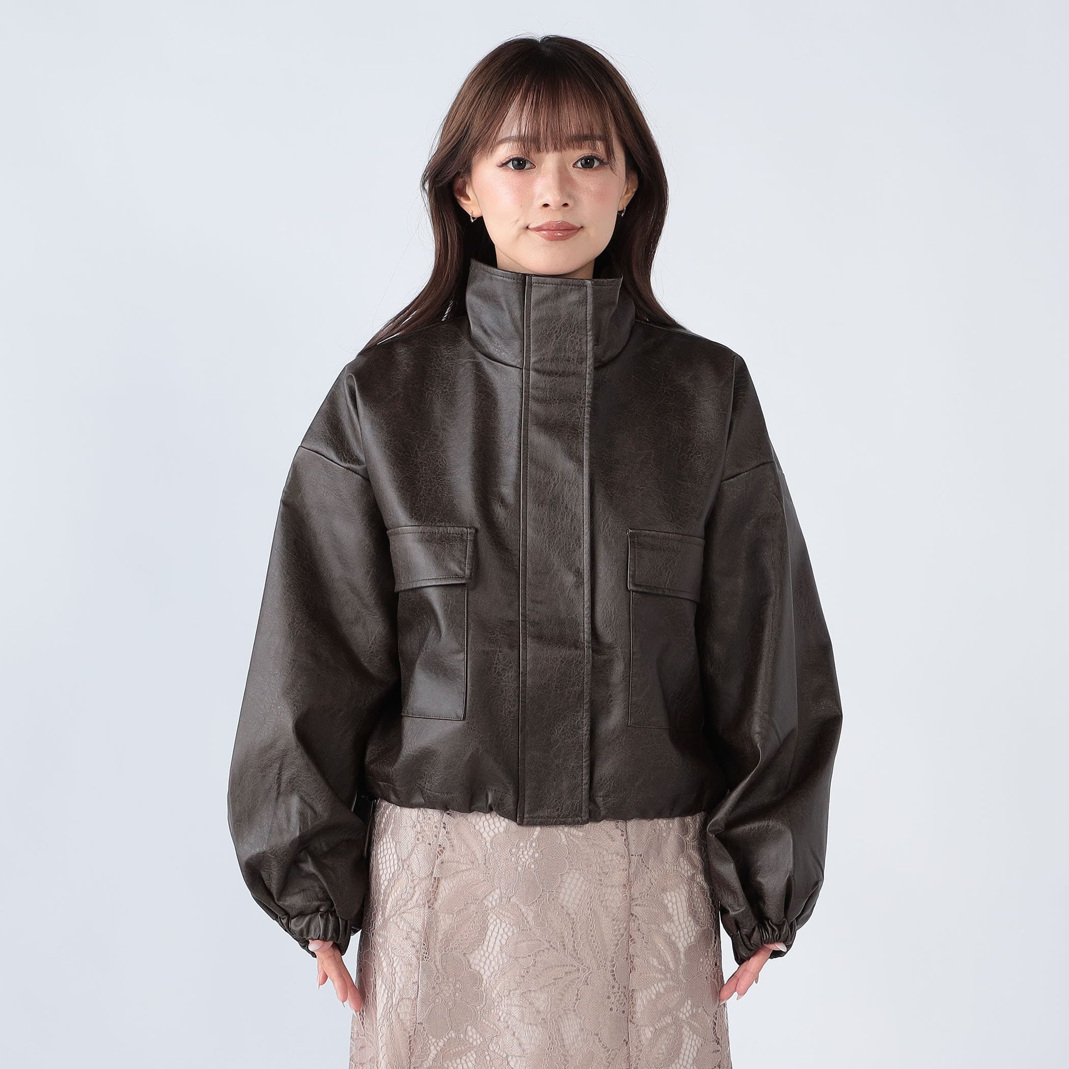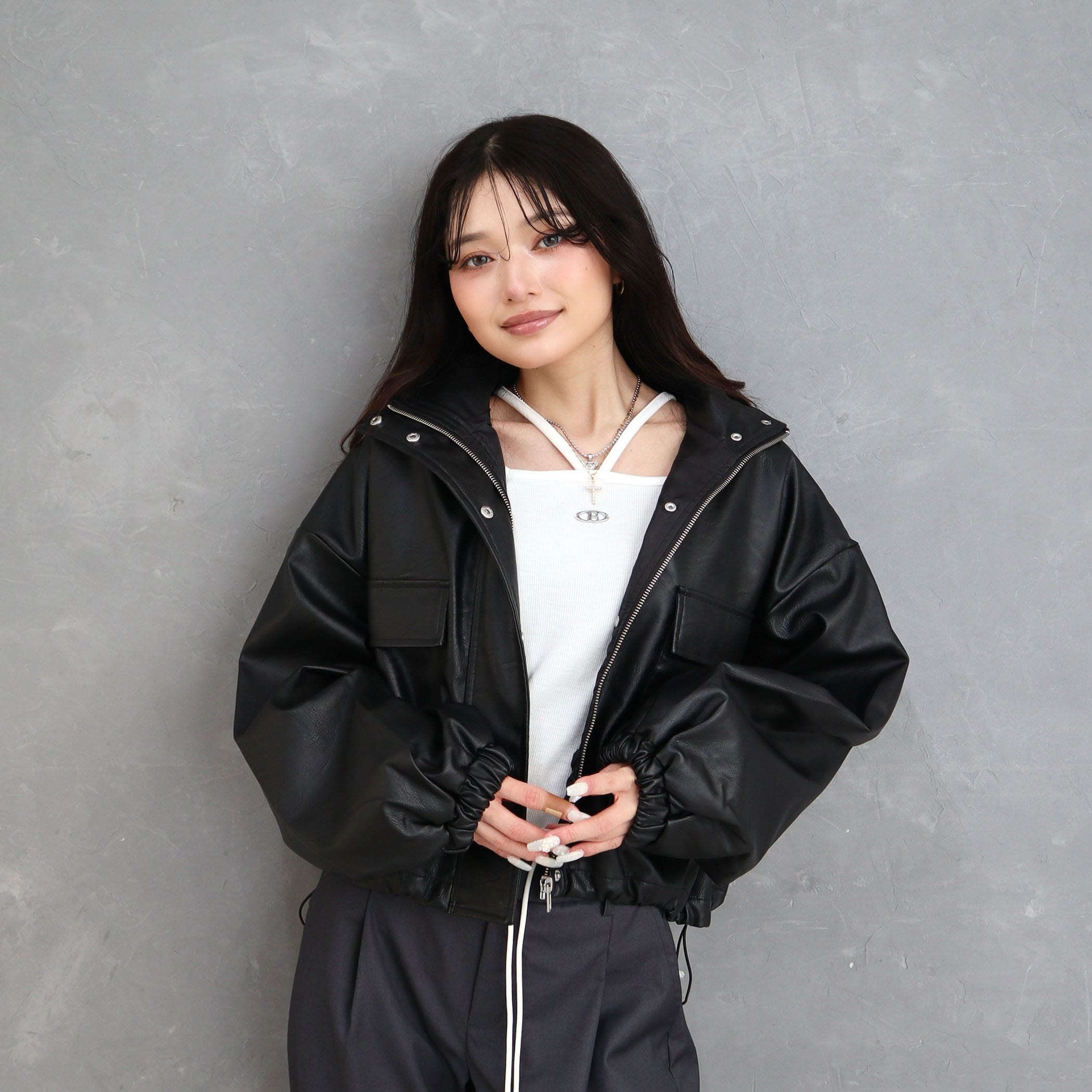 トレンドのスタンドカラーがポイントのフェイクレザーブルゾン。裾は裾巾を調節出来るドロストデザイン。裏地もついているのでしっかり防寒対策も出来ます。カッコいいイメージのフェイクレザーですが、ボトムにスカートを合わせた可愛いスタイリングにも使える1着です★