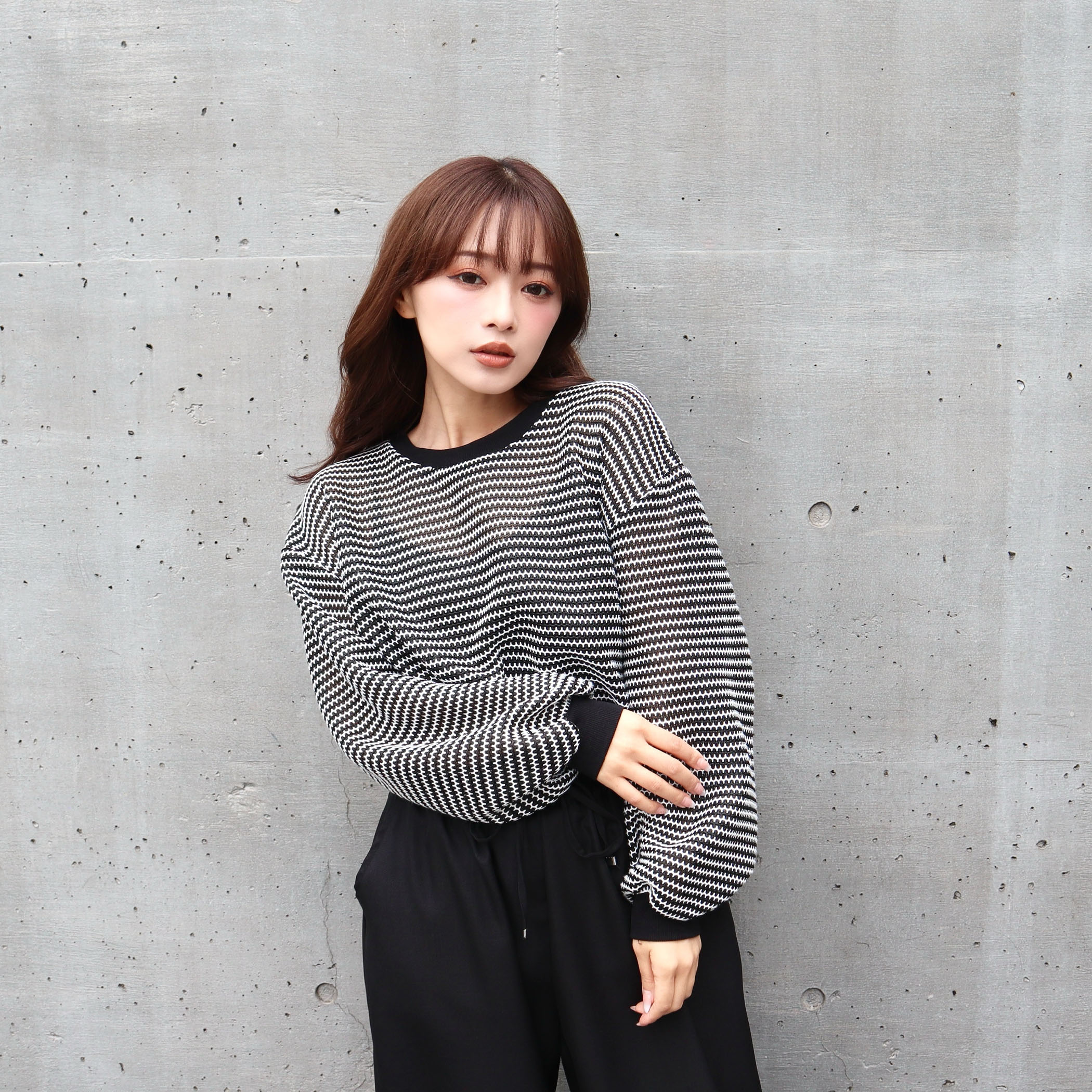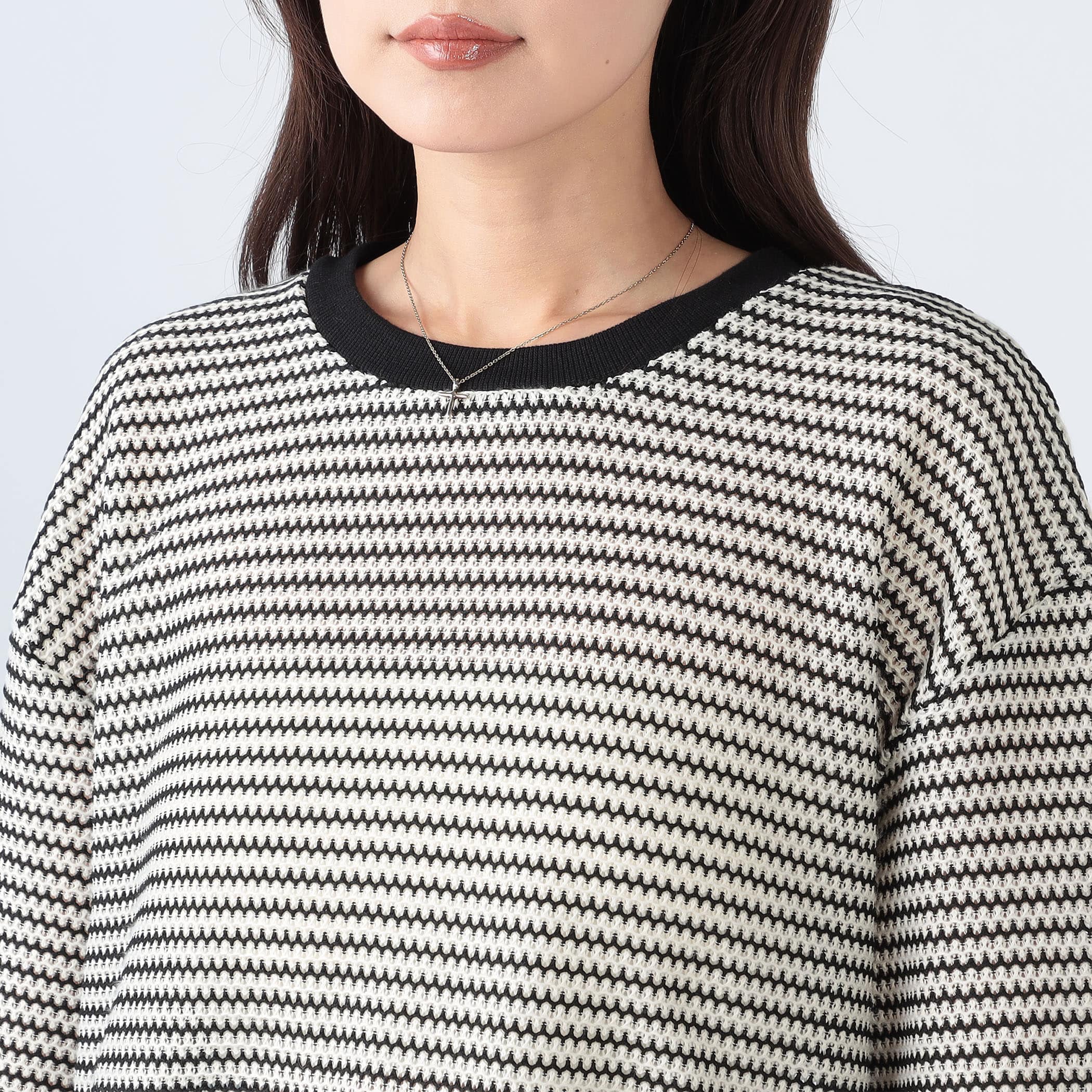 かぎ針風ボーダーゆるシルエットプルオーバー