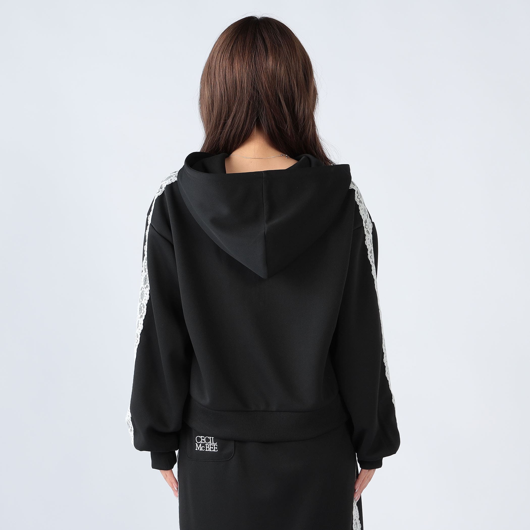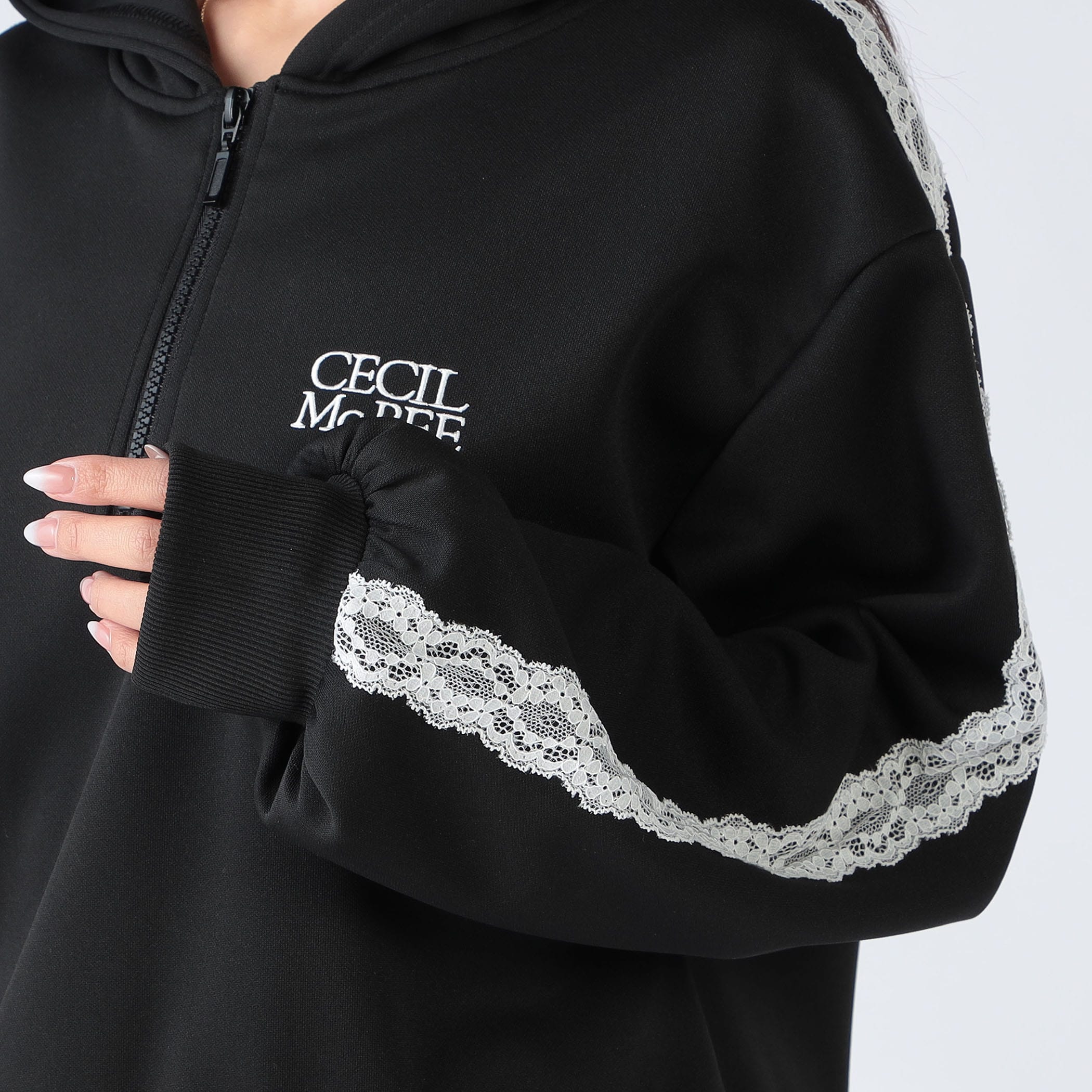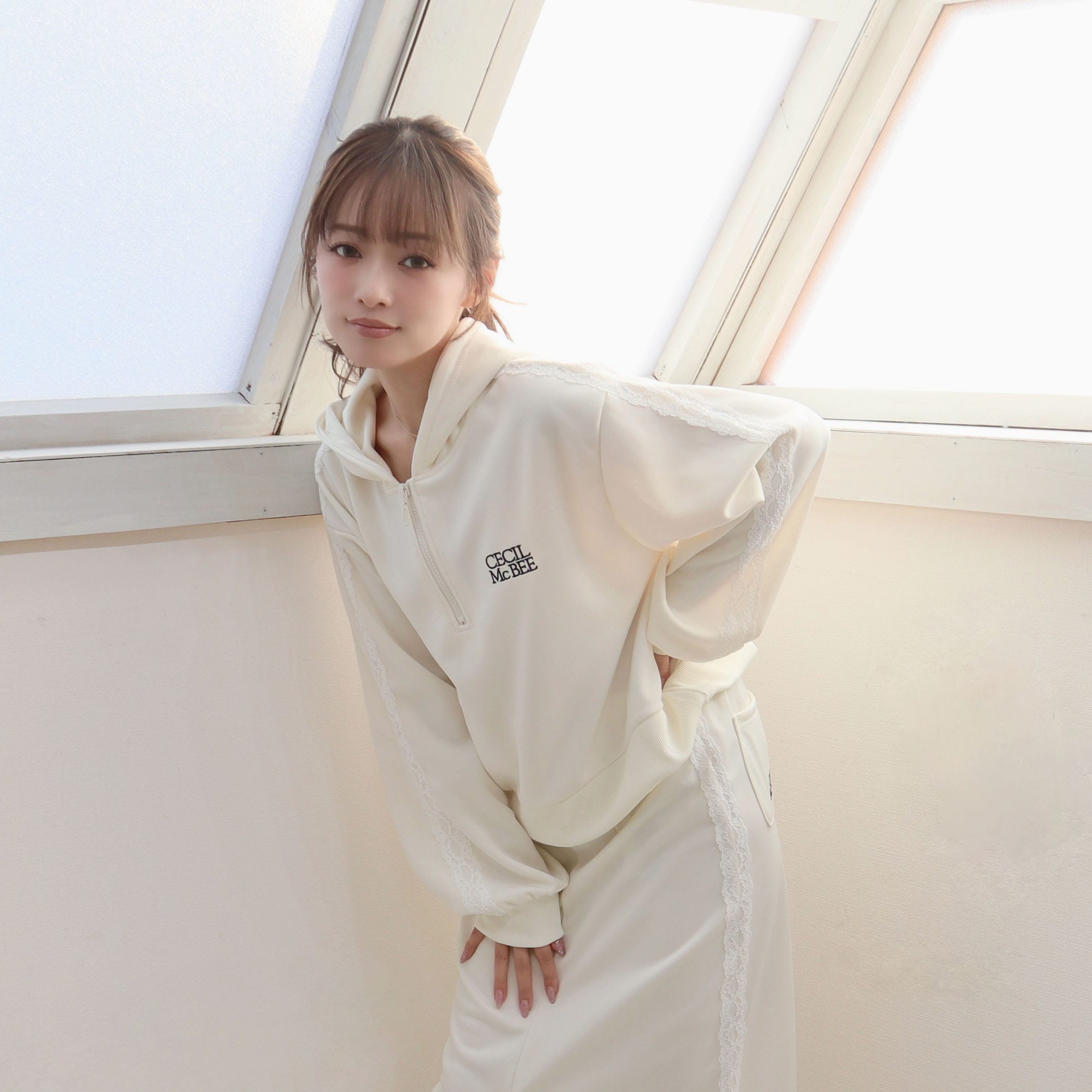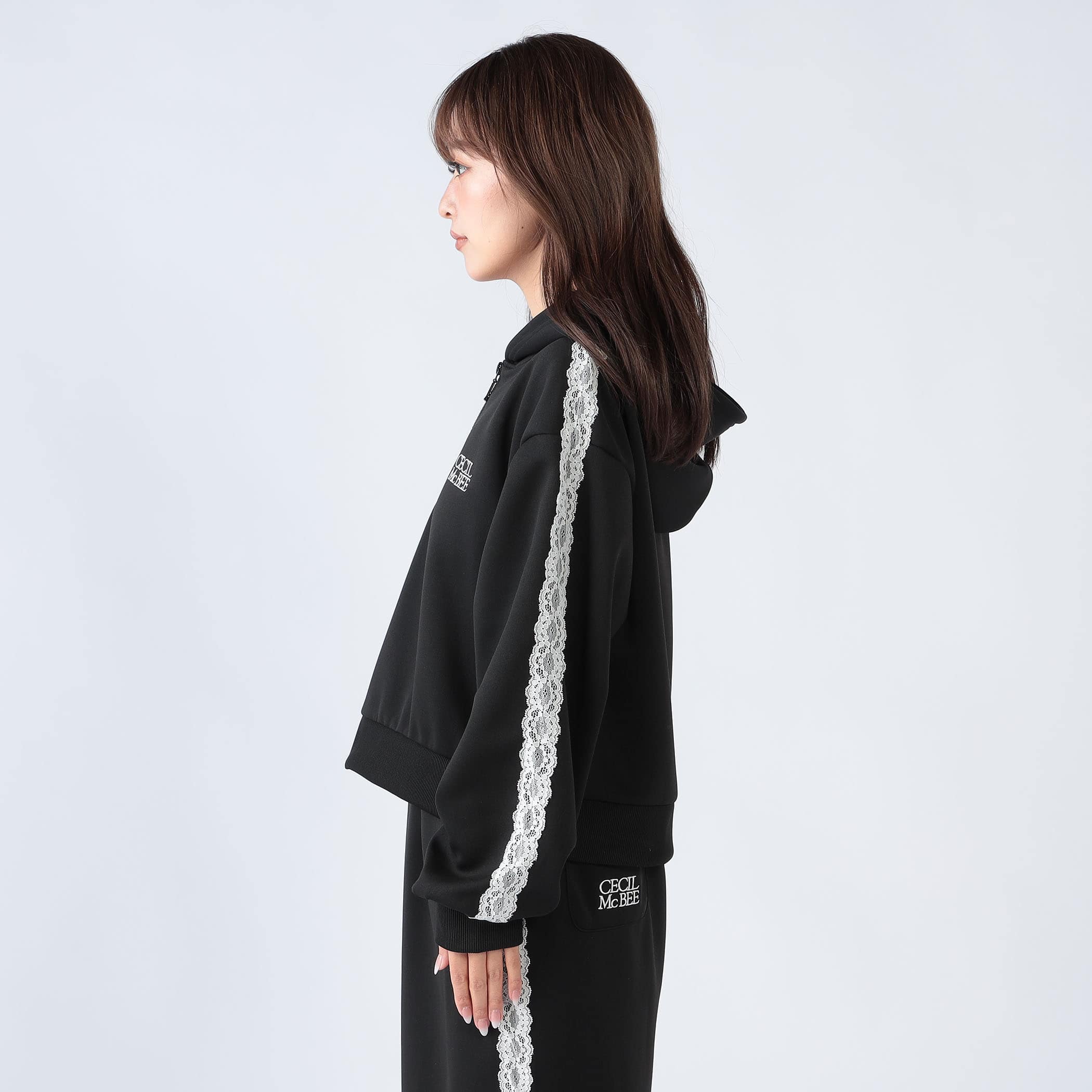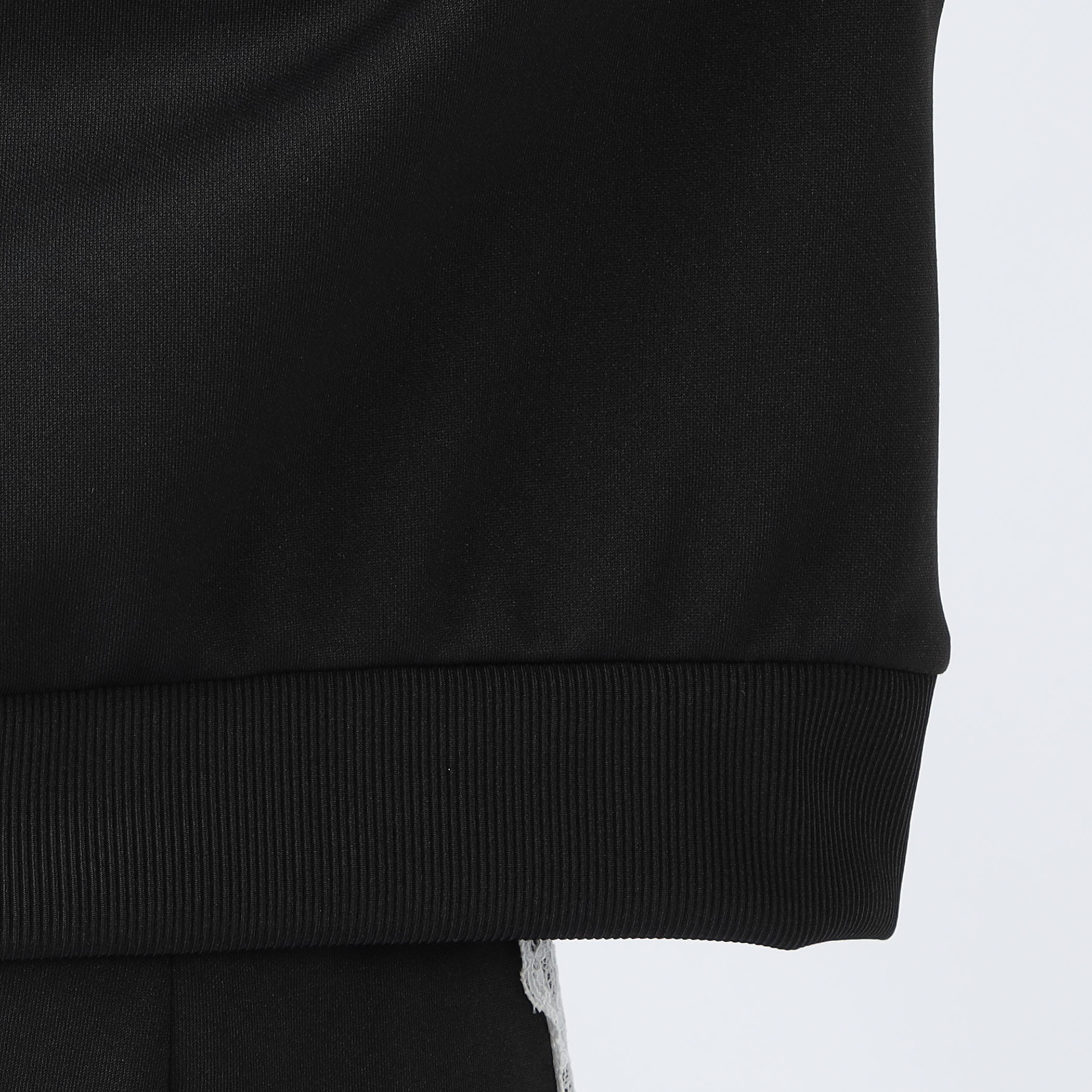 袖のレーステープが可愛いハーフジッププルオーバー。ジャージ素材なので伸縮性があり着心地抜群です★左胸のブランドロゴ刺繍がコーディネートのアクセントに◎短めの身丈でスタイルアップ効果も…!
