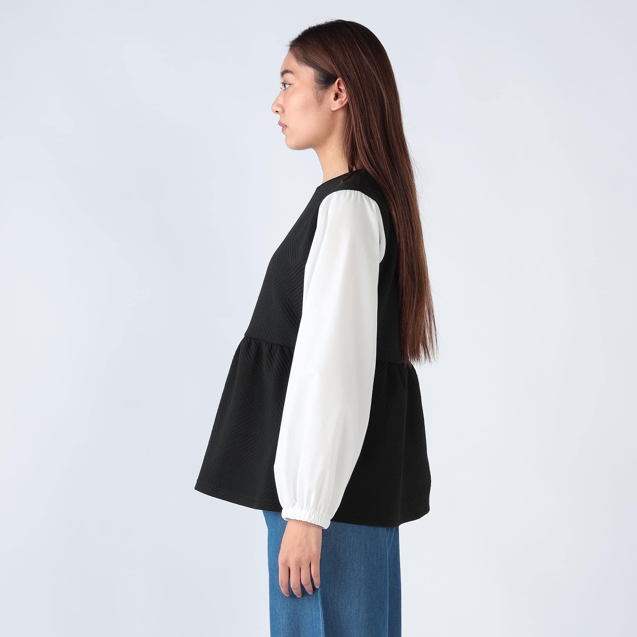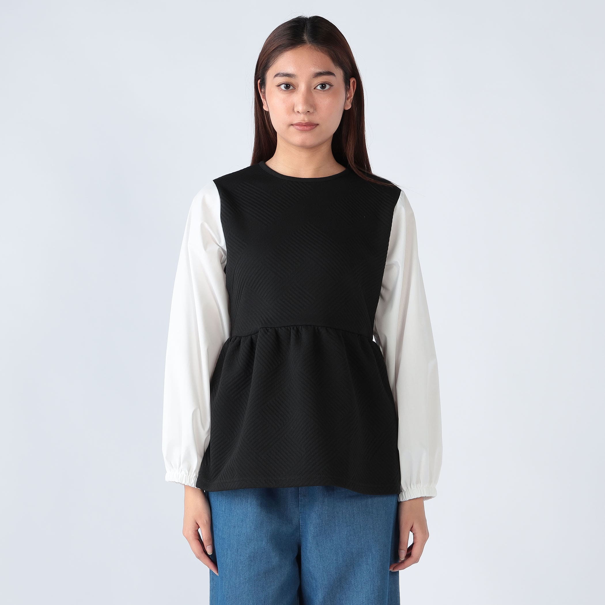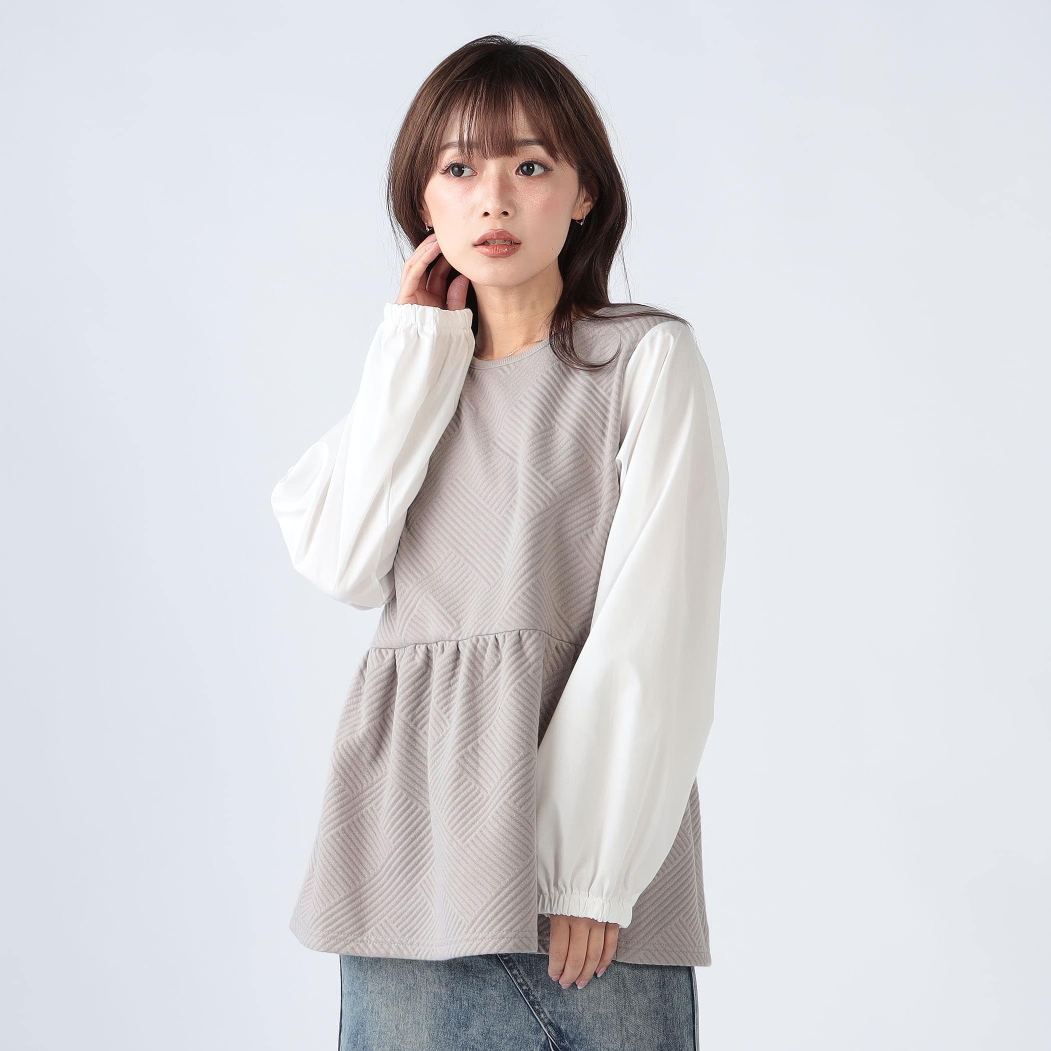 ふくれジャガード異素材切替ペプラムプルオーバー