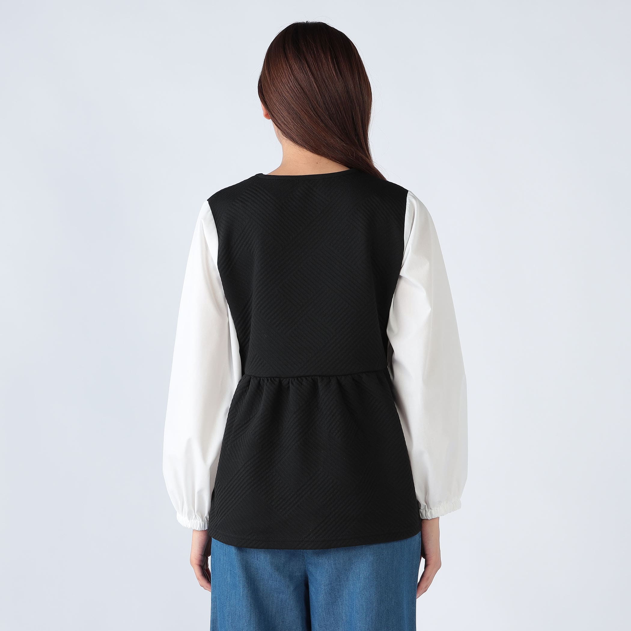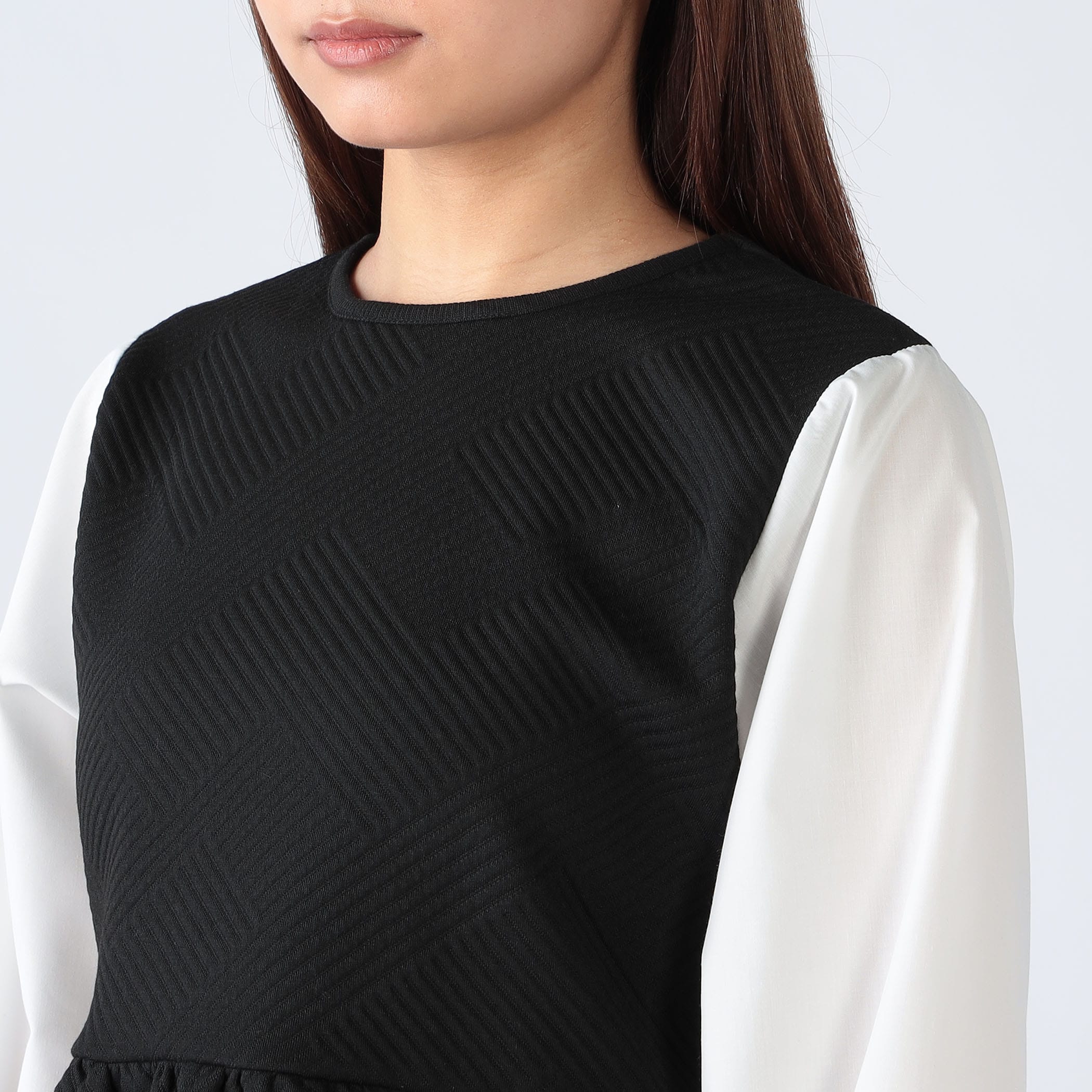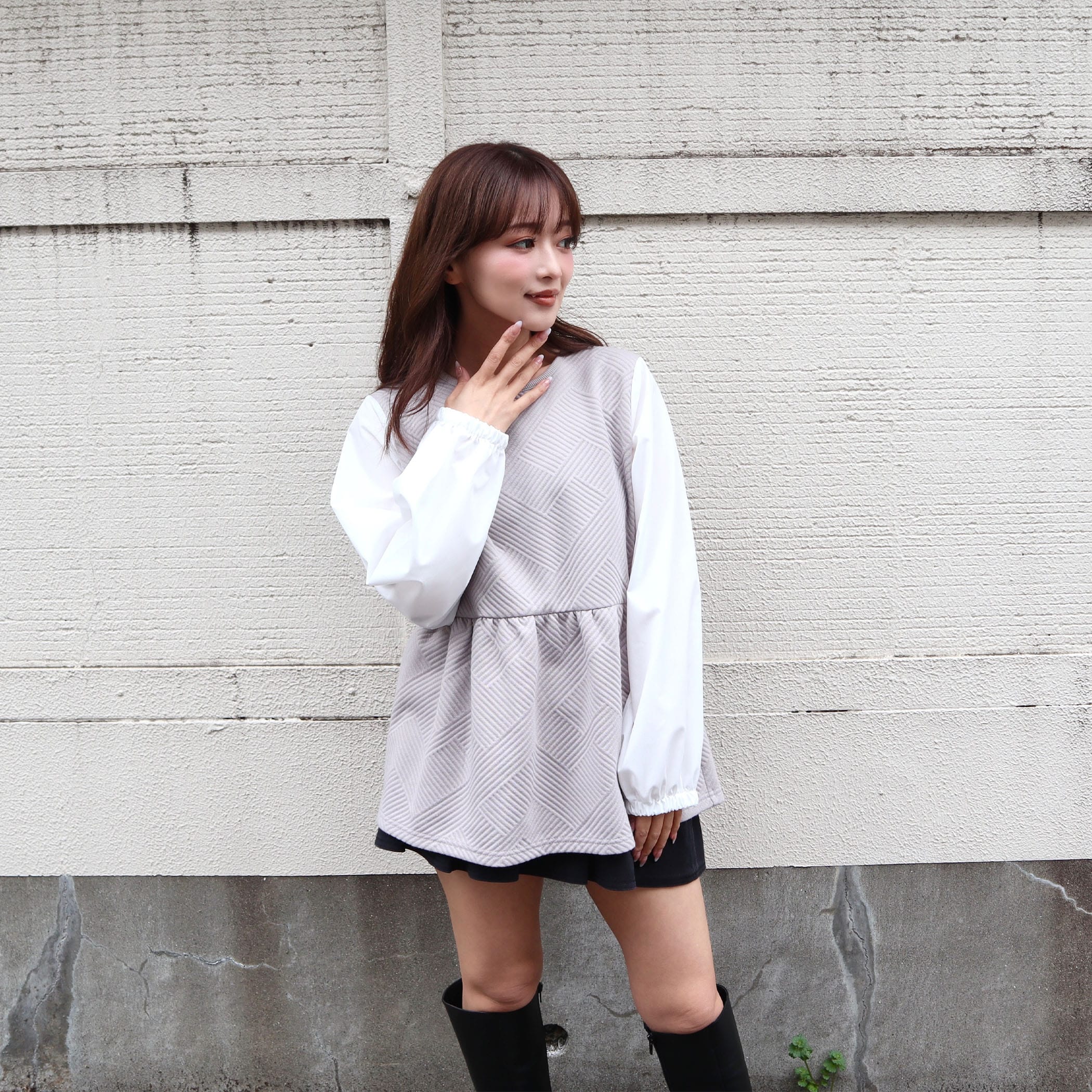 ふくれジャガード異素材切替ペプラムプルオーバー
