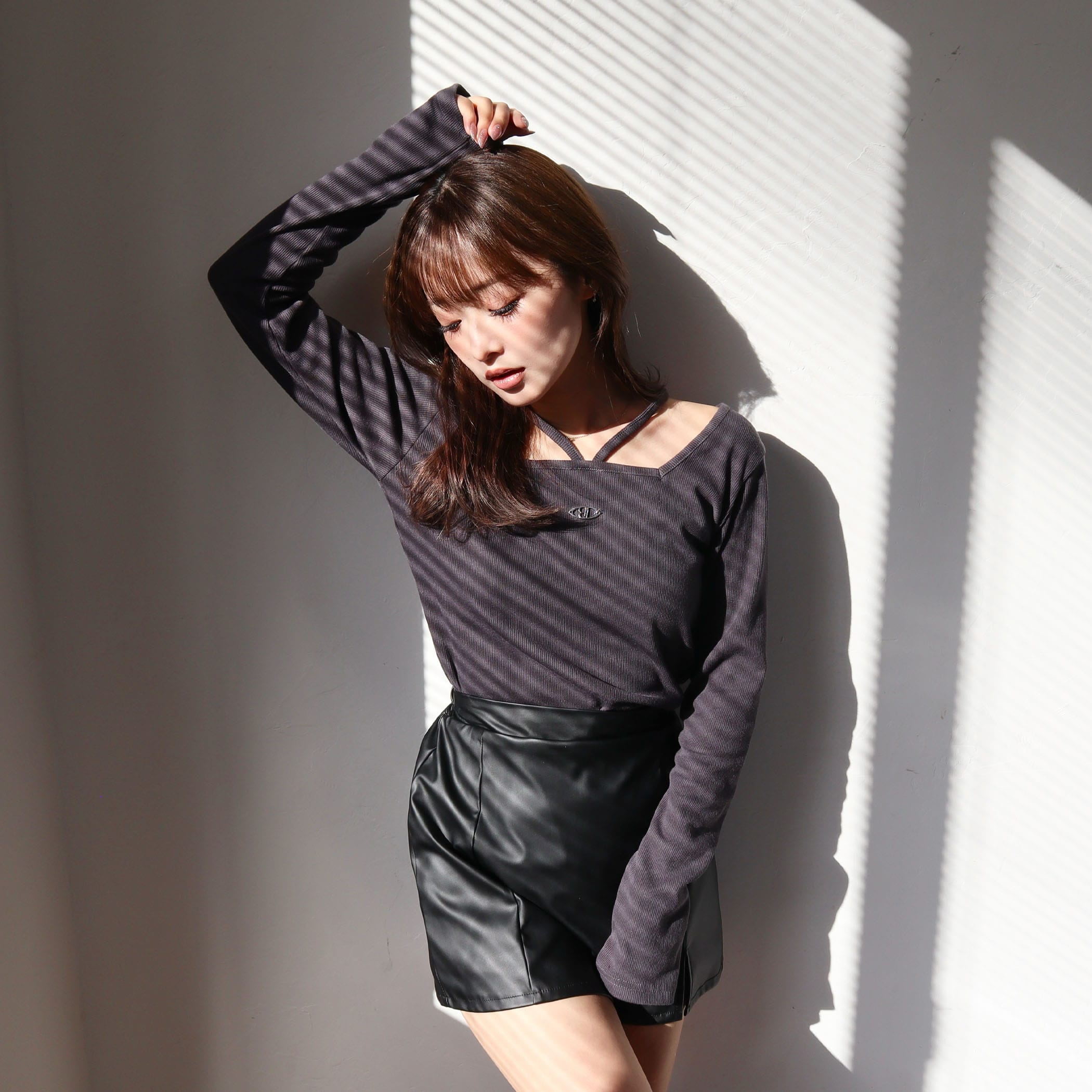 前後2WAYメタルパーツ付きスクエアネックトップス
