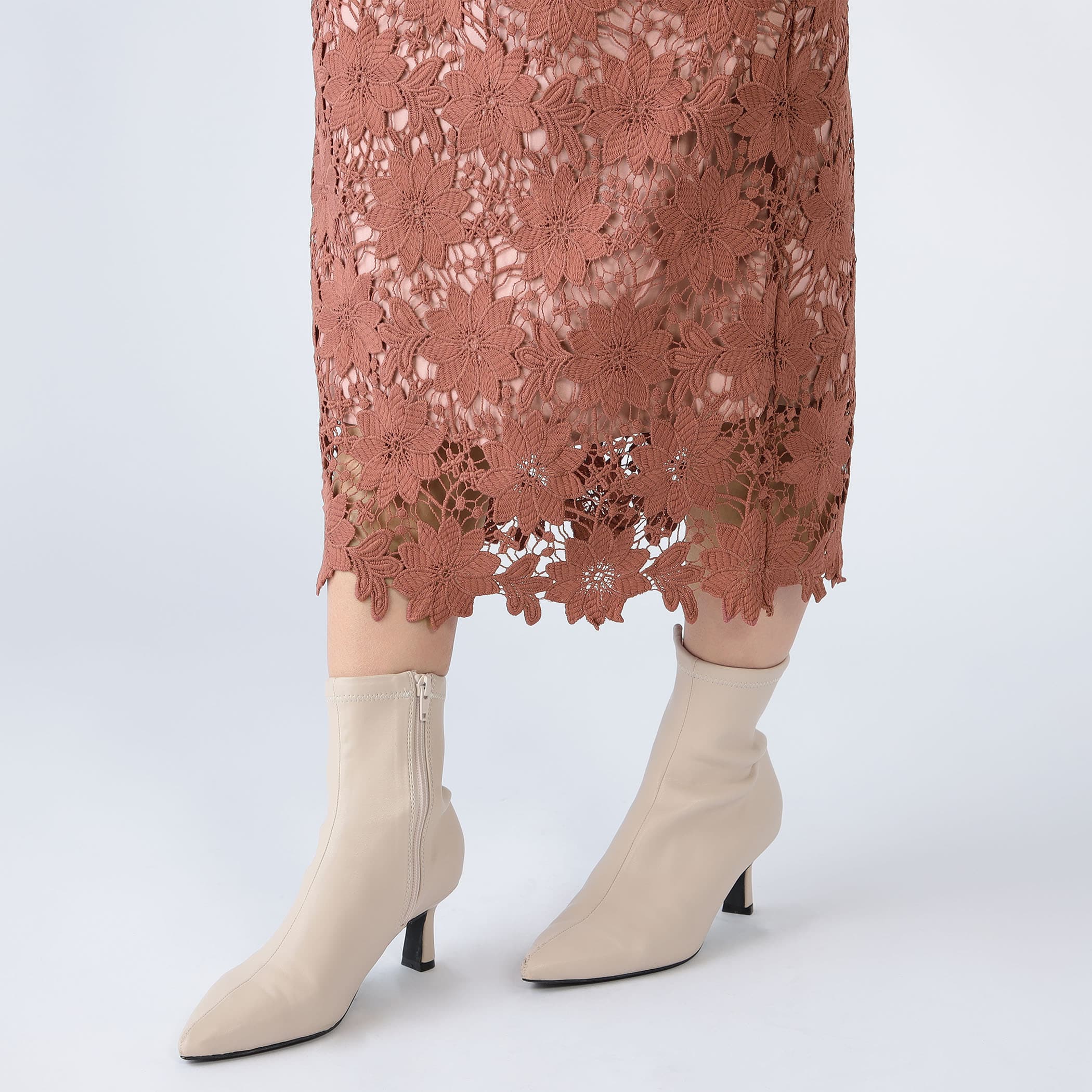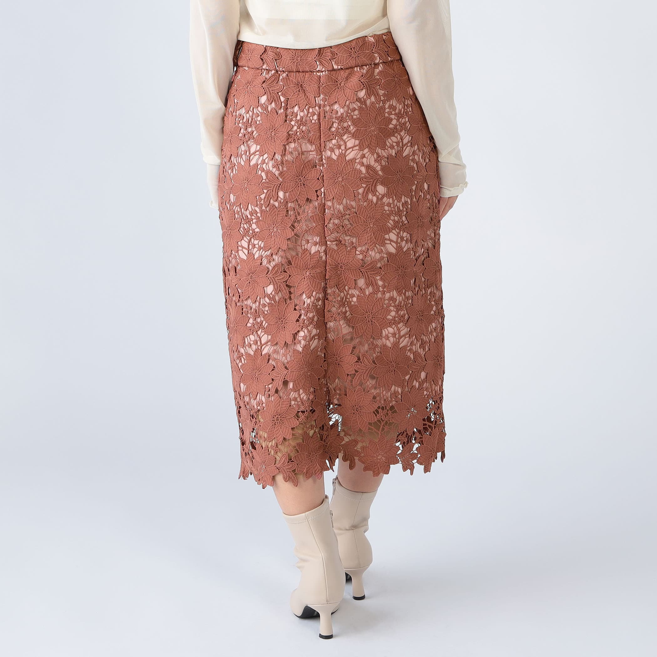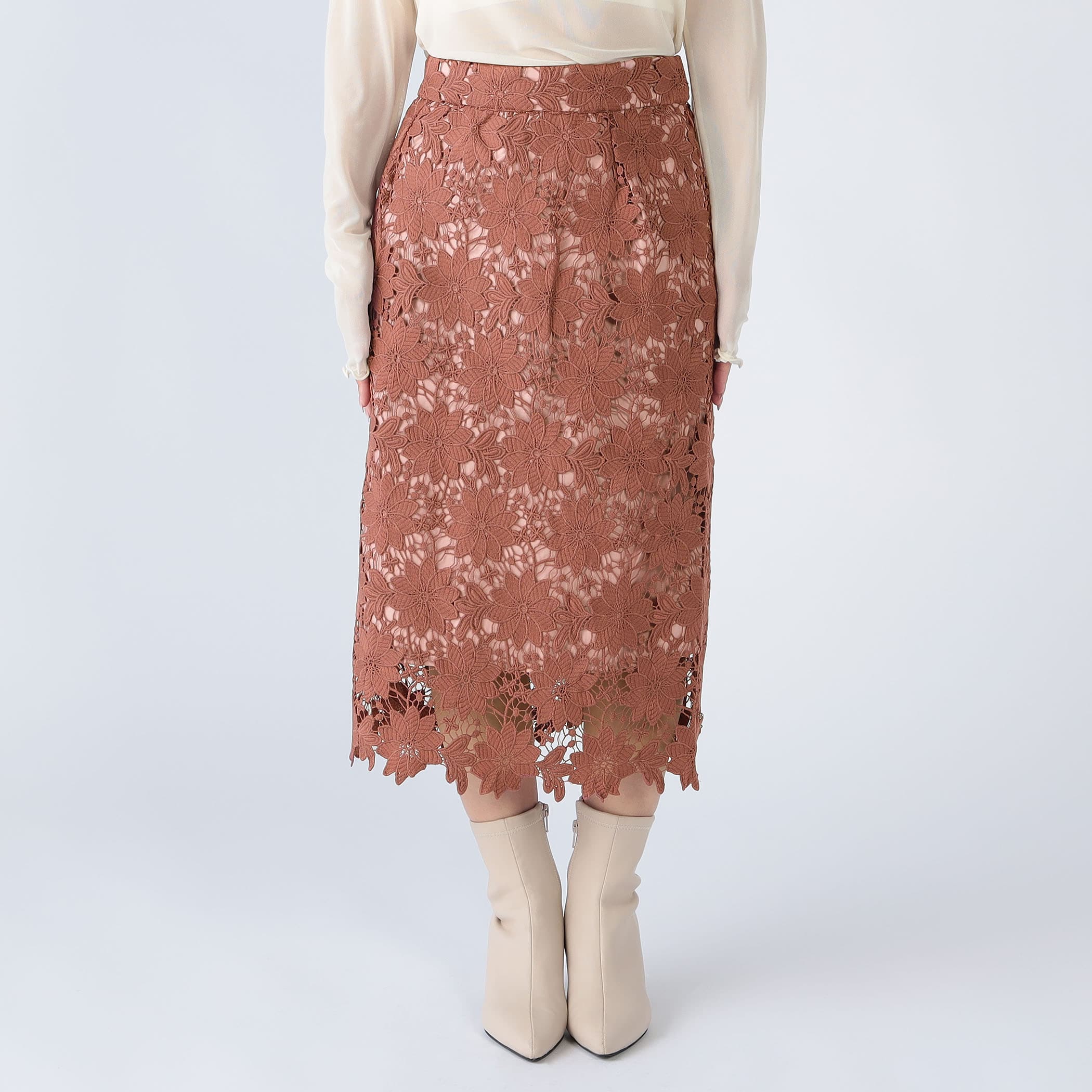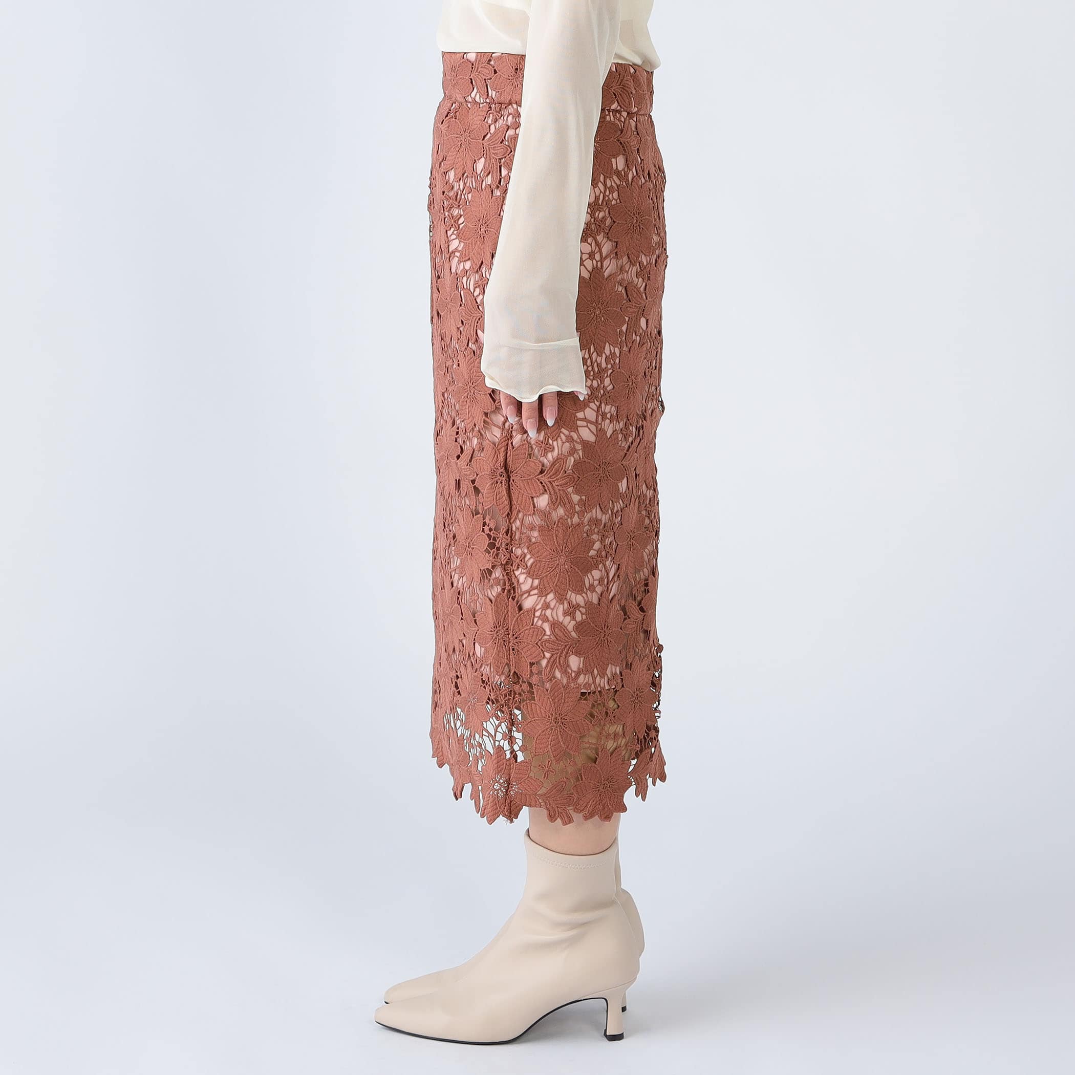 スカラップレースが上品で女性らしいタイトスカート。コーディネートに取り入れるだけで女性らしく、ぱっと華やかな印象に。すっきりとしたIラインで美脚効果&腰回りのラインもカバーしてくれます◎裾はレースの雰囲気を活かした透け感のあるスカラップで軽やかな足元に。ON/OFF問わず着まわせる万能アイテムです。