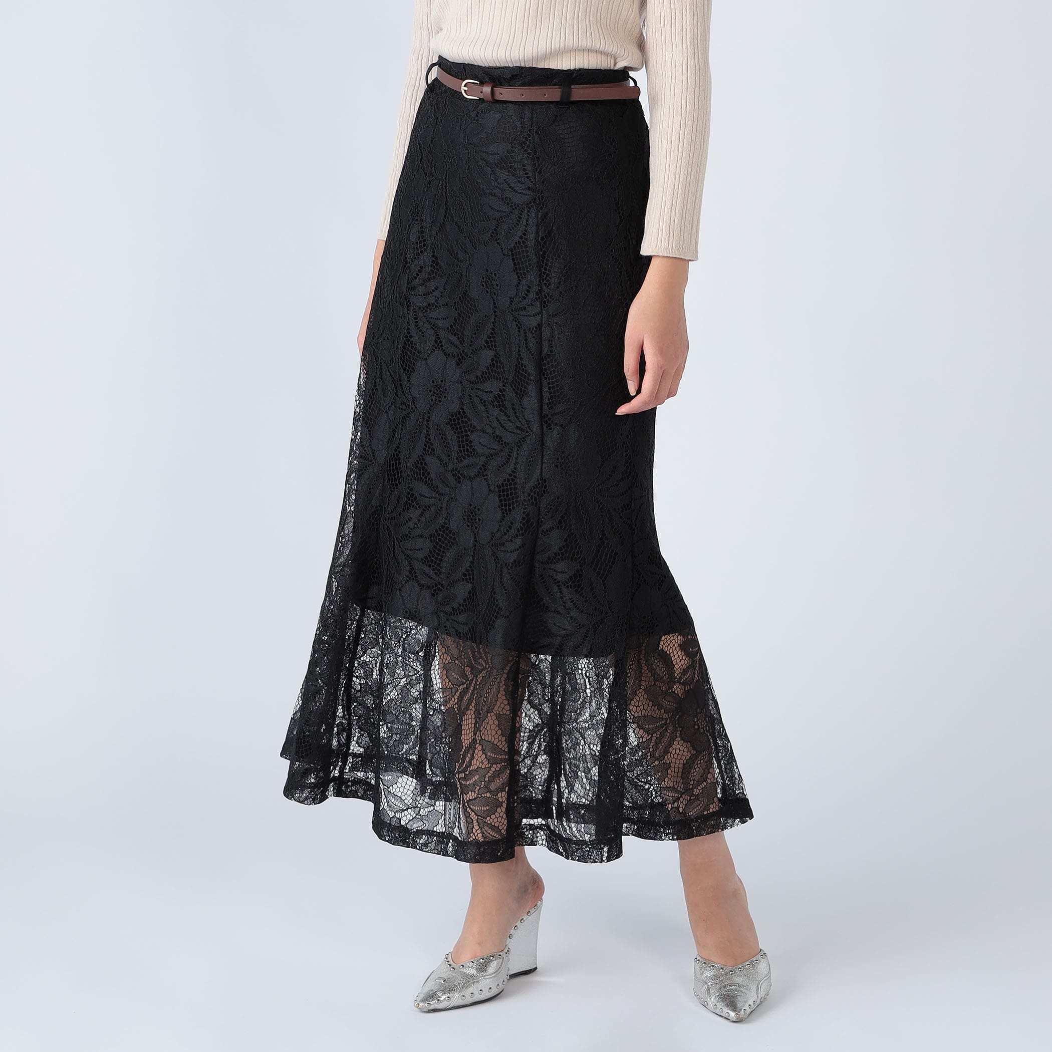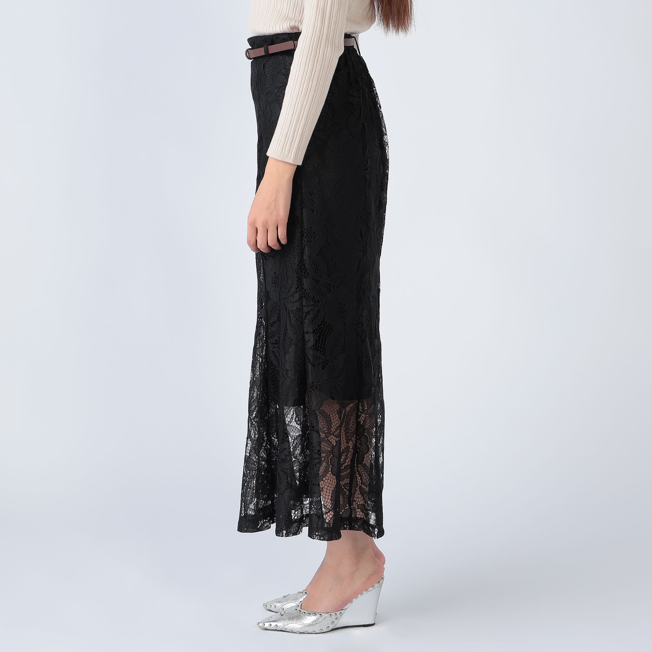 1枚でぱっと華やぐ繊細なレース柄をトレンドのマーメイドスカートに落とし込みました。歩くたびひらりと揺れる裾が女性らしく目を惹くポイント。ハイウエストなのでスタイルアップ効果も◎ウエストは一部ゴム仕様でラクにはいていただけます。トップスはコンパクトなものを合わせていただきインスタイルがお勧めです。