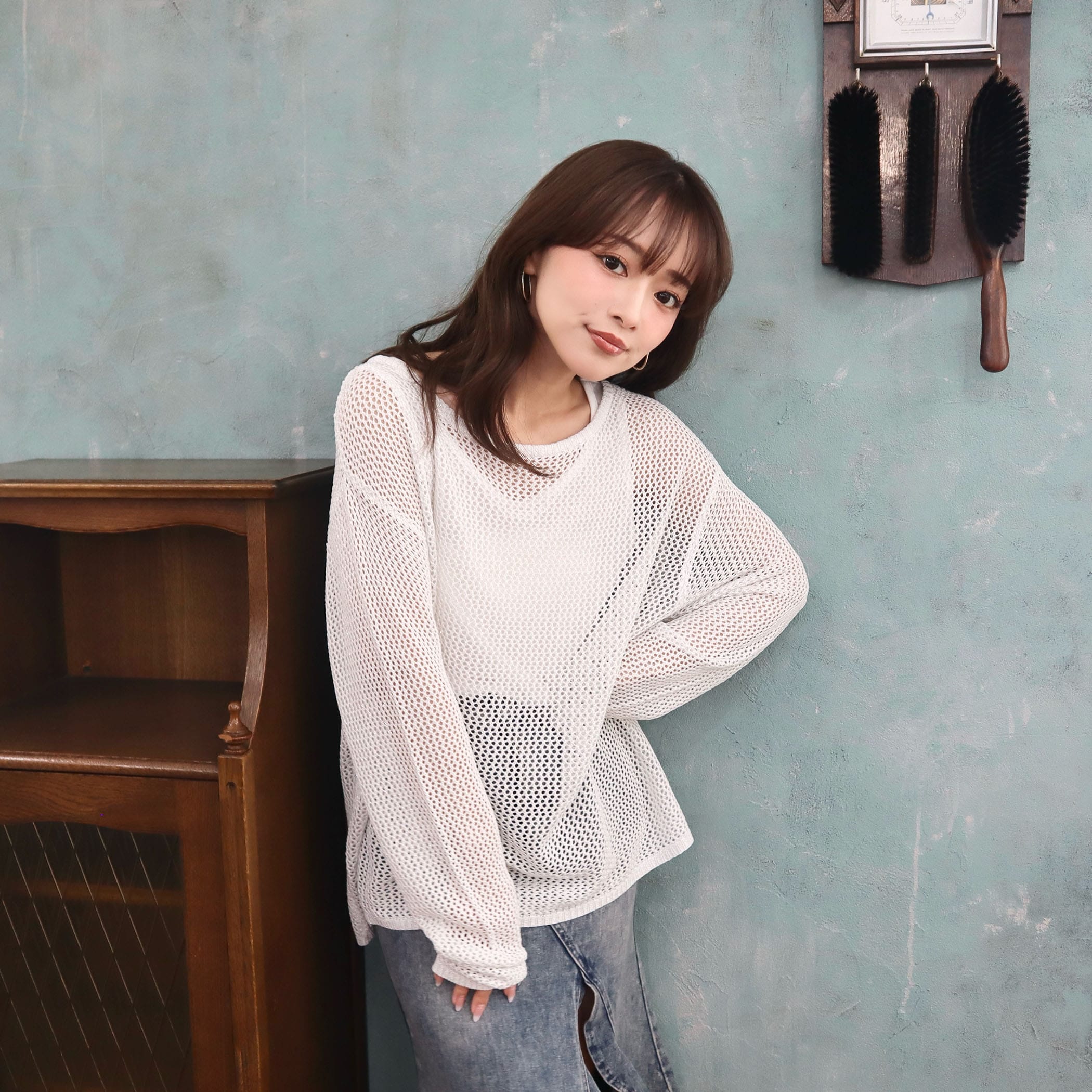 今年らしい程よい透け感が目を惹く女性らしいニットが登場。