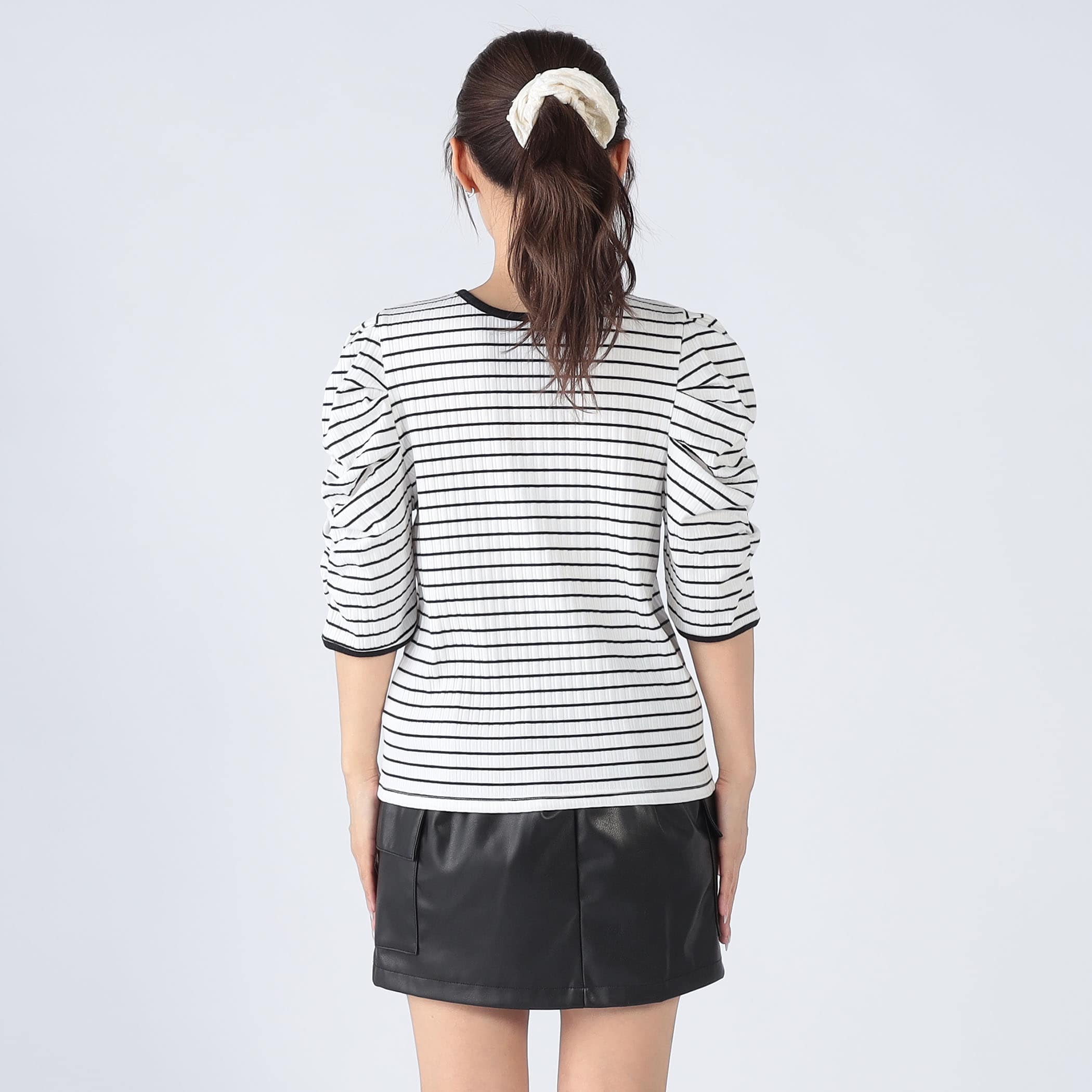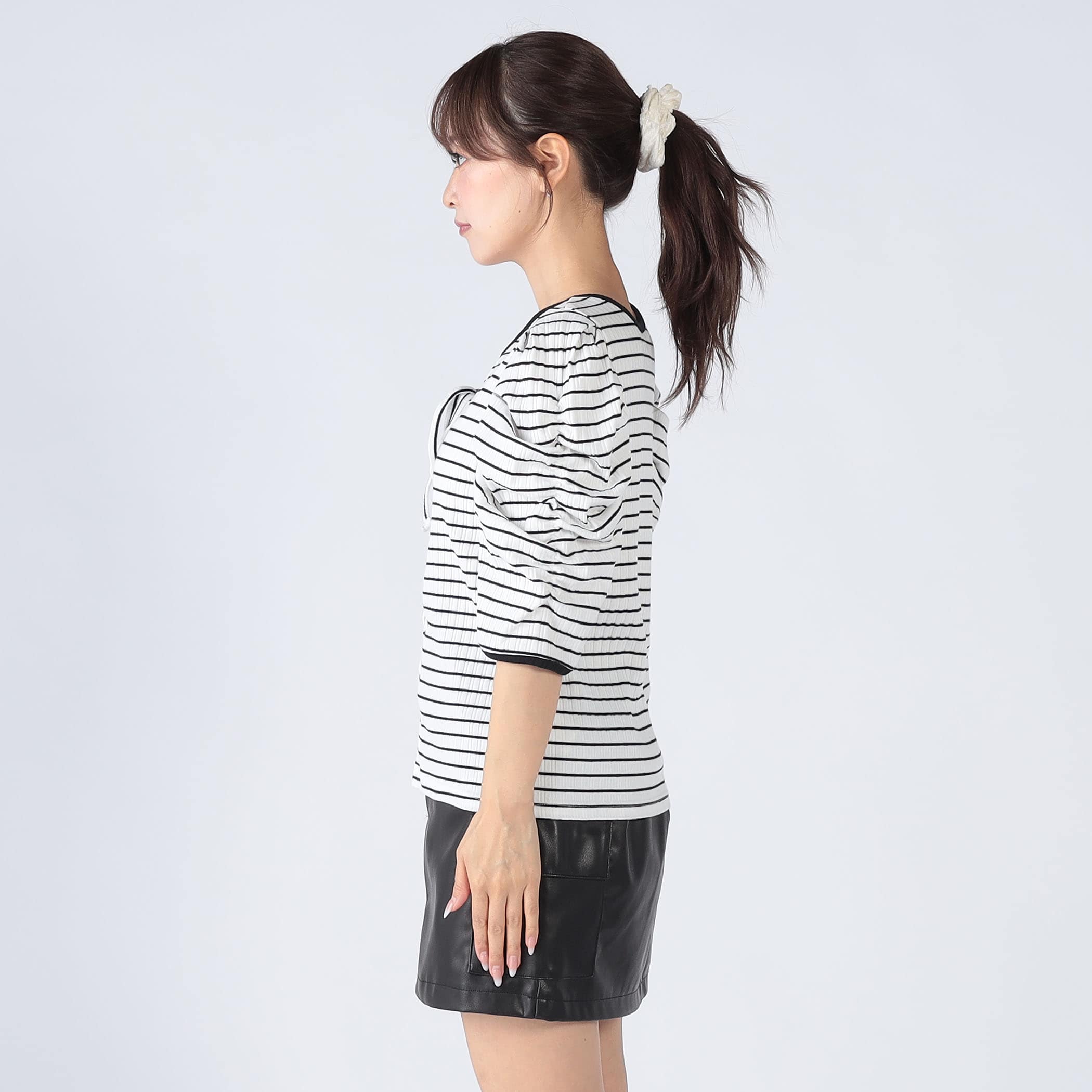 パワショルのディテールとタイトなシルエットが女性らしさを演出してくれるプルオーバー。