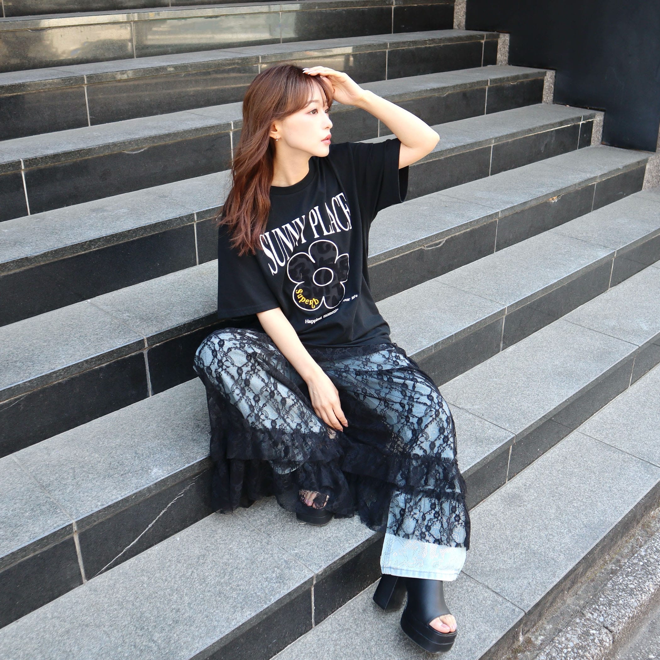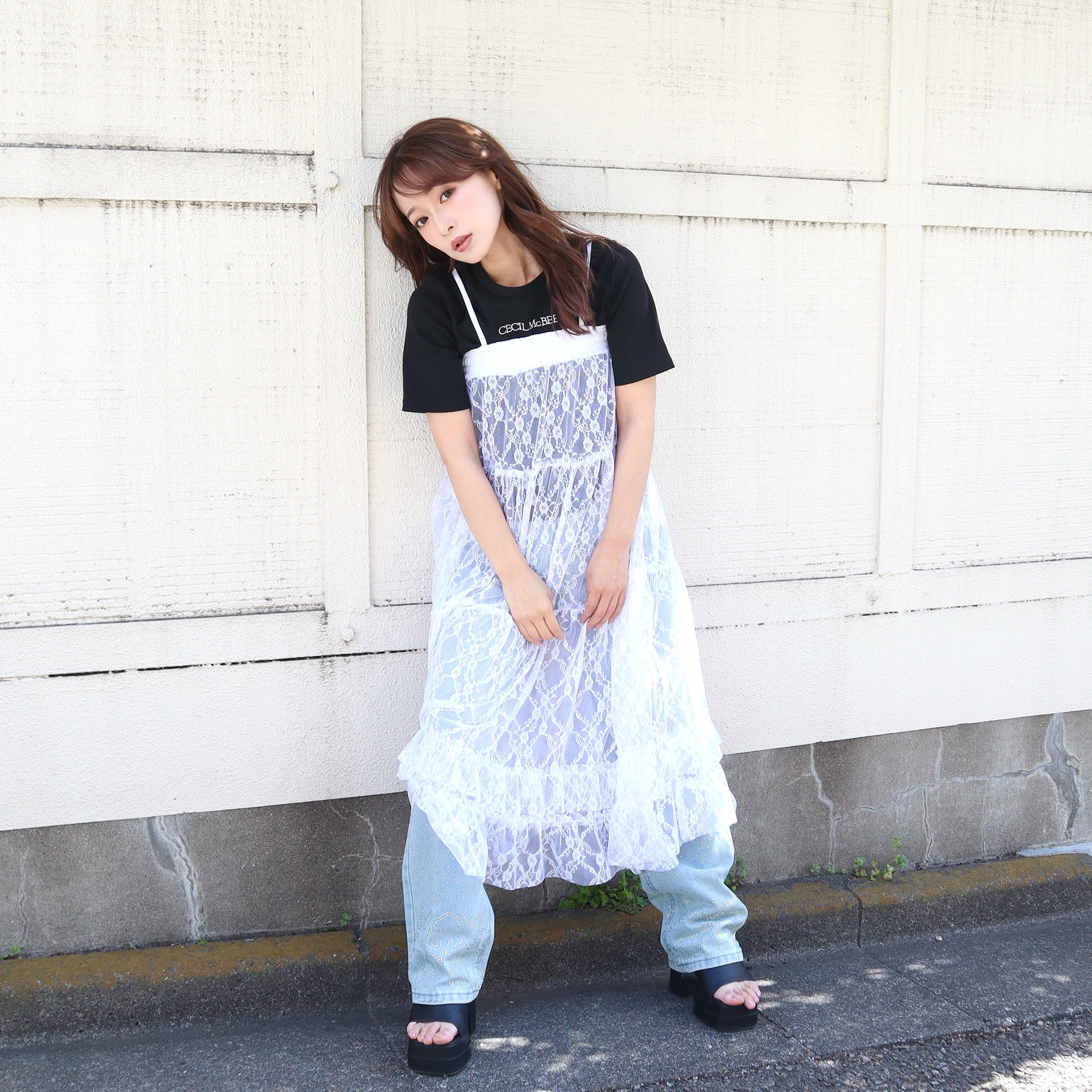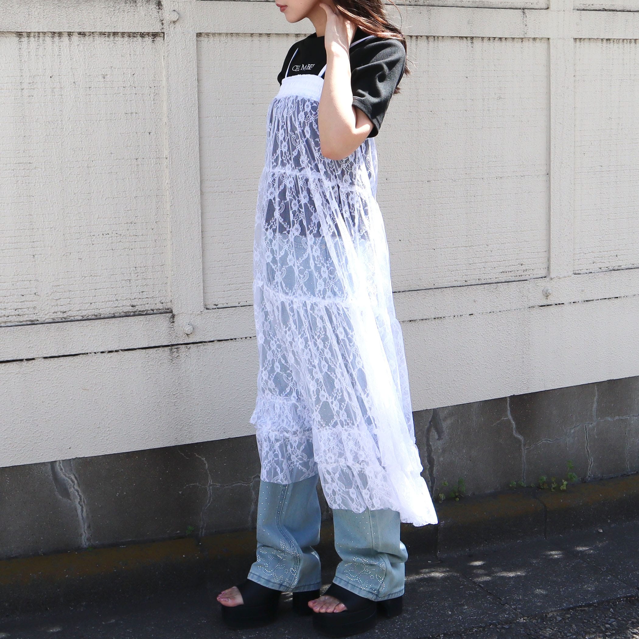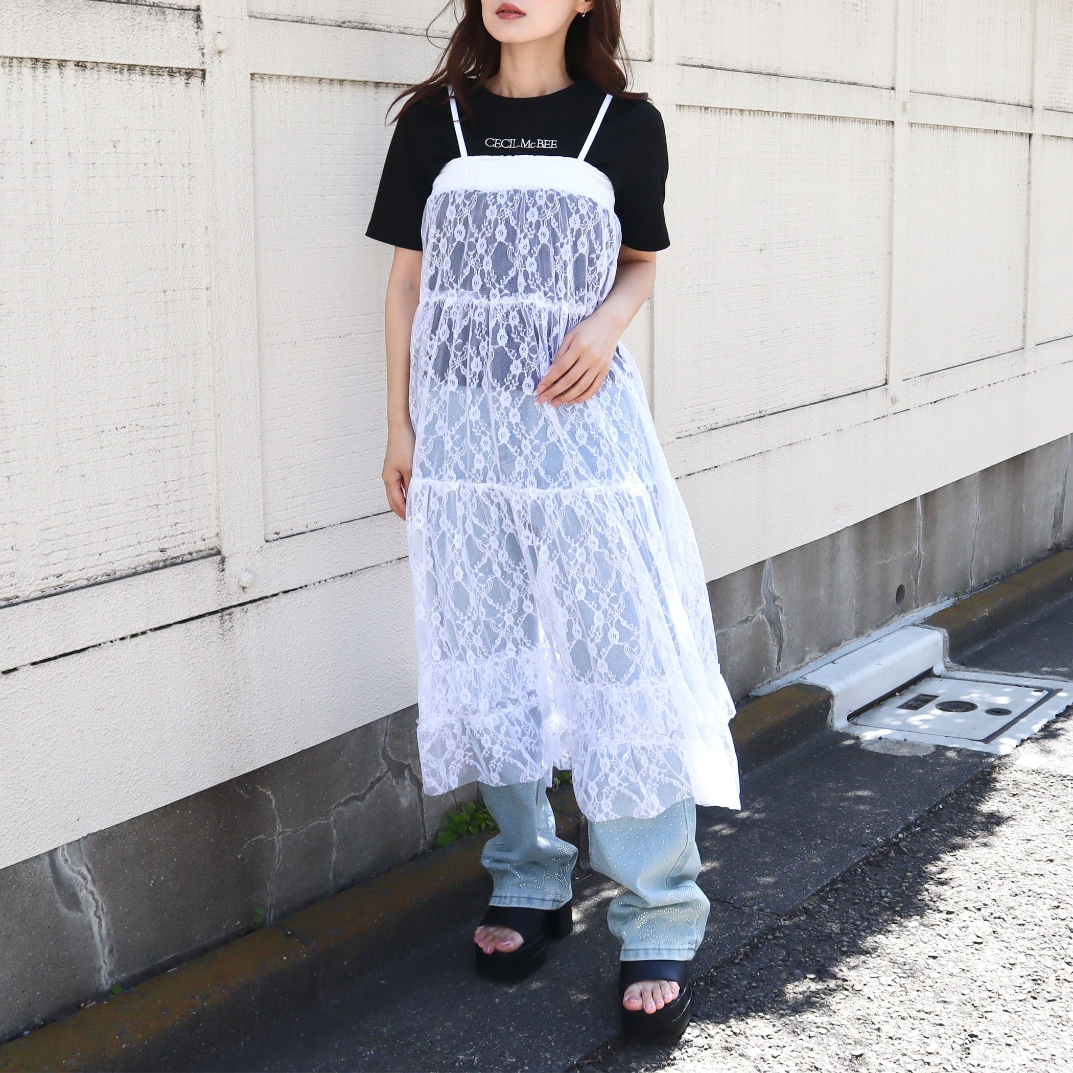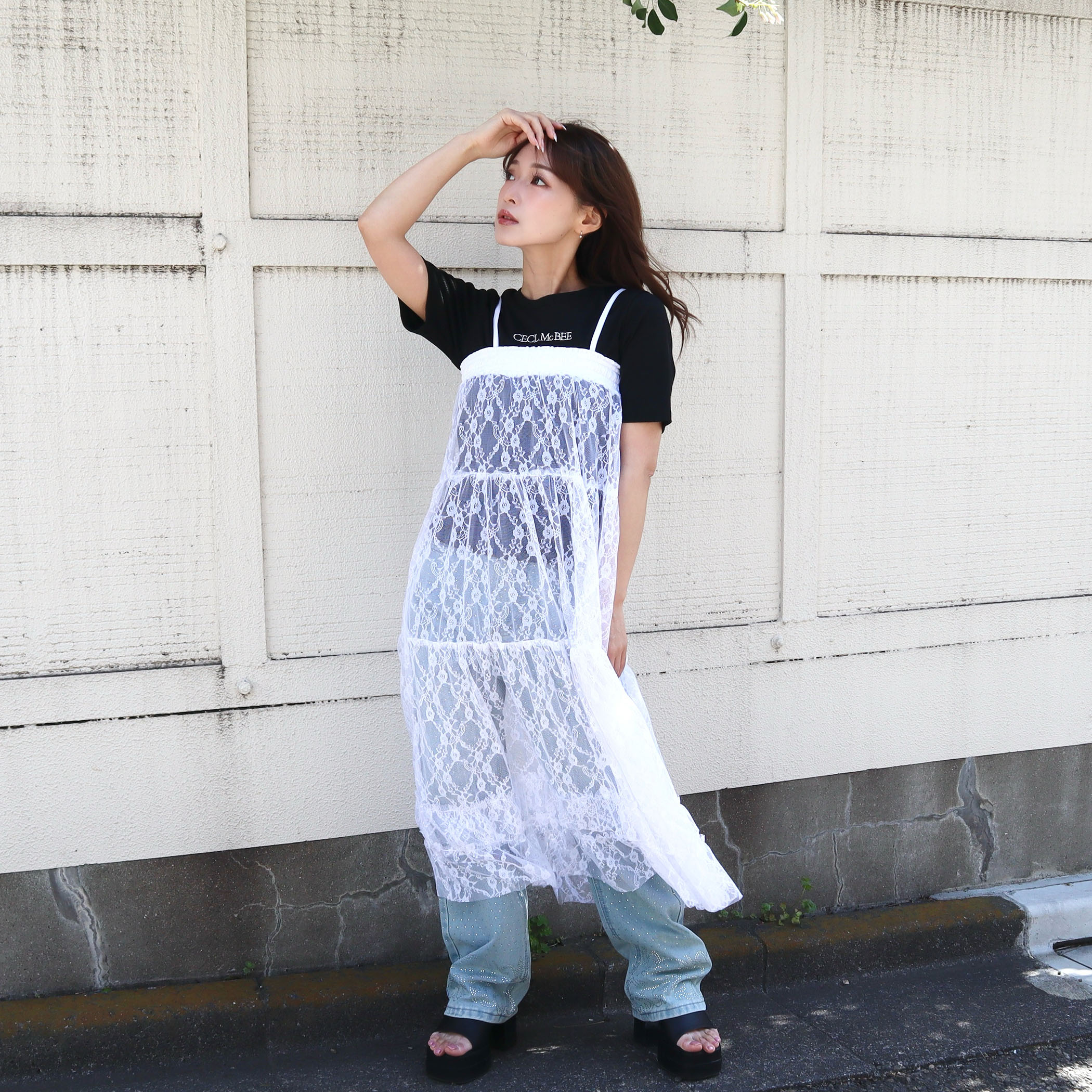 総レース柄ティアードキャミワンピ/スカート2WAY