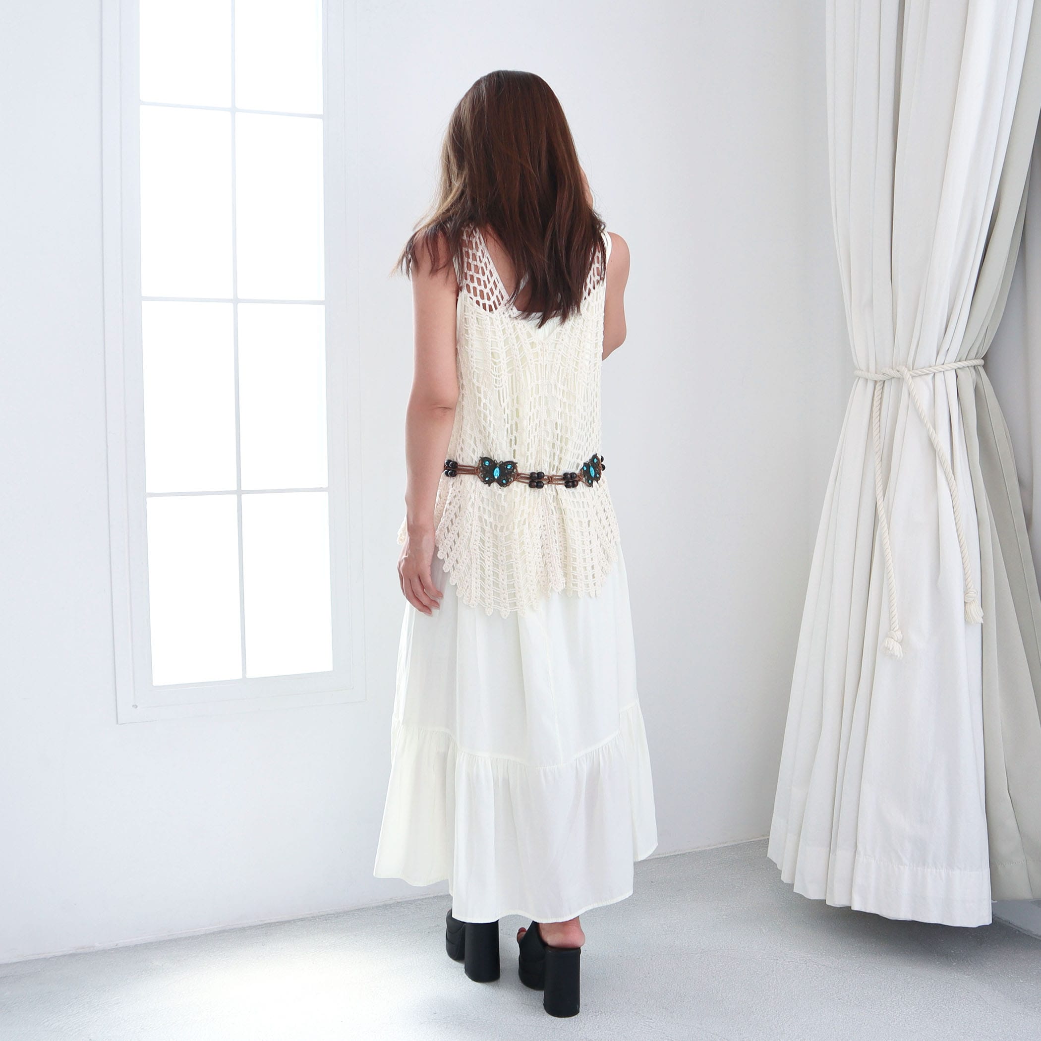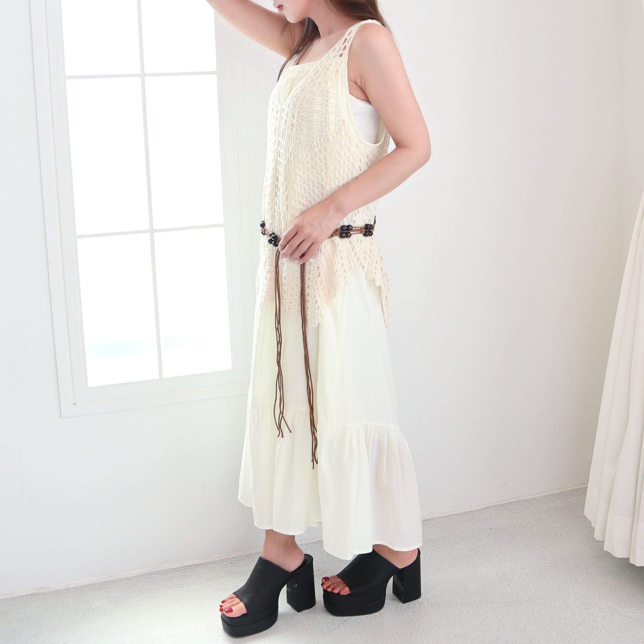 かぎ針編みニットタンクトップ&裾フレアワンピSET