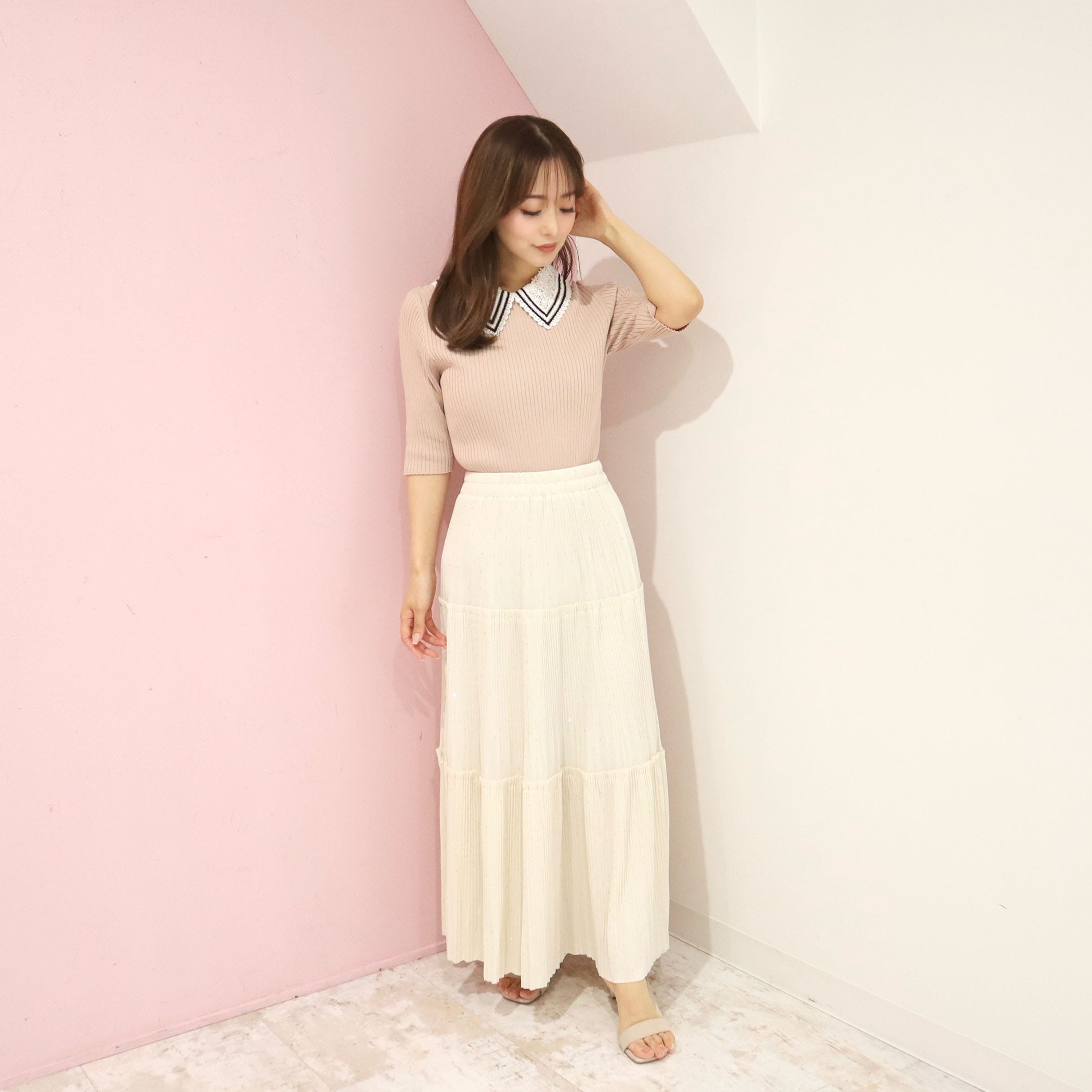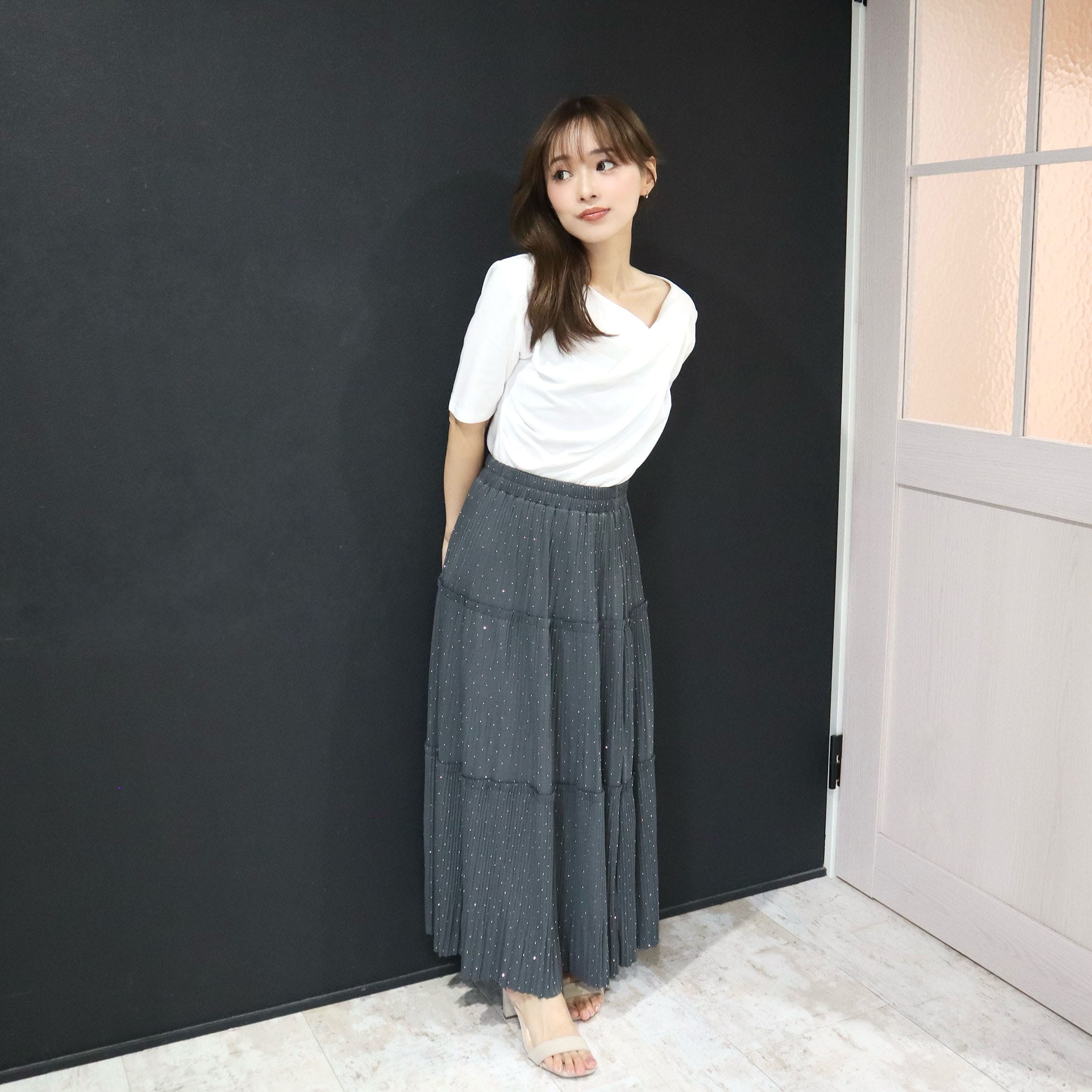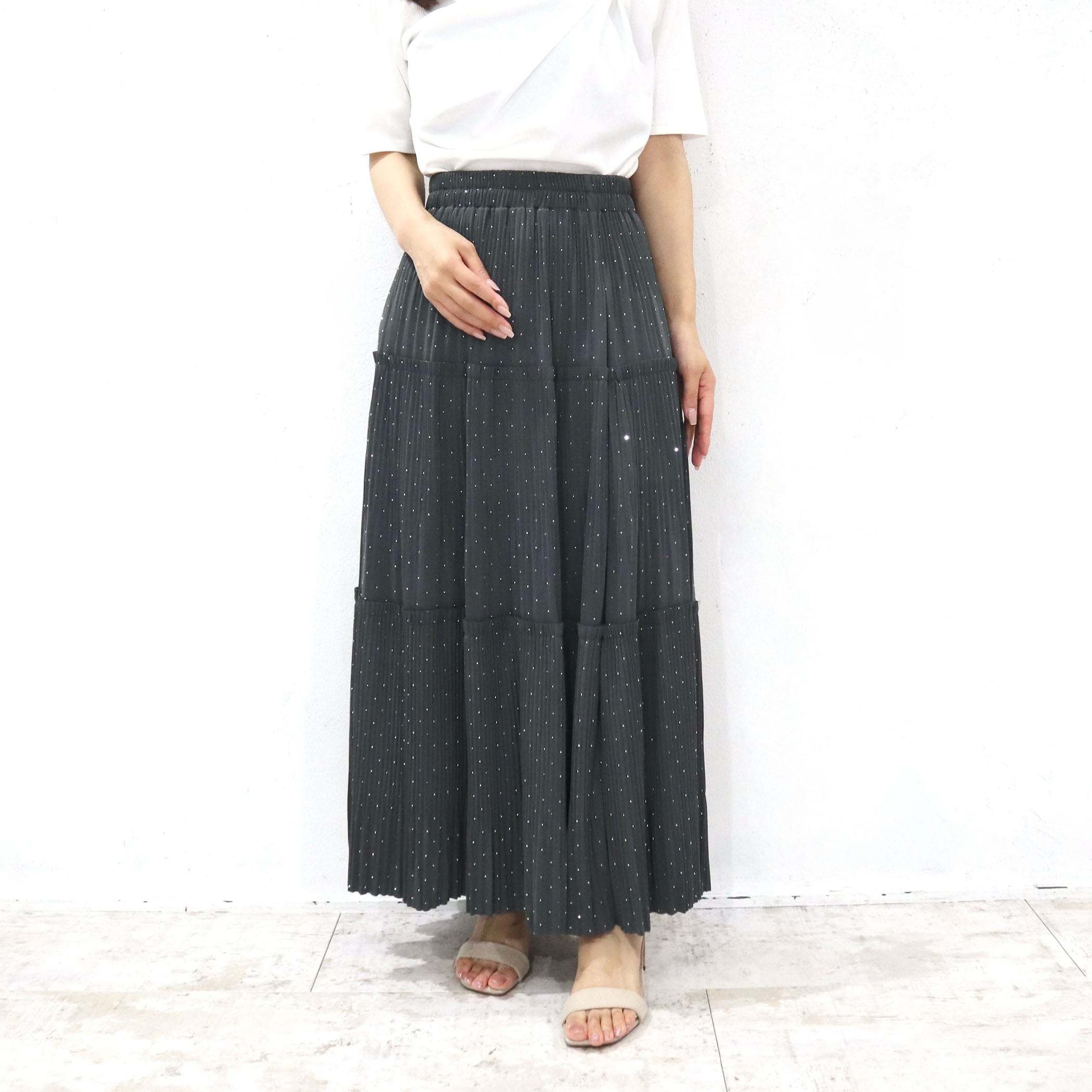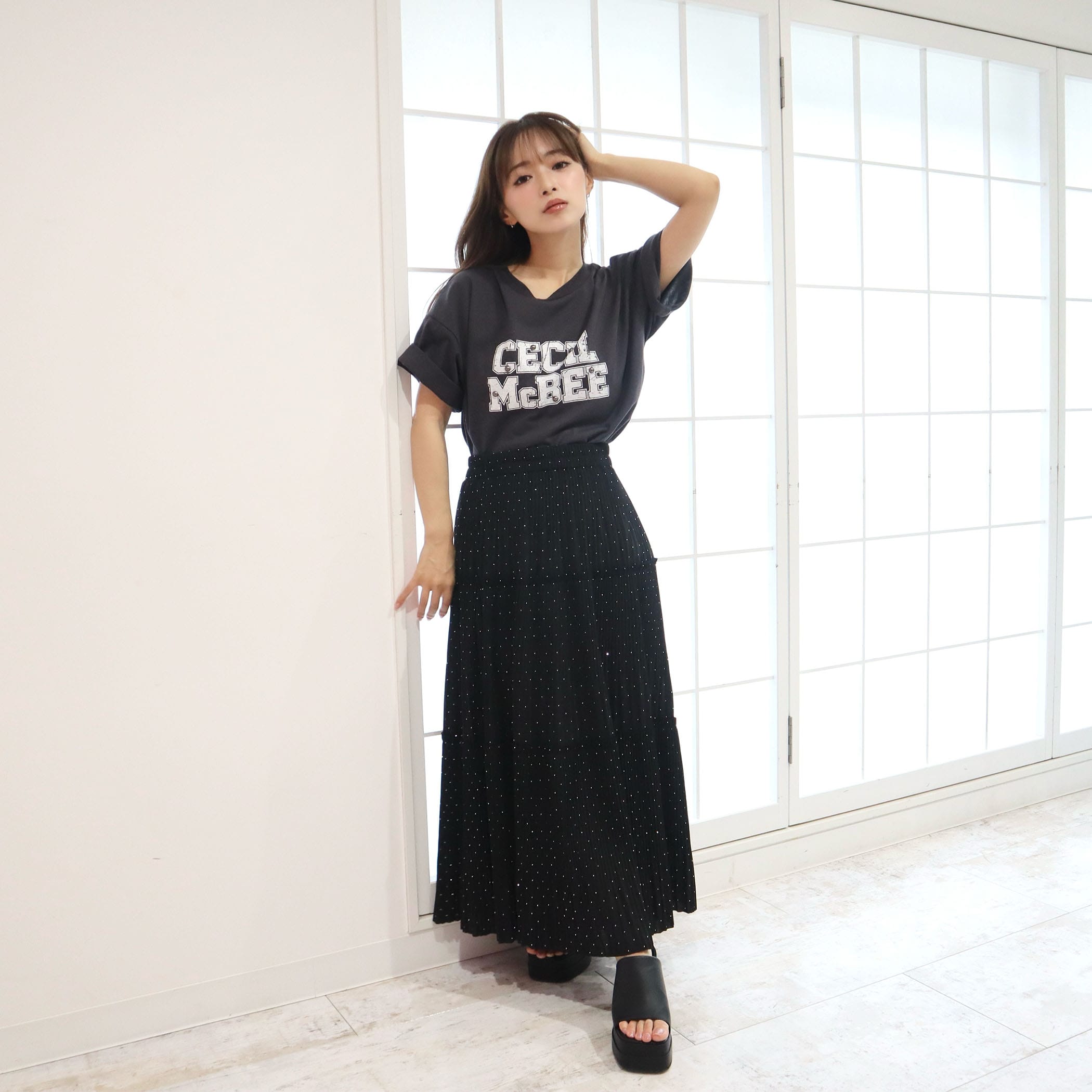 キラキラ輝くジルコンが華やぐスカート。着用するだけでコーディネートの主役になるアイテムです。シンプルなデザインのトップスやパンプスなどと合わせれば、オフィスカジュアルコーデに。オーバーサイズのスウェットなど大きめサイズのトップスと合わせればガーリーカジュアルなコーデに◎ボリュームのあるシューズと合わせれば韓国ファッション風にと合わせるアイテム次第で雰囲気がガラリと変わり、遊び心のあるスカートです。合わせるアイテム次第で