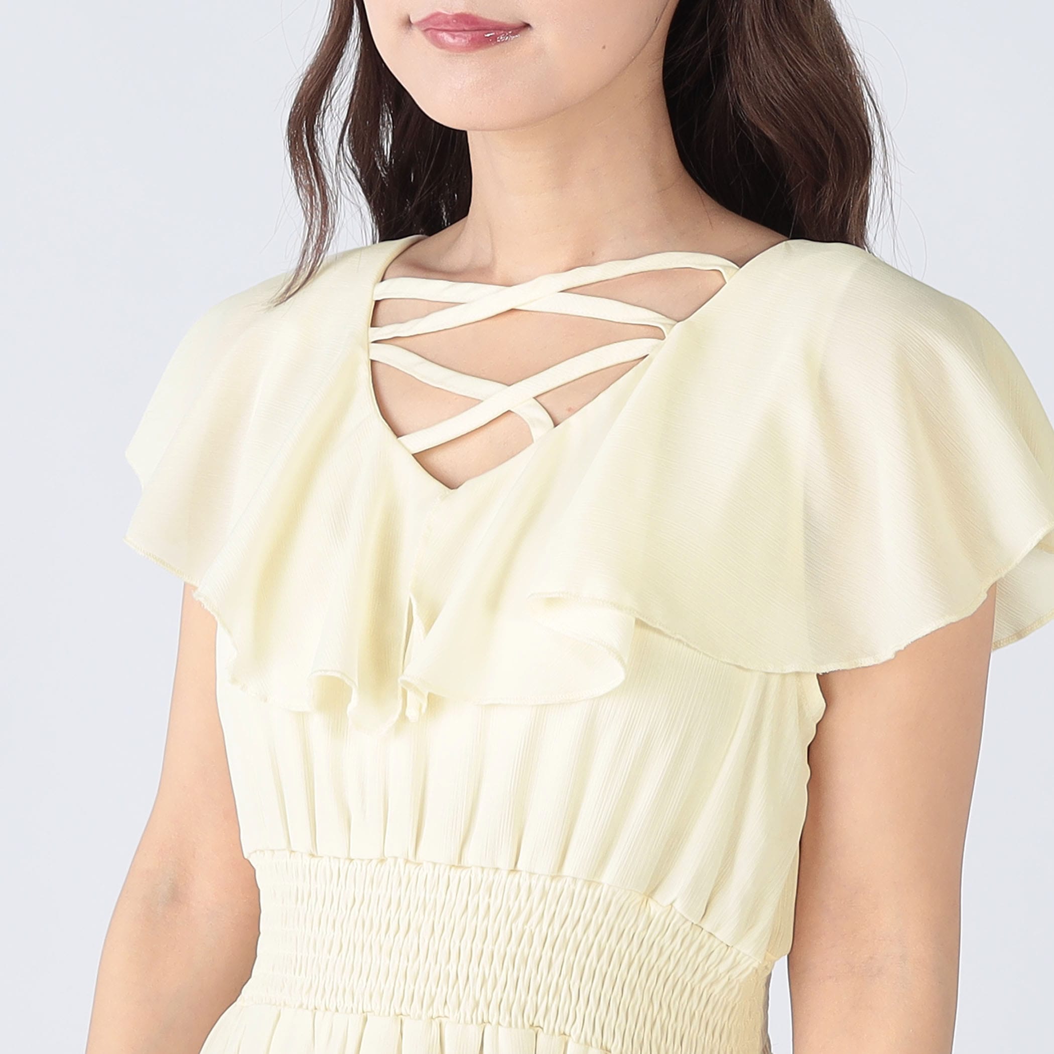 涼し気な楊柳素材のクロスネックロングワンピース。