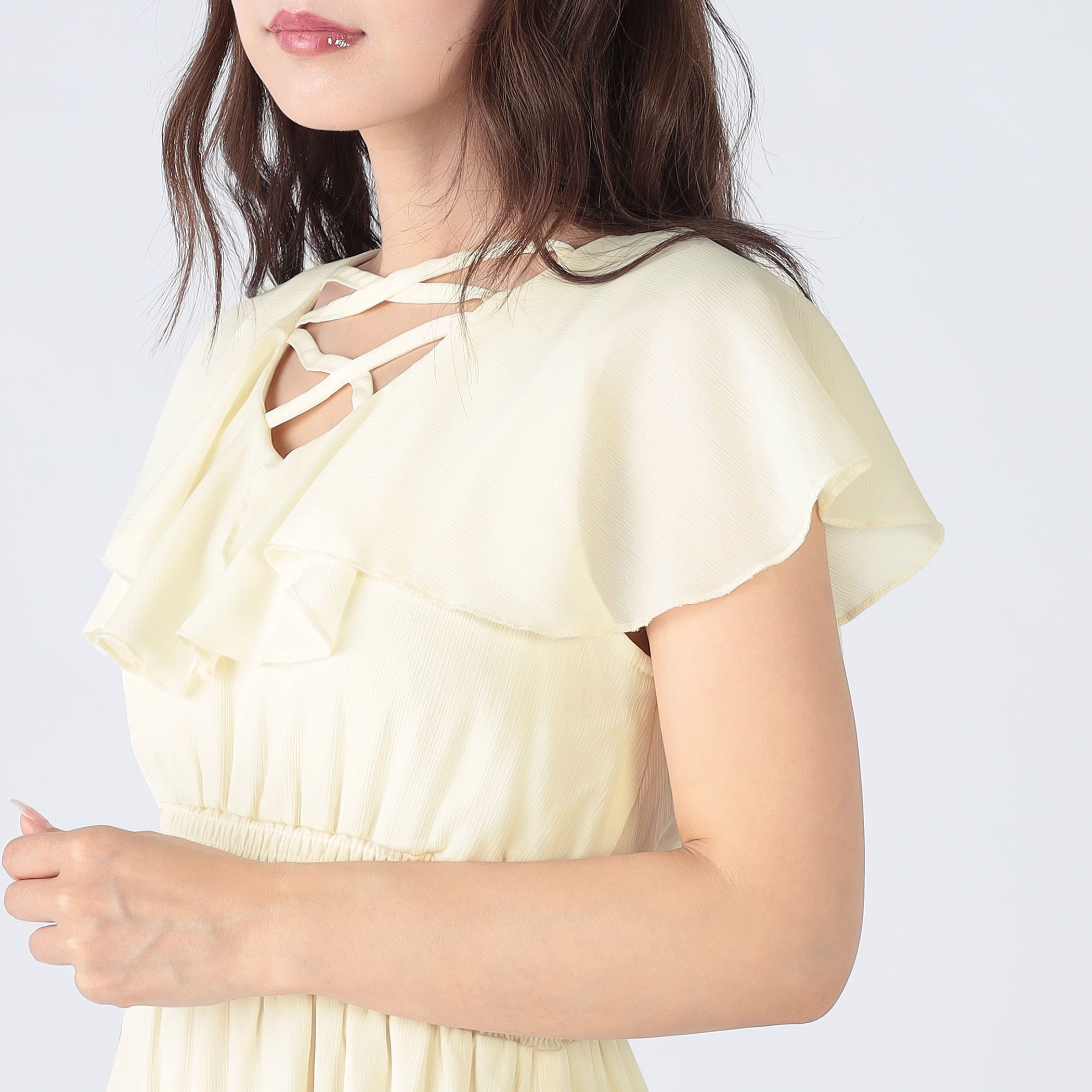 首元のデザインとフリルがガーリーコーデにぴったり。