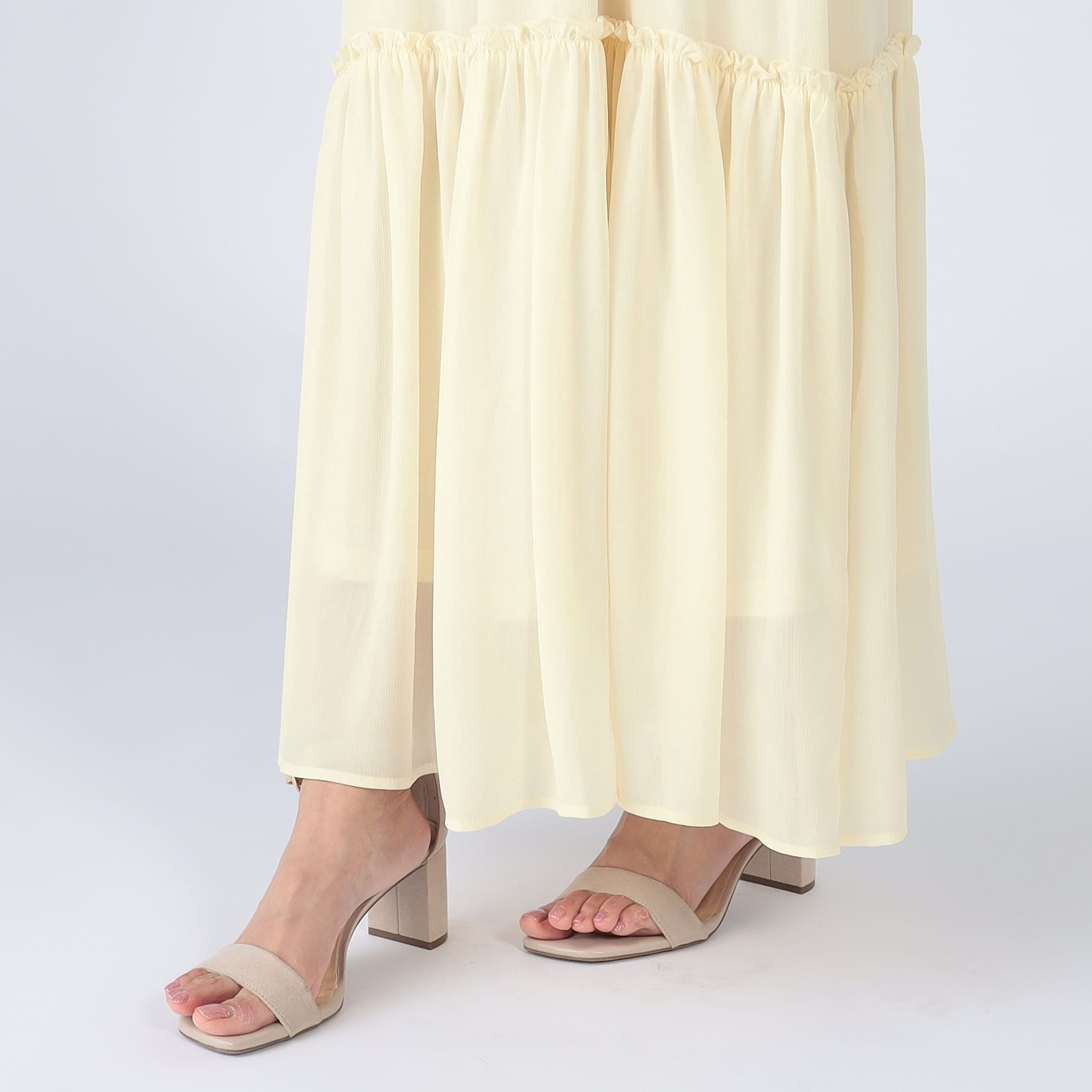 スカート部分はティアードデザインになっているので、女性らしさをより引き立たせてくれます。