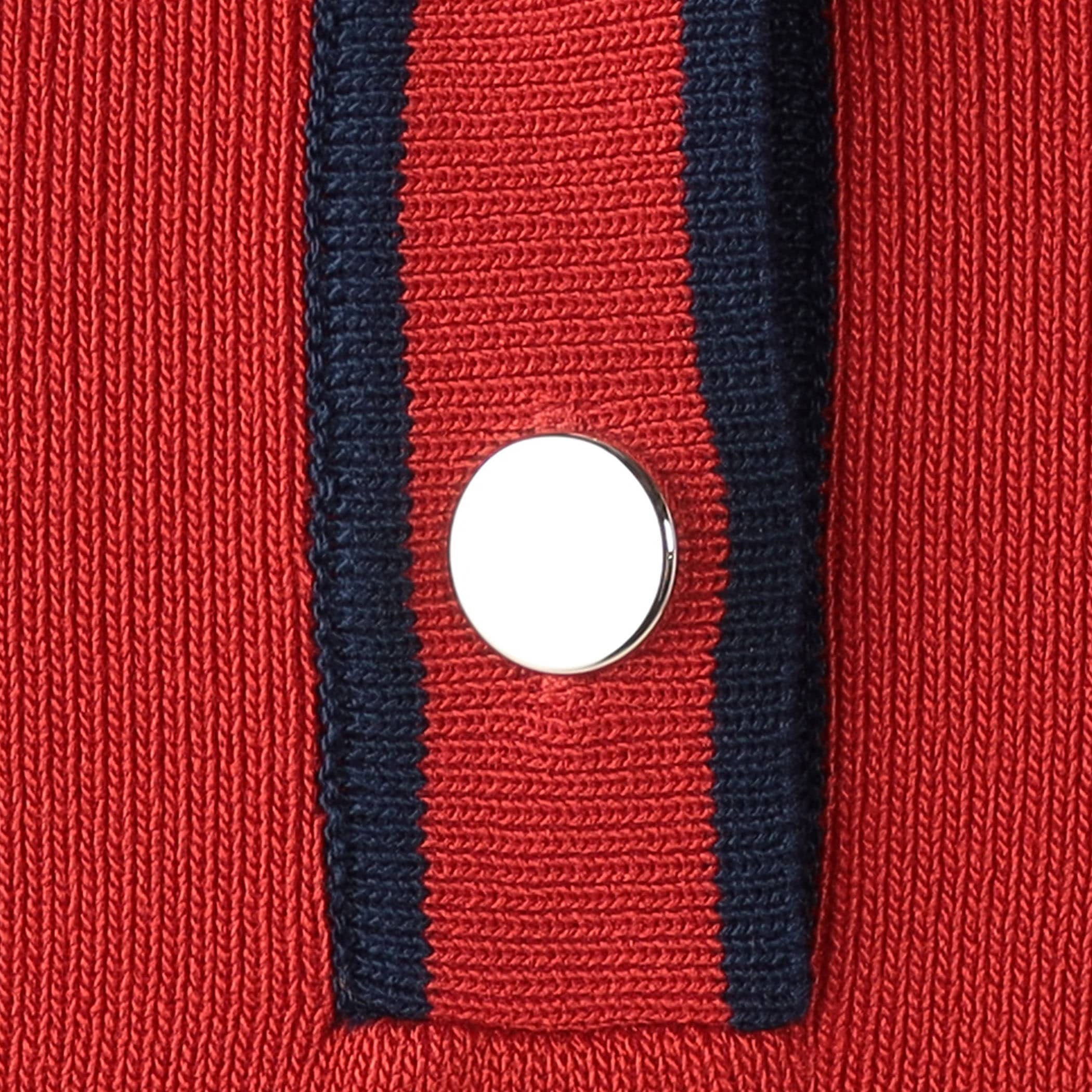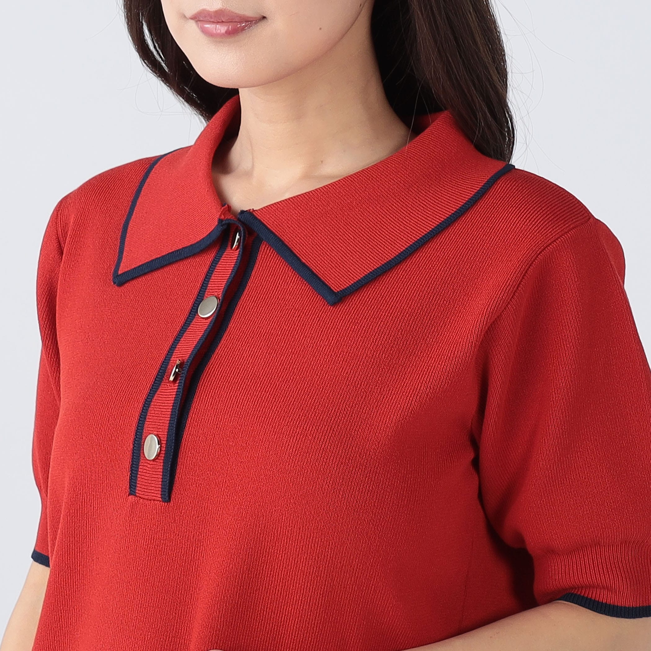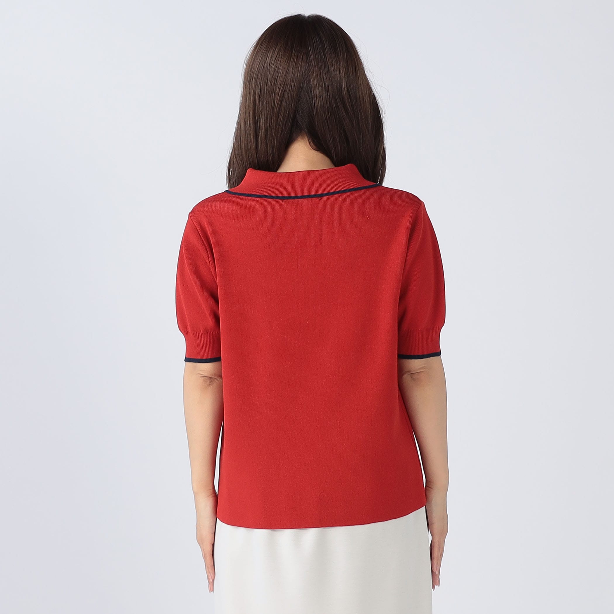 接触冷感ウォッシャブル配色ライン入りポロ衿ニット