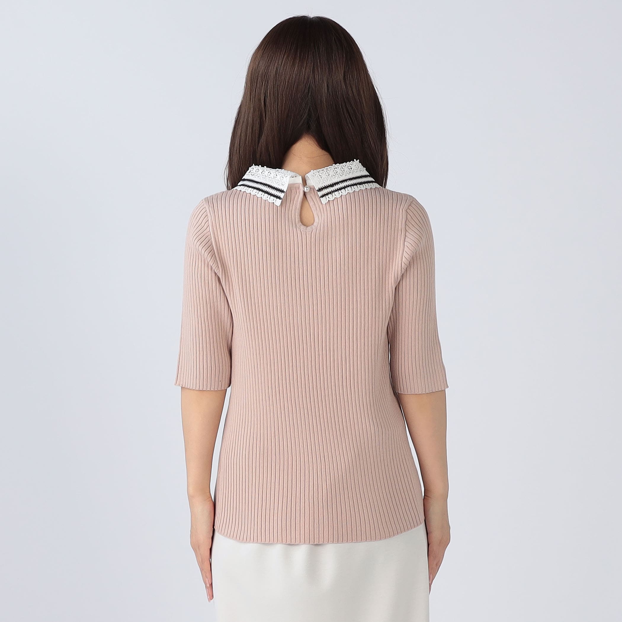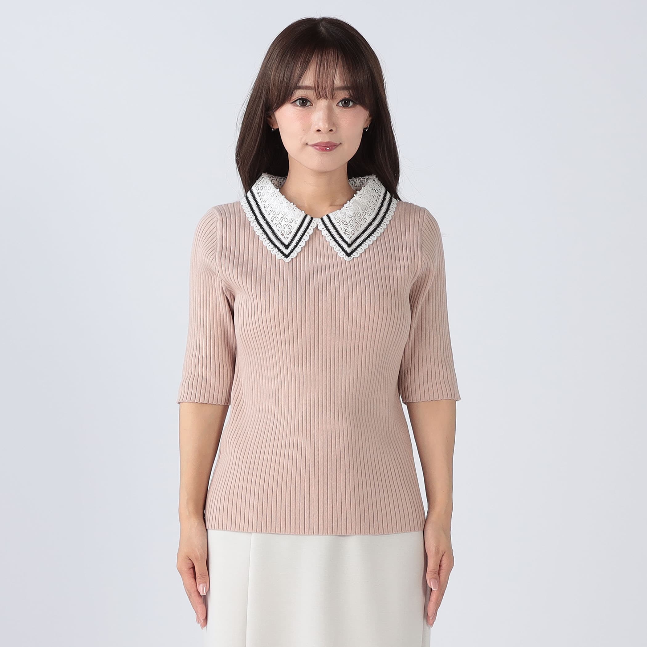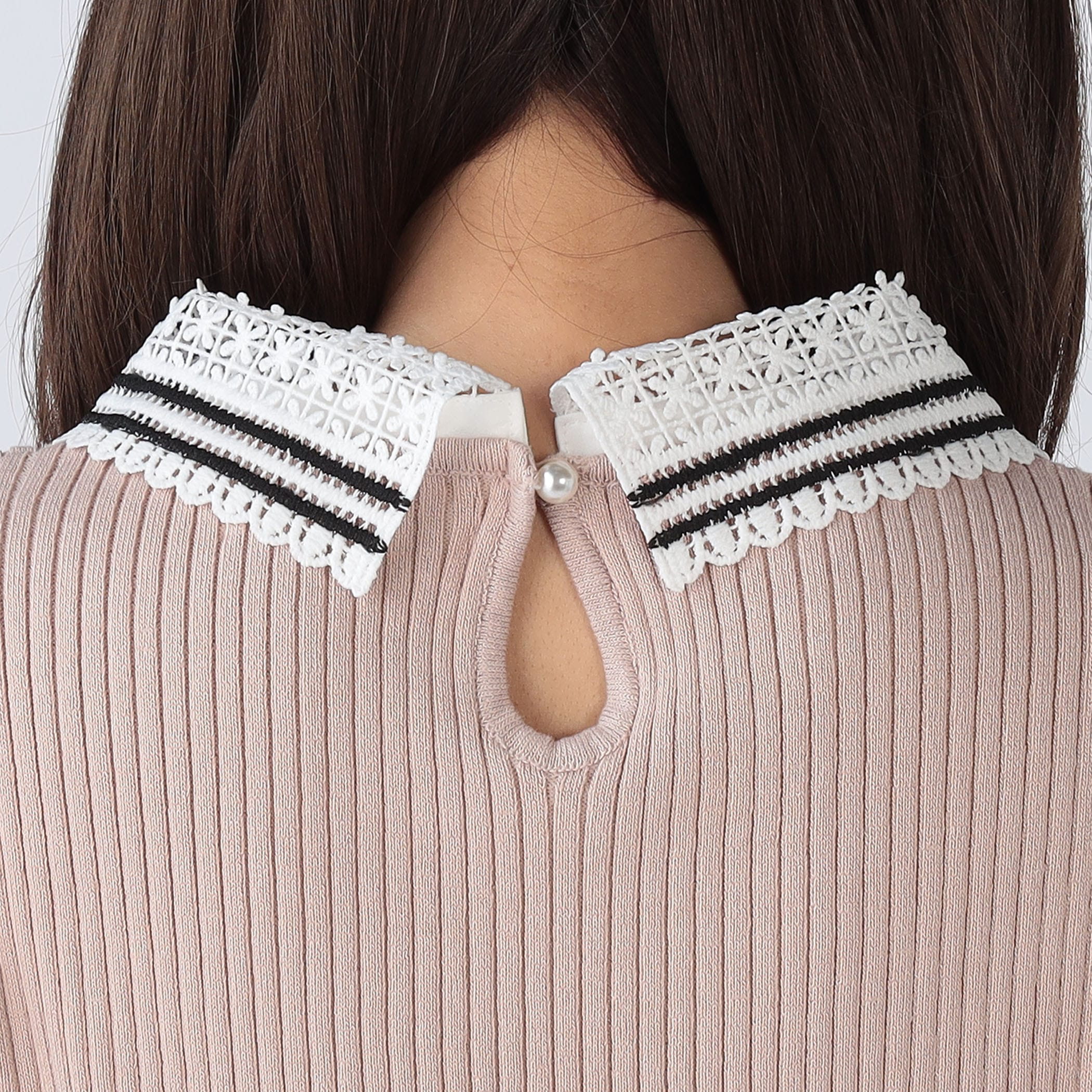 可愛らしさをプラスしてくれるレースつけ襟ニット。ちょうどよい甘めな雰囲気を引き出してくれる衿が今っぽく、普段のコーデのアクセントになるアイテム◎つけ襟は取り外しできシンプルなニットトップスとしても着用できるのもうれしいポイント◎接触冷感機能付きのニット素材なので、これからの時期にピッタリな一枚です。
