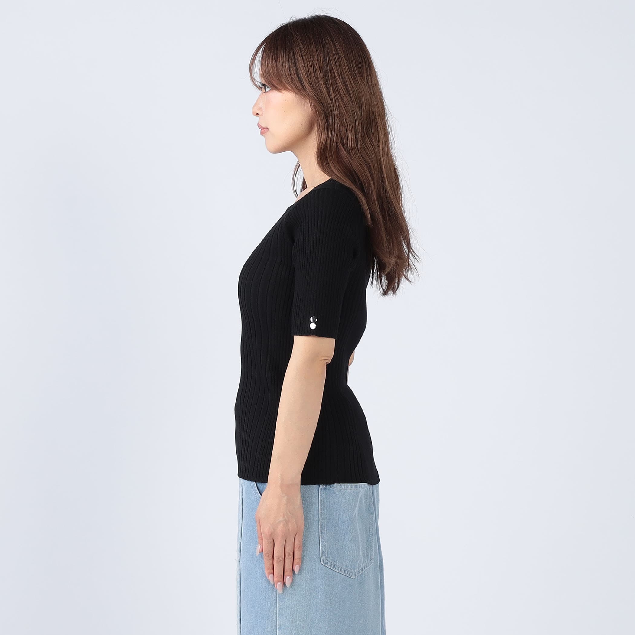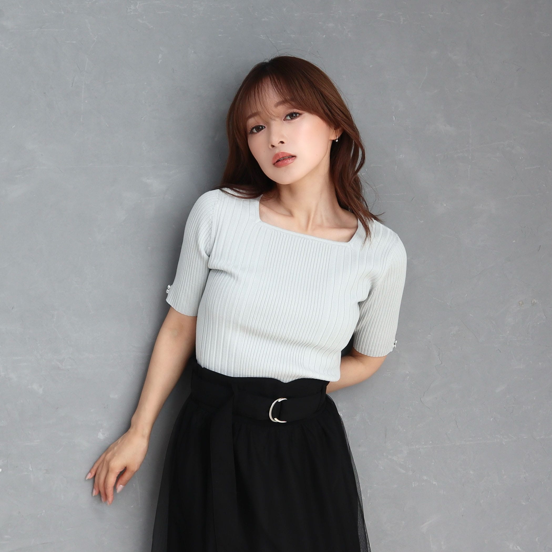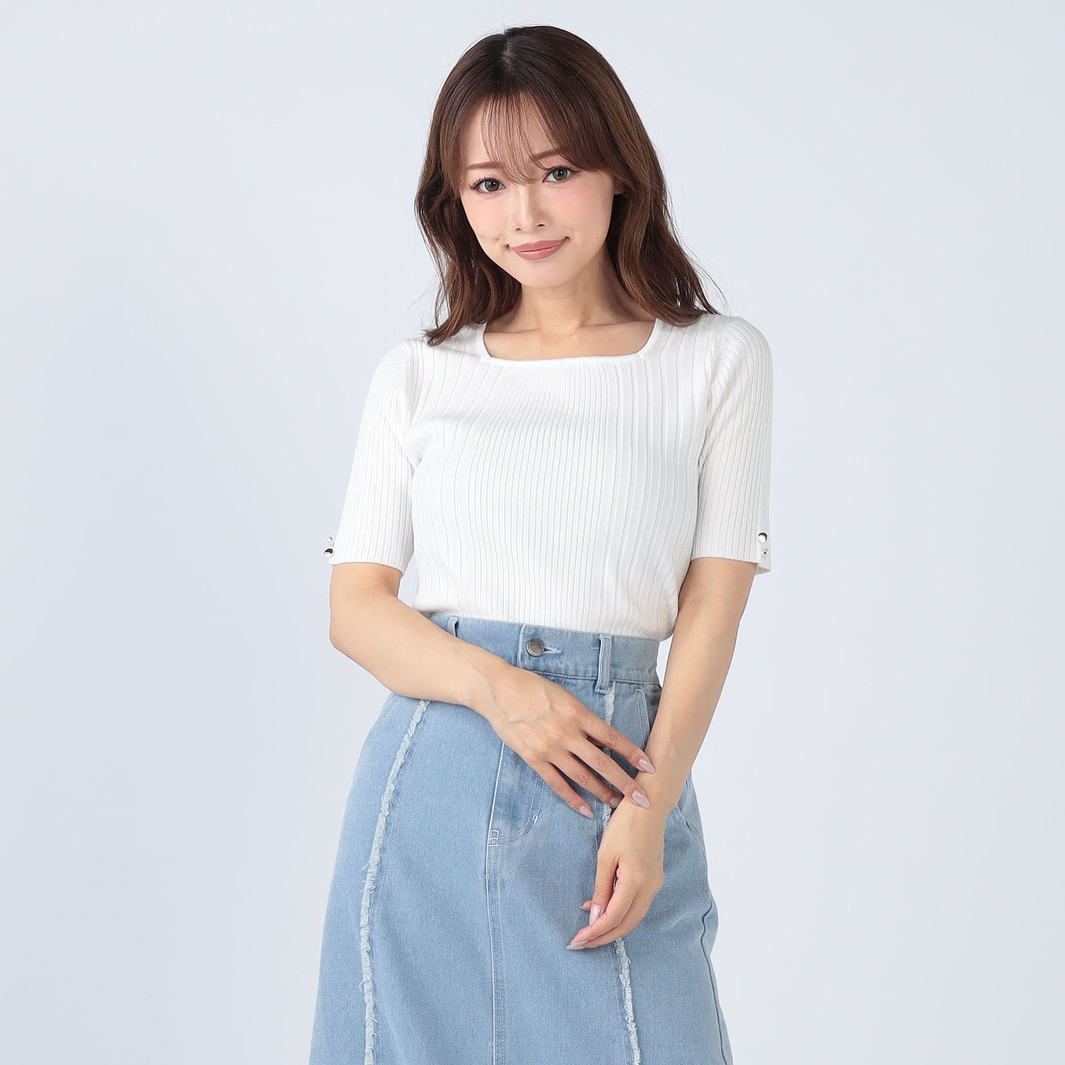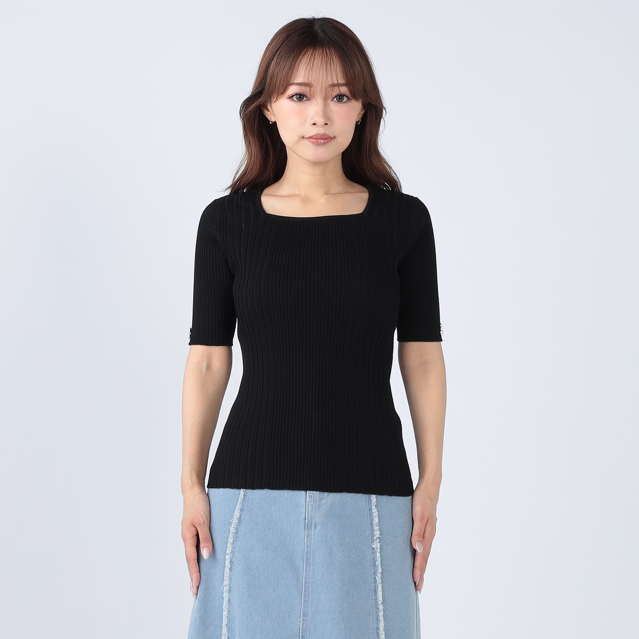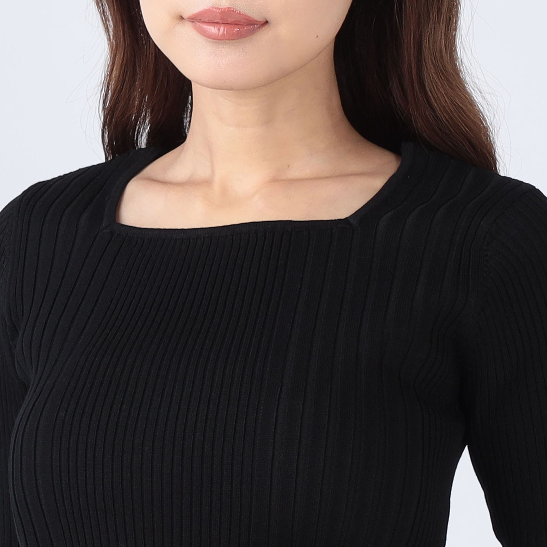 接触冷感xウォッシャブル スクエアネックランダムリブプルオーバー