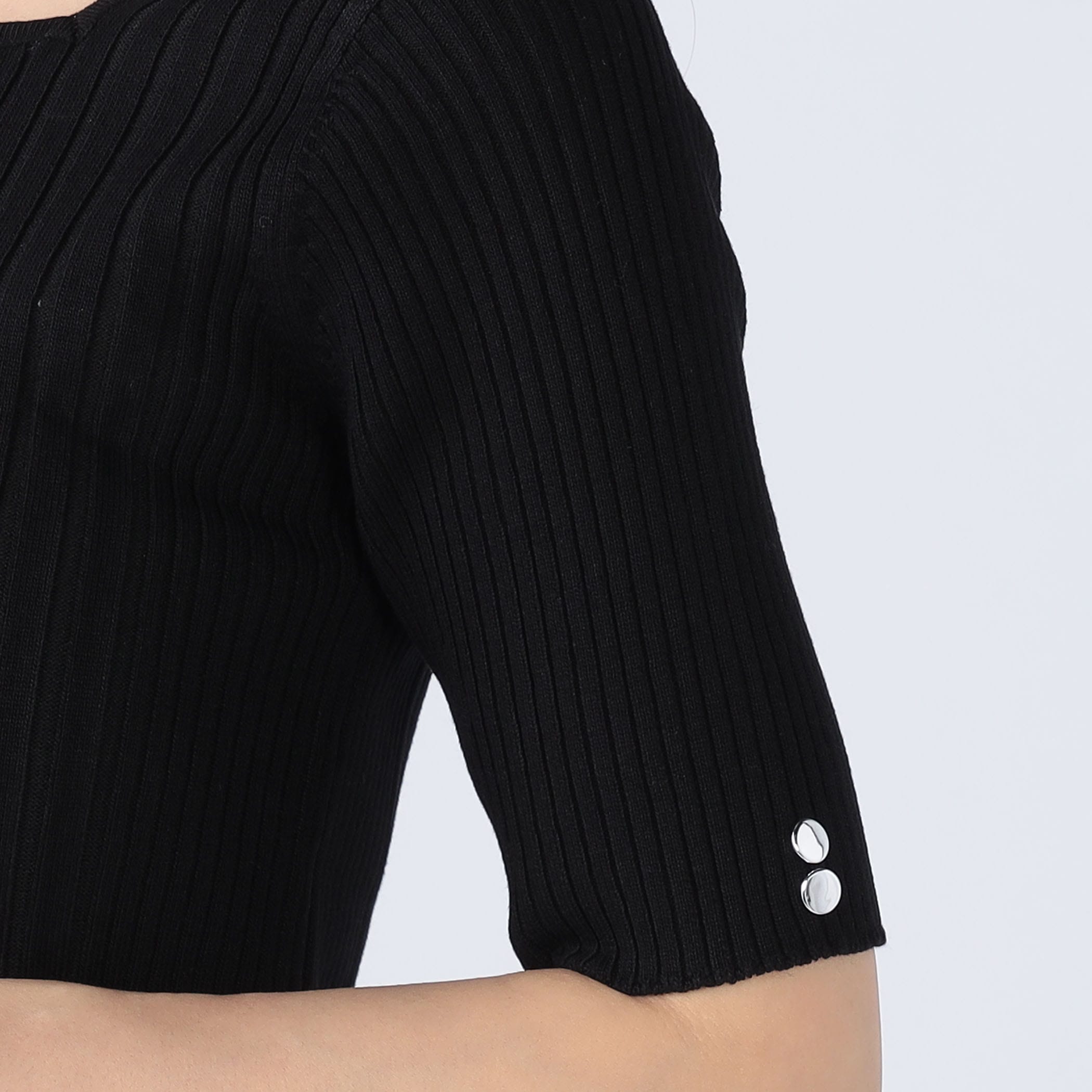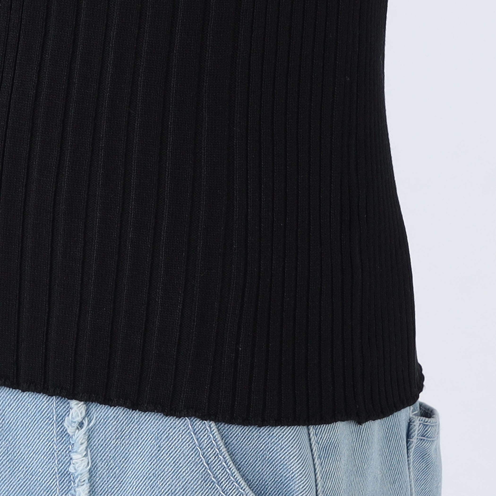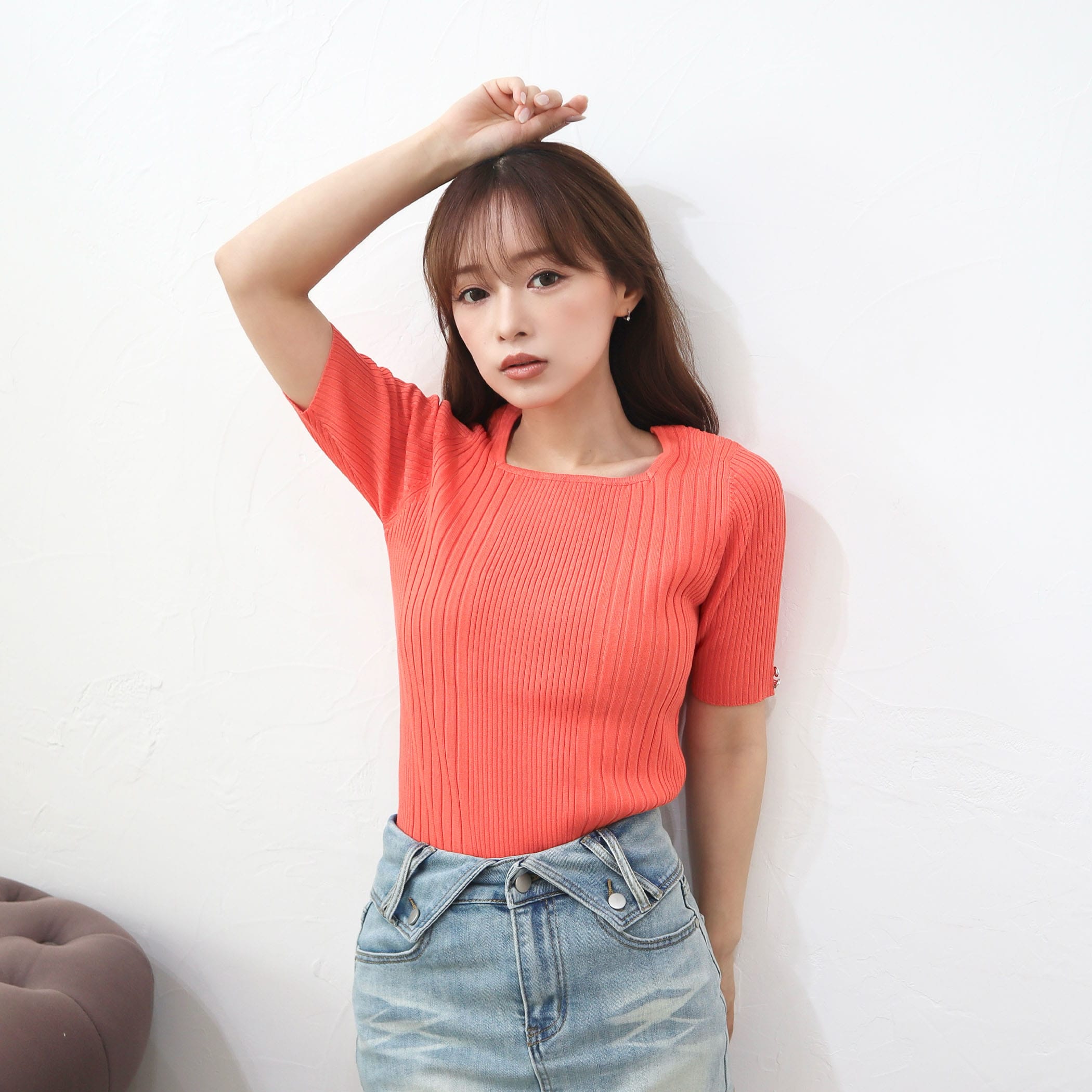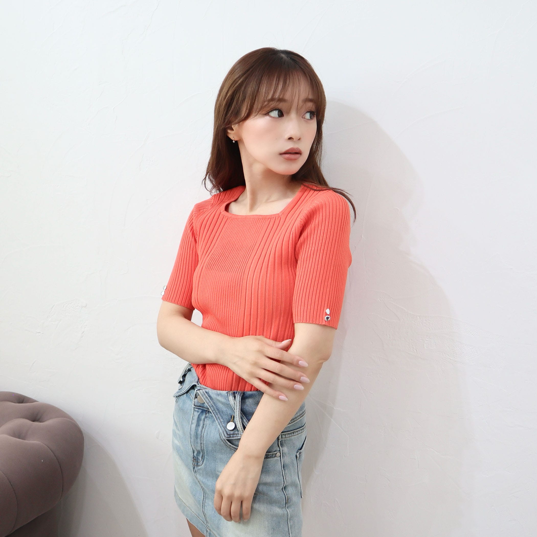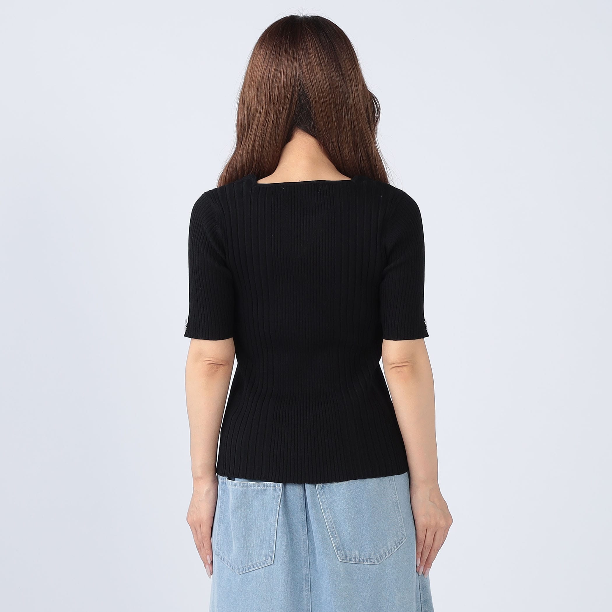 接触冷感xウォッシャブル スクエアネックランダムリブプルオーバー