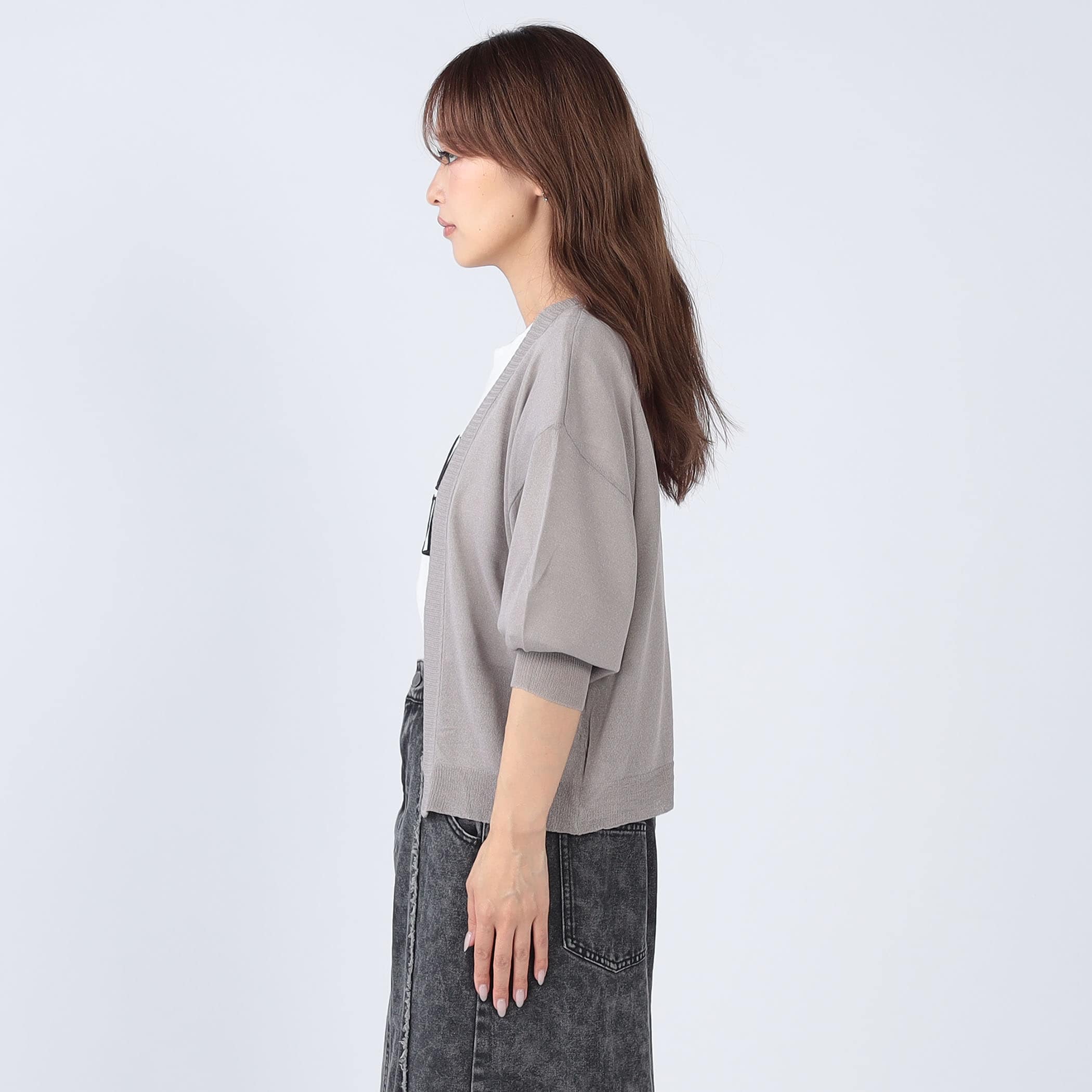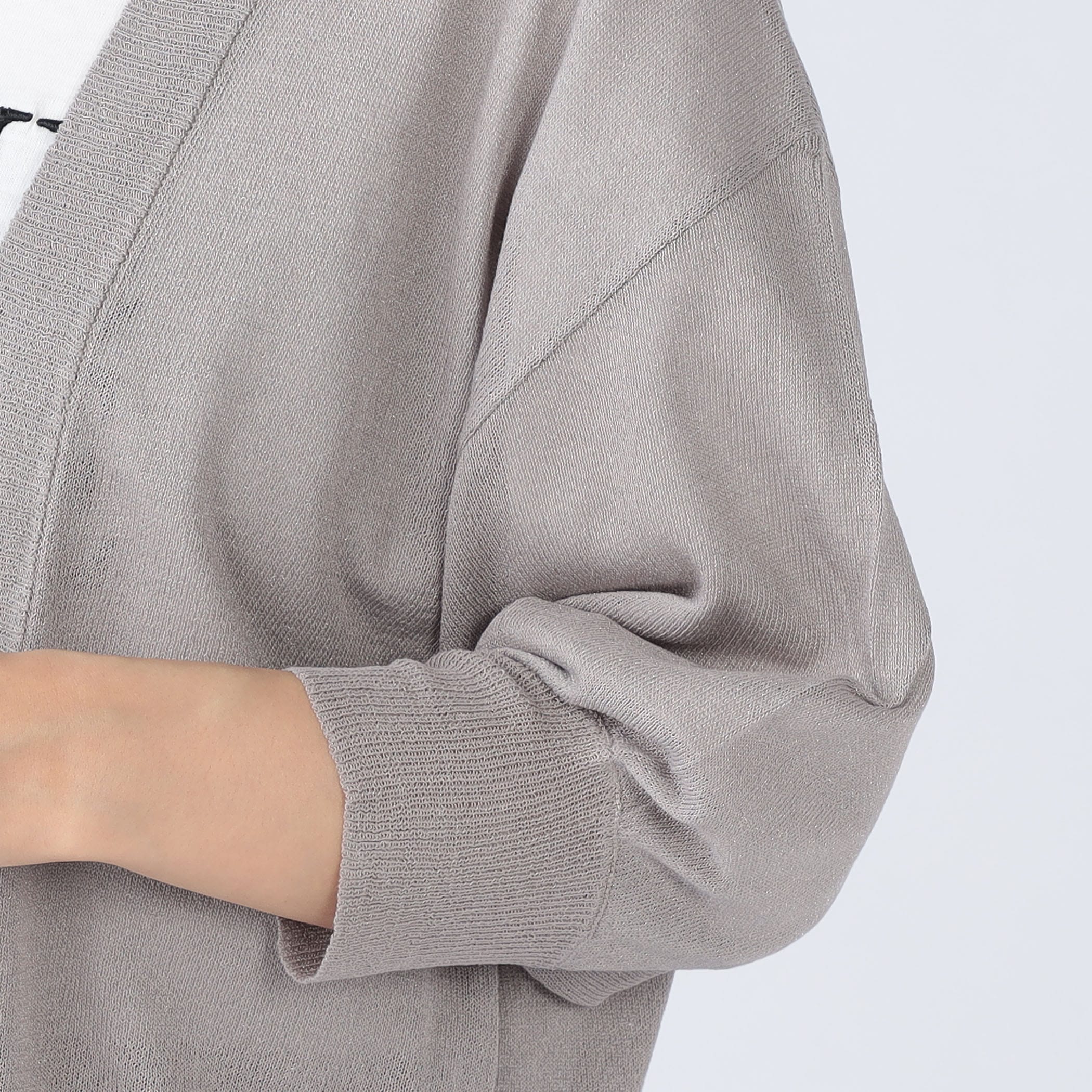 夏に嬉しい機能付きのカーディガン。羽織るだけでフロントの縦のシルエットが綺麗に出てすっきりとした印象に。冷房対策にぴったりで、鞄の中に入れて持ち運びにも便利な1枚です。これからの季節にUV、接触冷感とウォッシャブル素材も嬉しいポイント◎ショート丈なのでフレアスカートやワイドパンツなど、ボリューム感のあるボトムとバランス良く着用していただけます。ワンピースの上からさらっと羽織ったスタイルもオススメです。