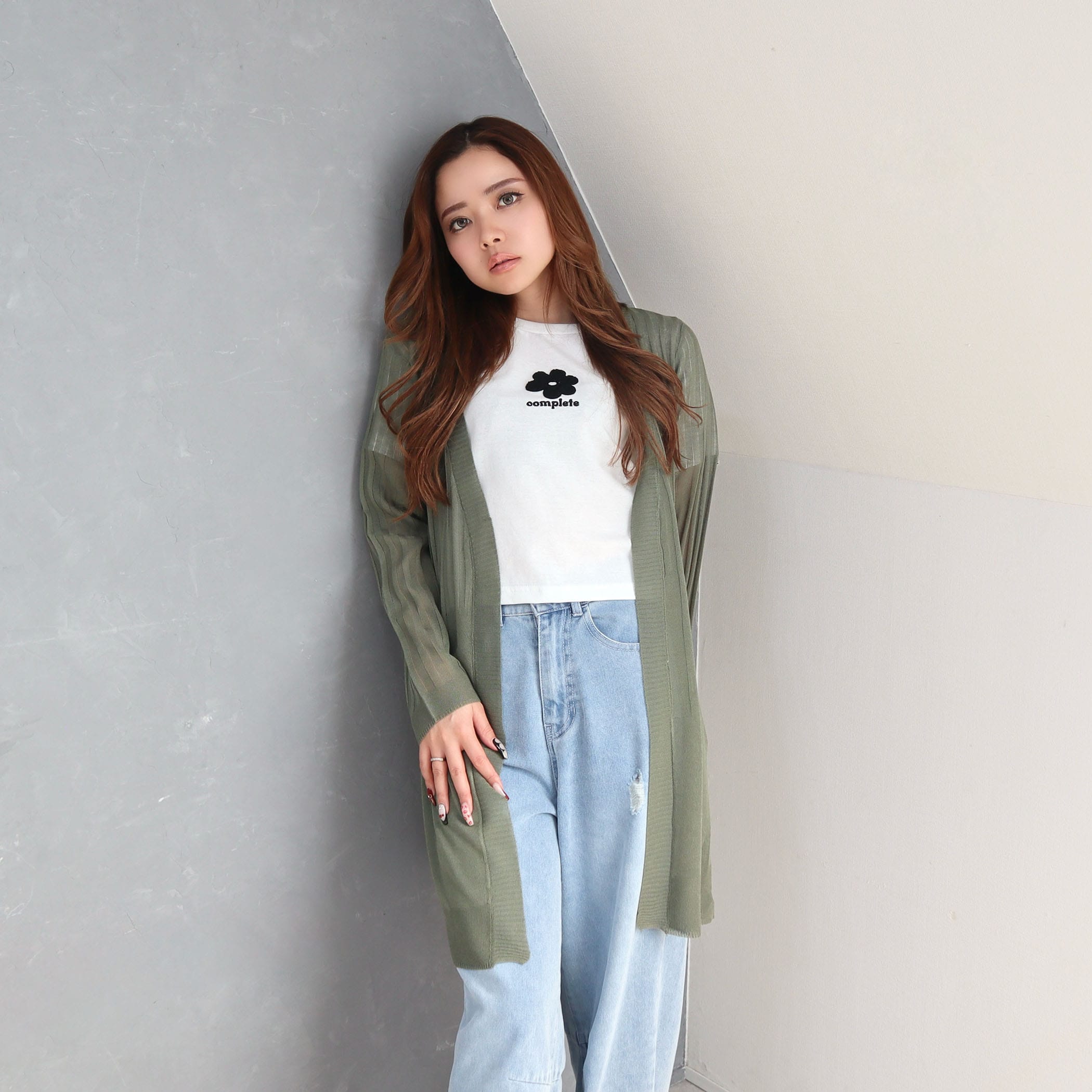 夏に嬉しい機能付きのカーディガン。羽織るだけでフロントの縦のシルエットが綺麗に出てすっきりとした印象に。冷房対策にぴったりな1枚です。これからの季節にUV、接触冷感とウォッシャブル素材も嬉しいポイント◎ロング丈なので細身のボトムとバランスよく着用していただけます。インナーにカットソー、足元はスニーカーでカジュアルなスタイルはもちろん、キレイめな表情のニットなのでブラウスや足元にパンプスなど、ヒールのある靴と合わせてキレイめなスタイルでもサマになります。