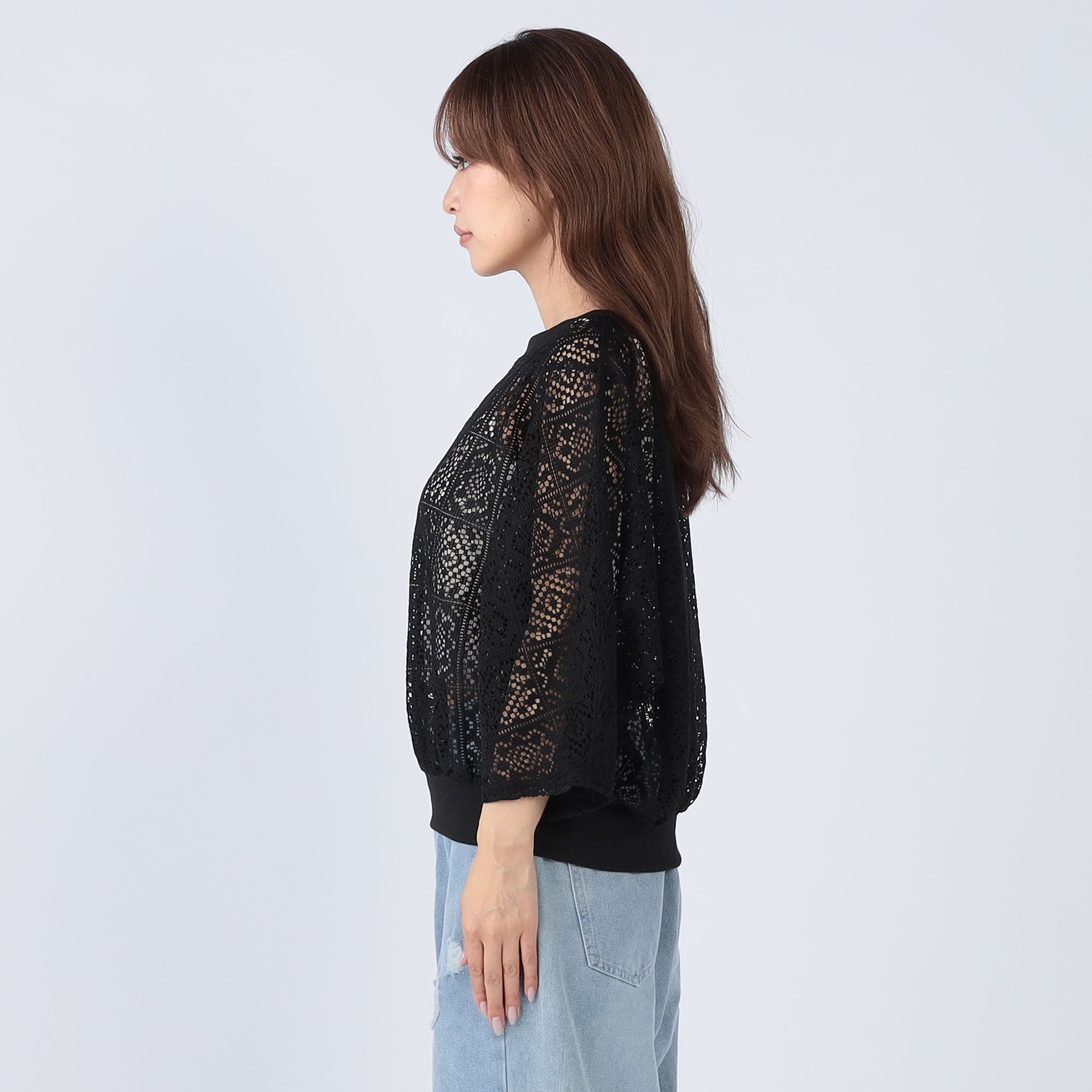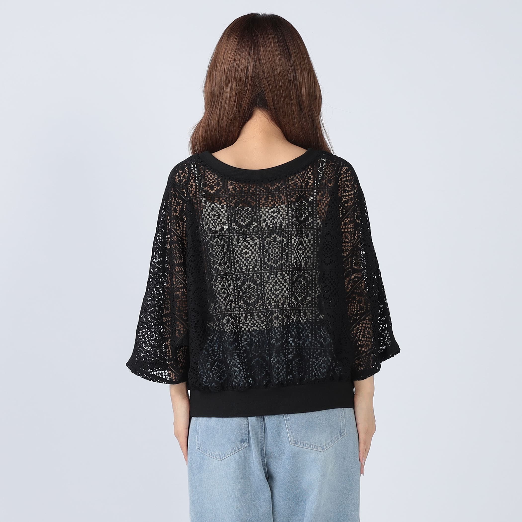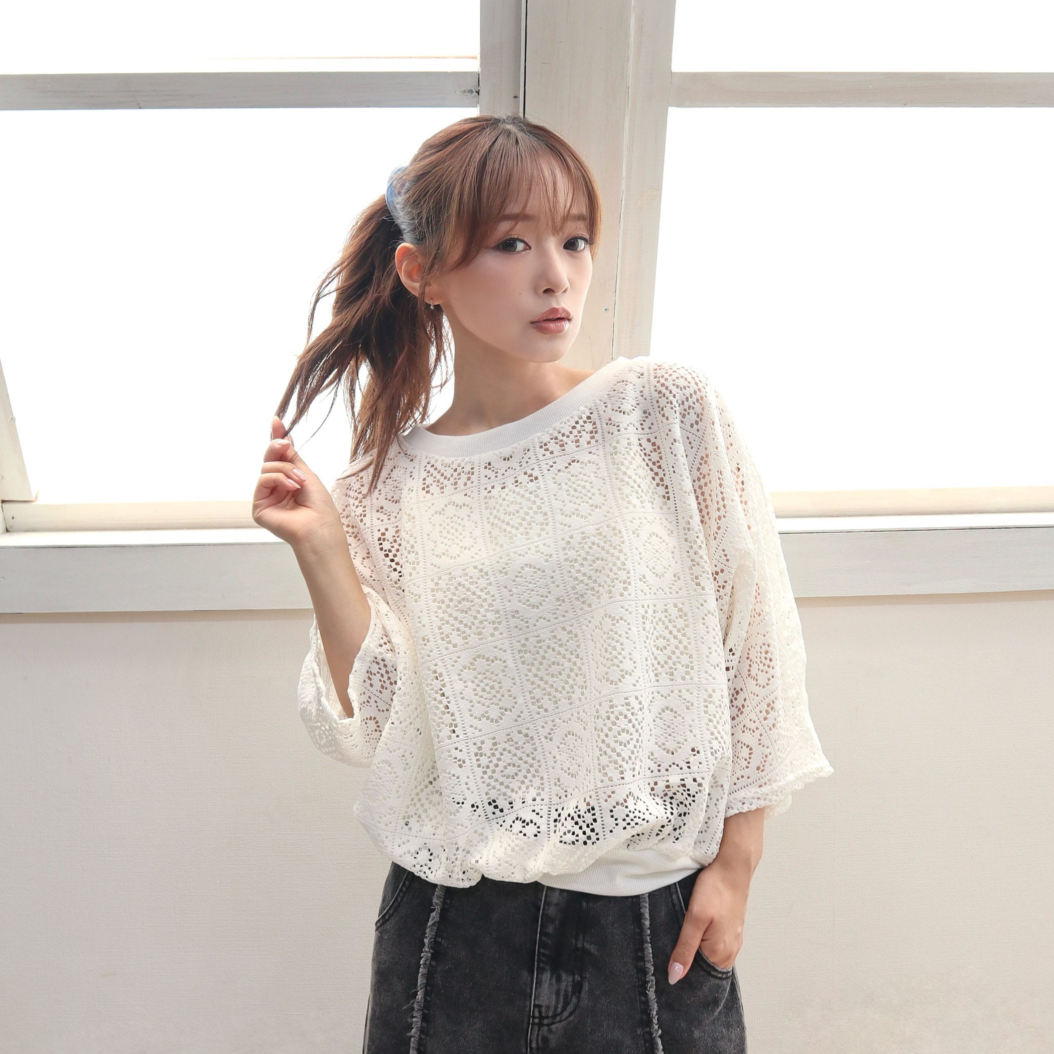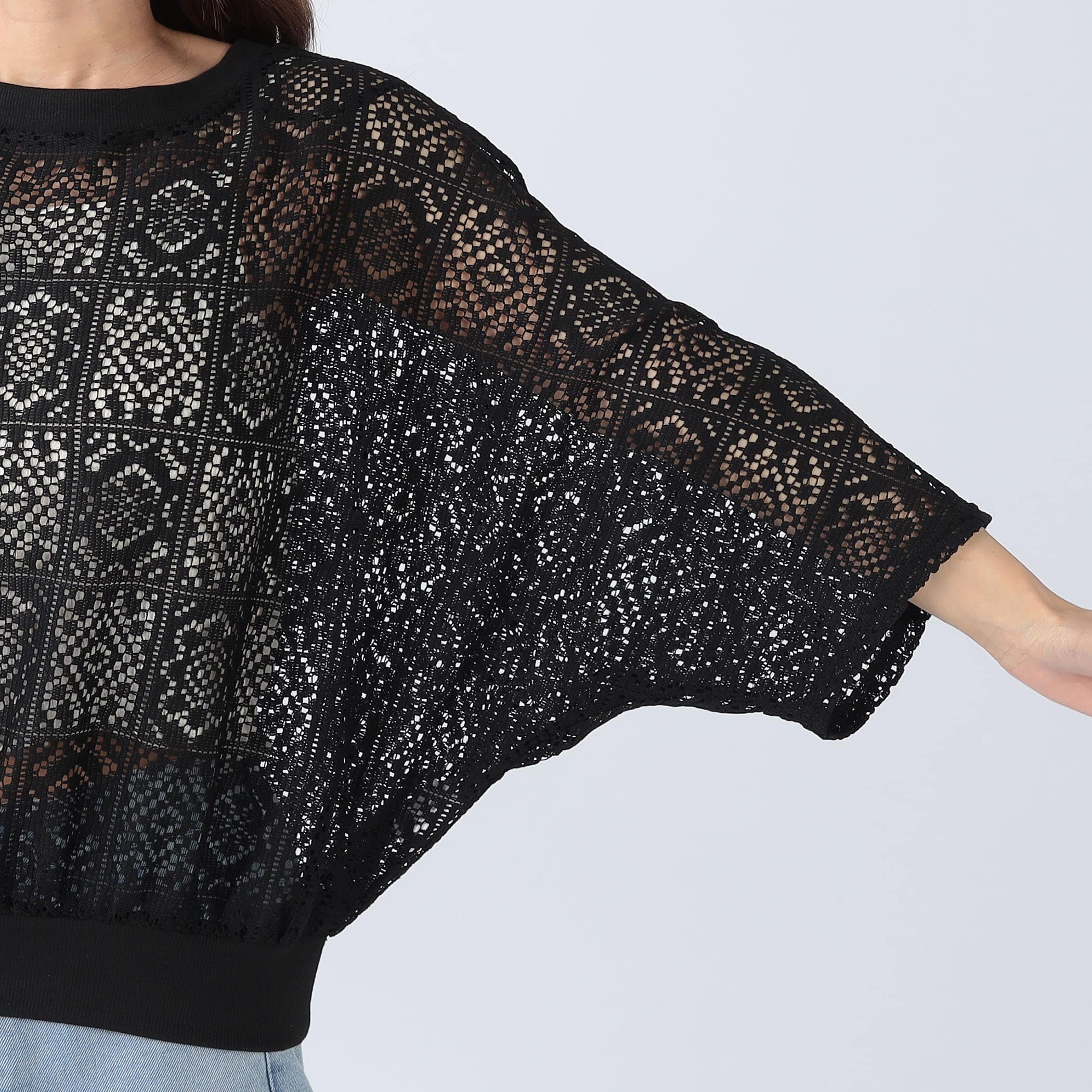 今期トレンドのパネルレースが可愛い半袖ドルマントップス。動きやすく体型カバーも叶うドルマンスリーブが嬉しいポイント。ネック&裾のリブ切替でメリハリのあるデザインに。デニムにもスカートにも合わせやすい、万能トップスです。