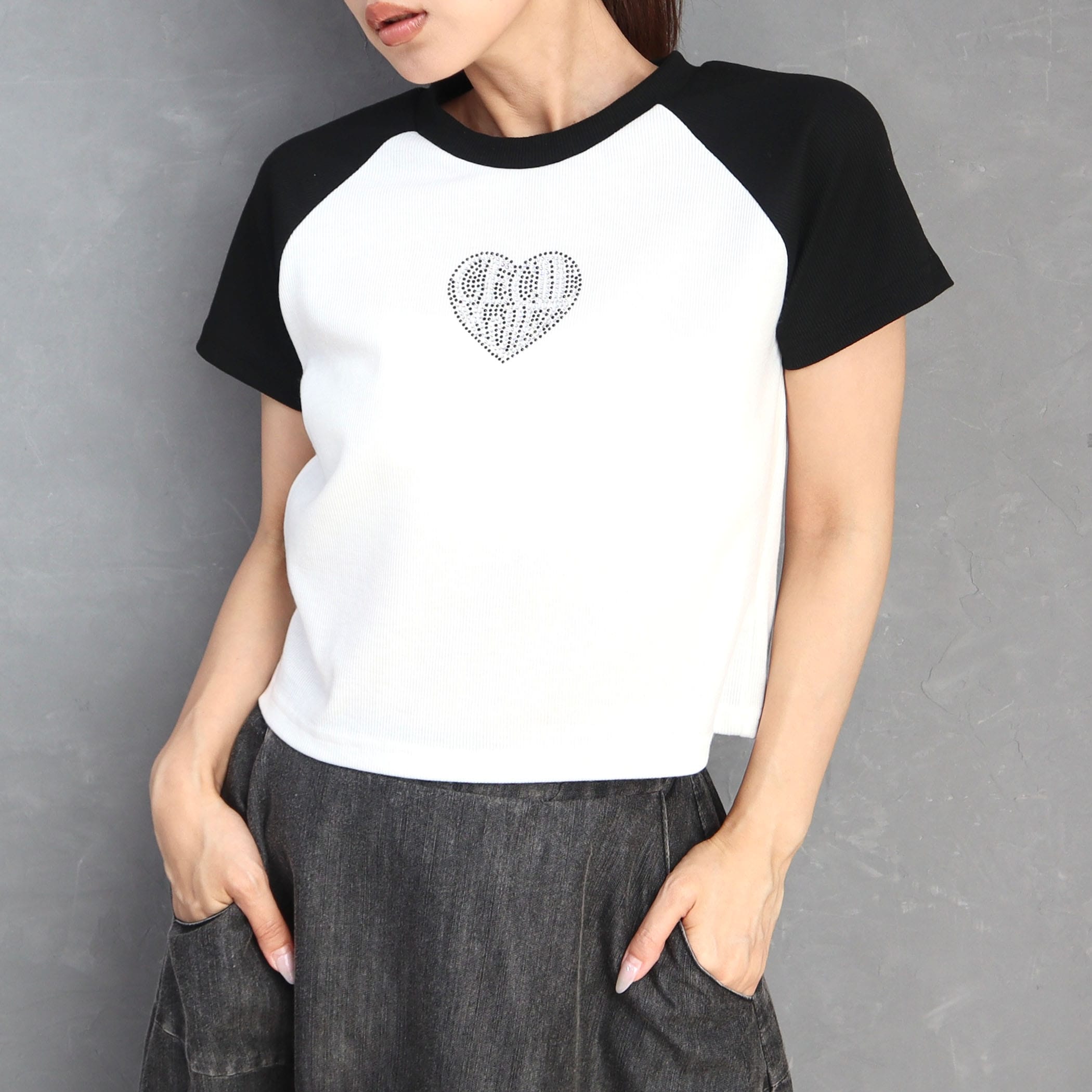 ラインストーンロゴ ラグランコンパクトトップス
