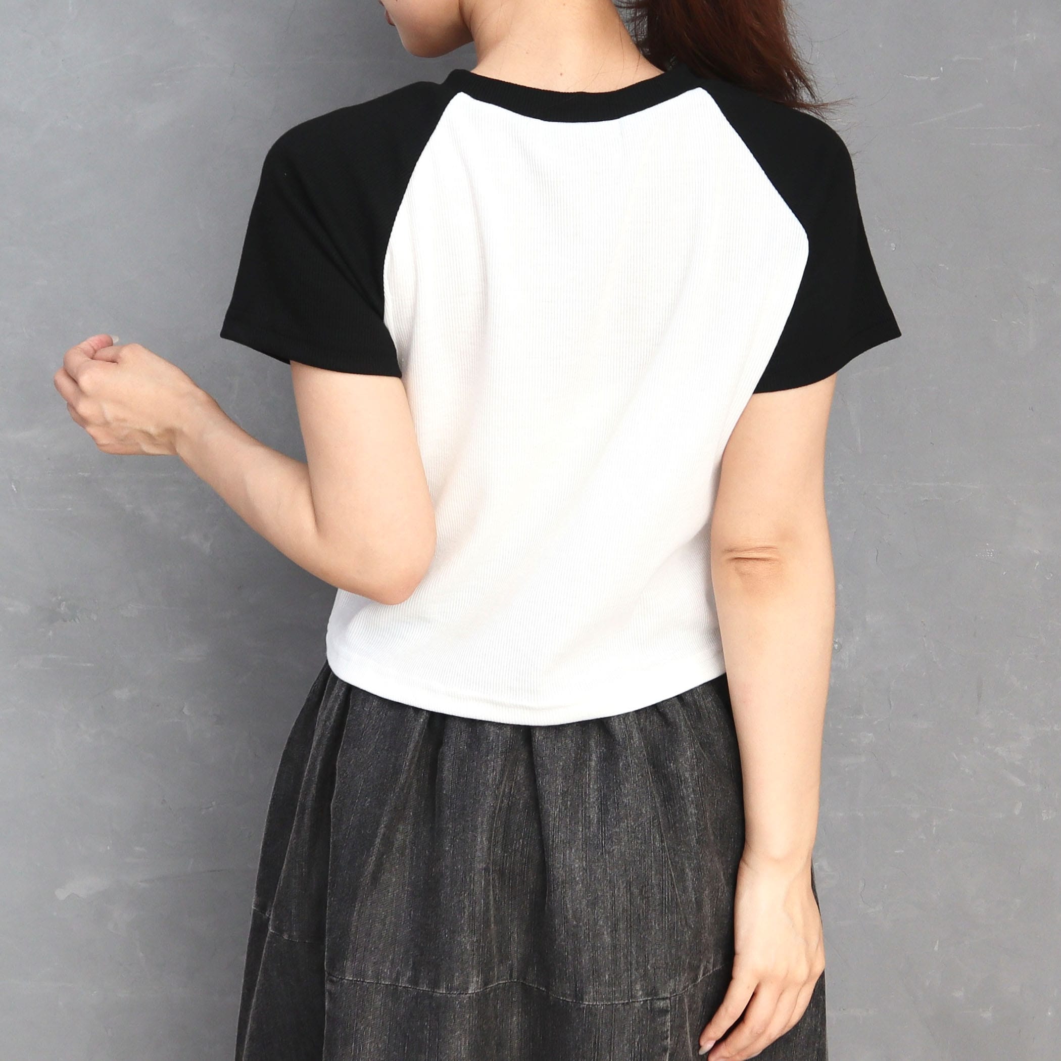配色ラグランTが今またアツい!ショーパン合わせでヘルシーに、ロンスカ合わせでY2Kっぽくもキマる?コンパクトめな丈感でインもアウトもバランスよく着られる1枚!