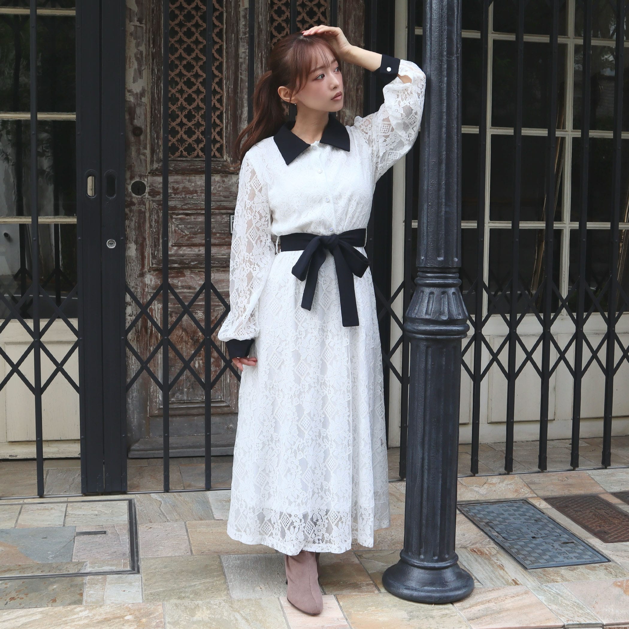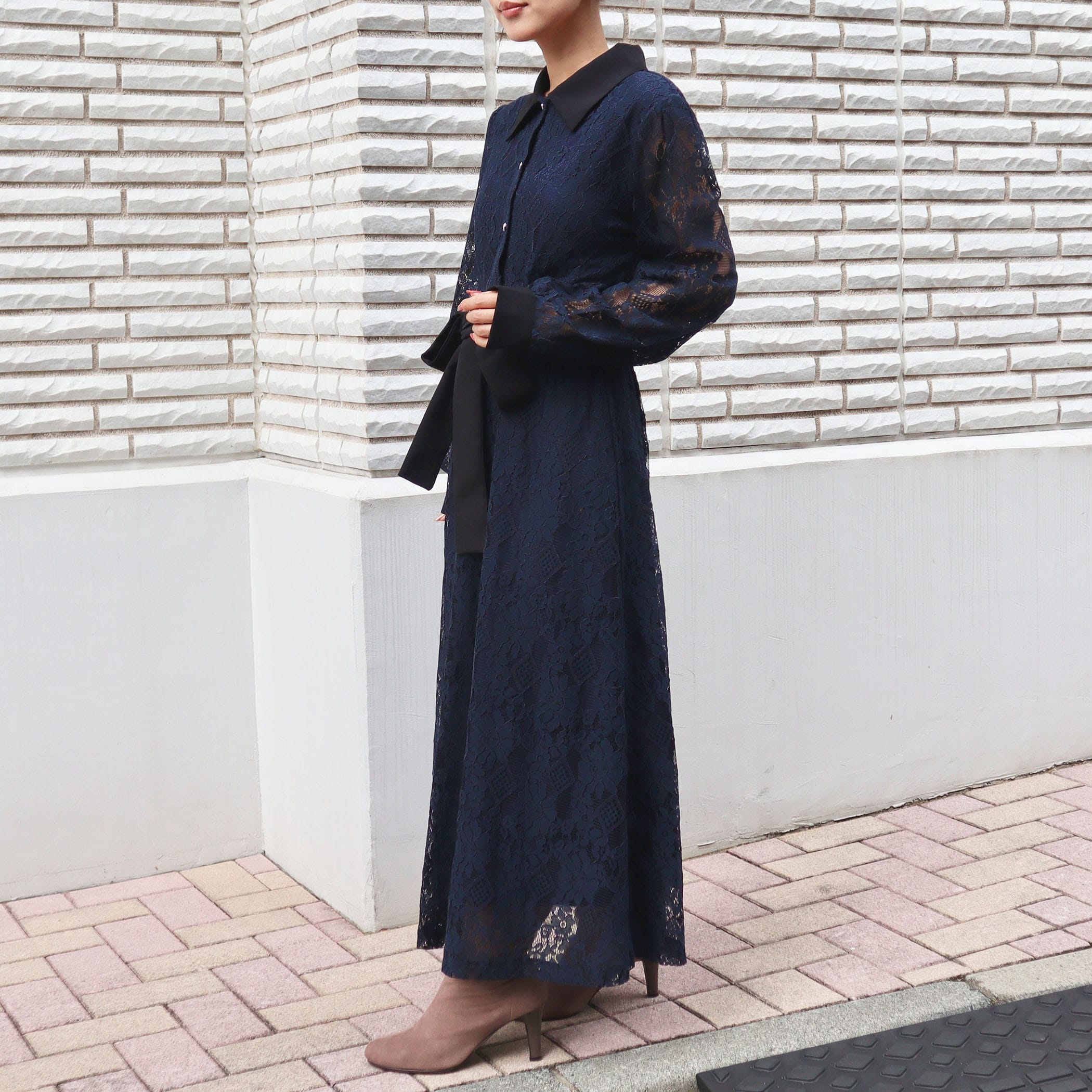 レース配色クレリックワンピース